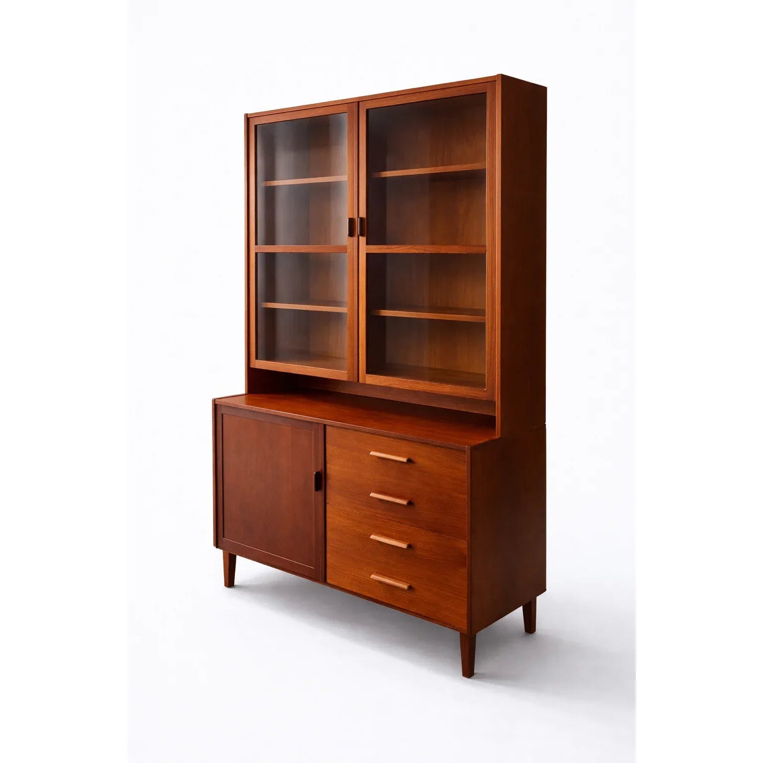 A beautifully balanced example of classic Australian mid-century design by Parker Furniture, this teak sideboard with matching display hutch offers both refined storage and elegant display.