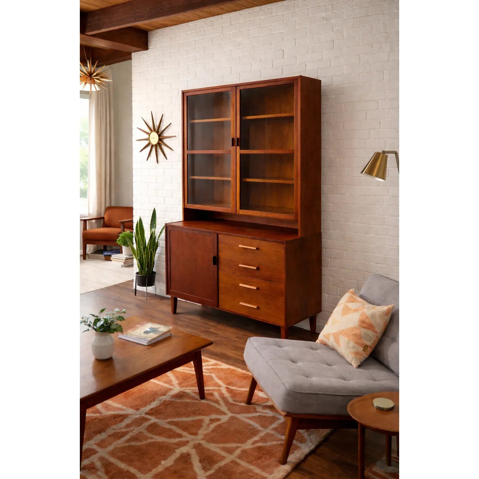 The removable upper hutch features glazed doors and adjustable shelving, ideal for displaying ceramics, glassware, books, or collectibles. Importantly, the hutch lifts away easily, allowing the base to be used independently as a sideboard or buffet, giving the piece flexibility to suit different interiors.