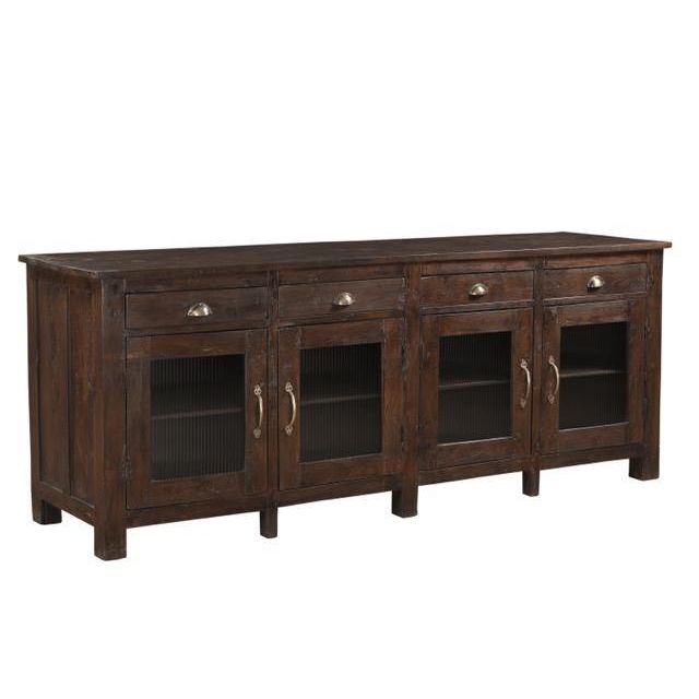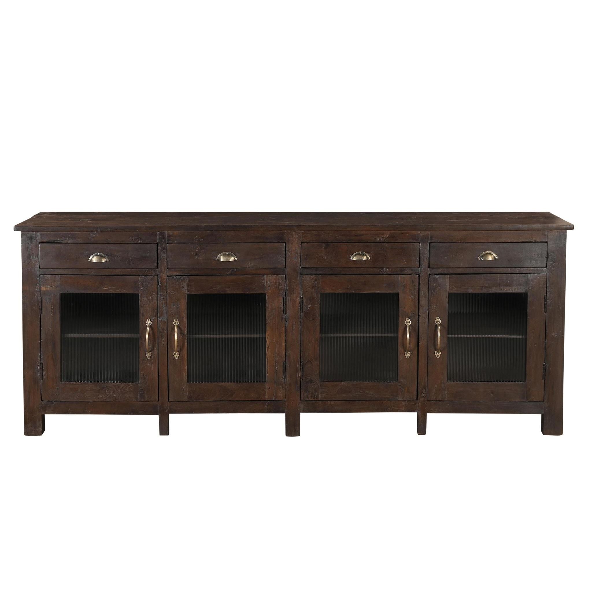 Fabulous dark stain teak sideboard, brass fittings, fluted glass doors.