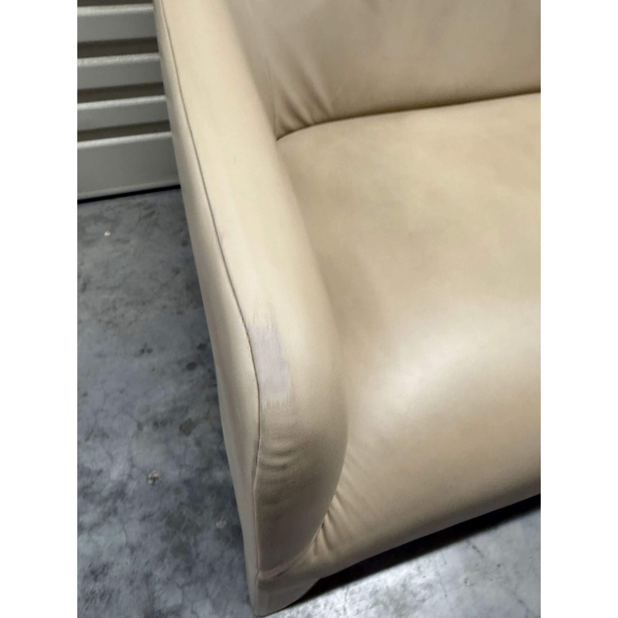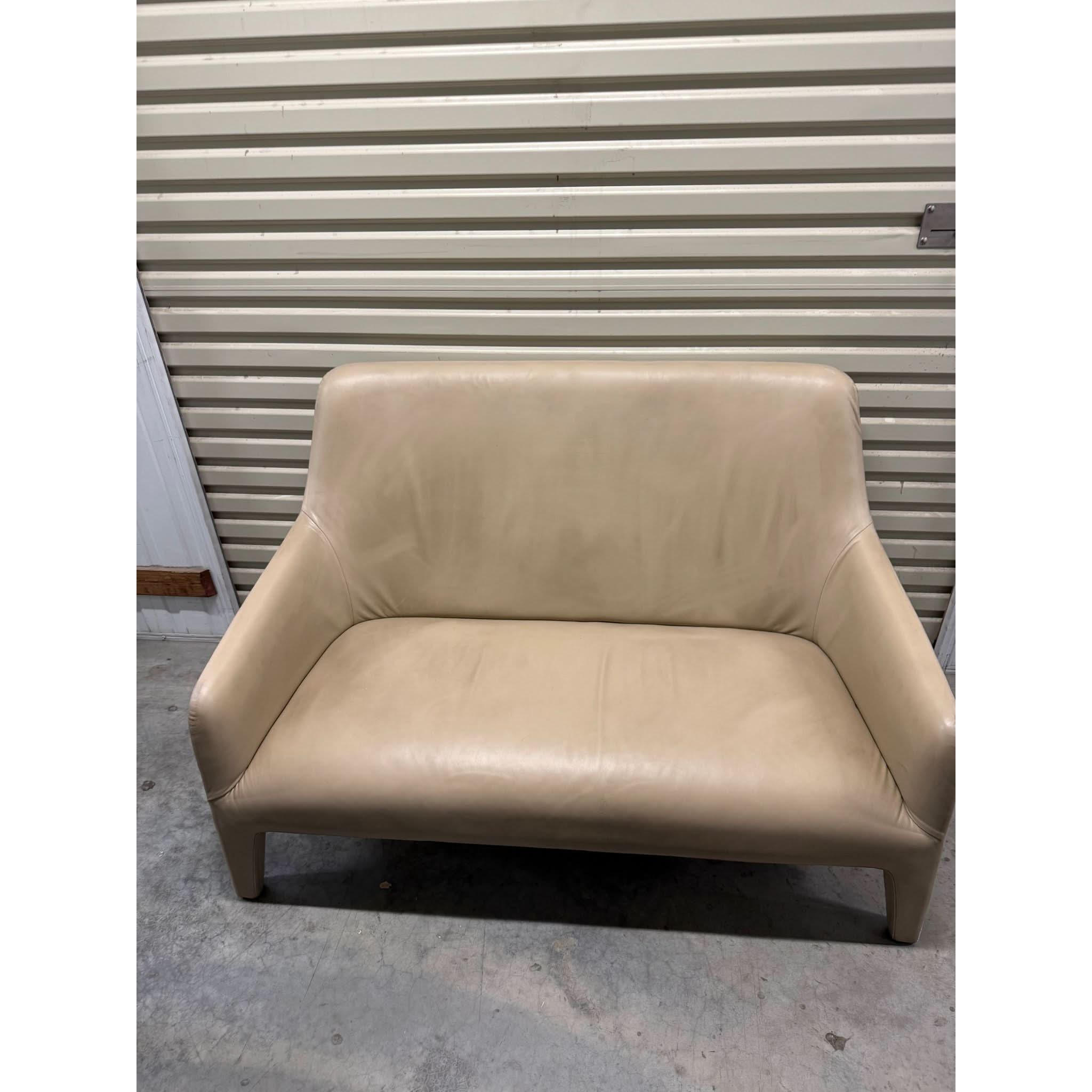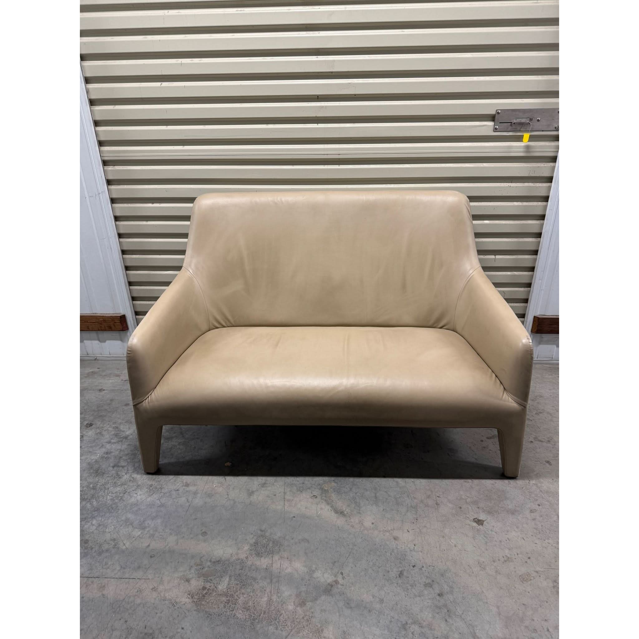 Its gently curved arms and seamless upholstery create a modern, sculptural look, while the high-quality leather ensures both durability and a luxurious feel. Perfect for compact living areas, reception spaces, or as a stylish statement piece in your home or office.