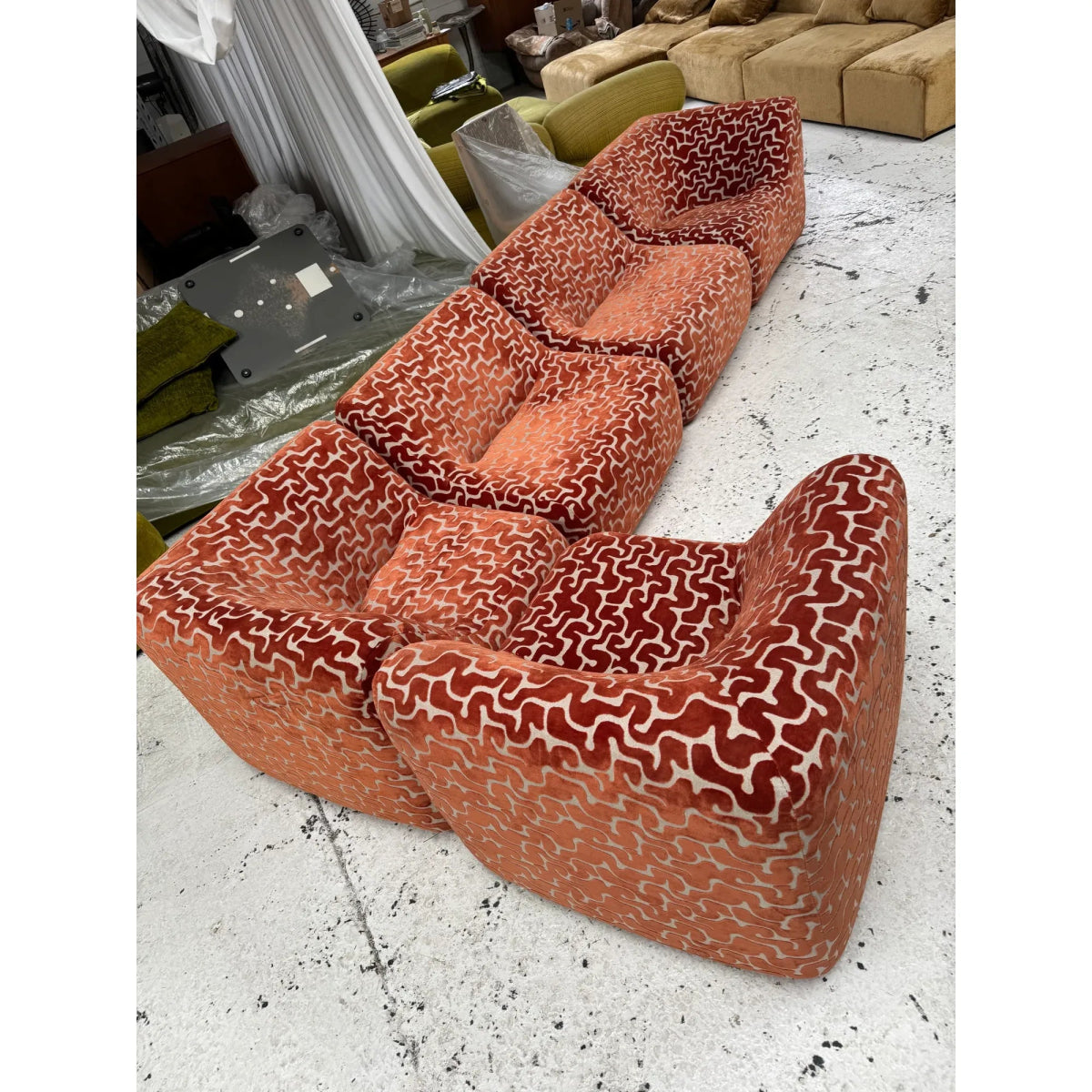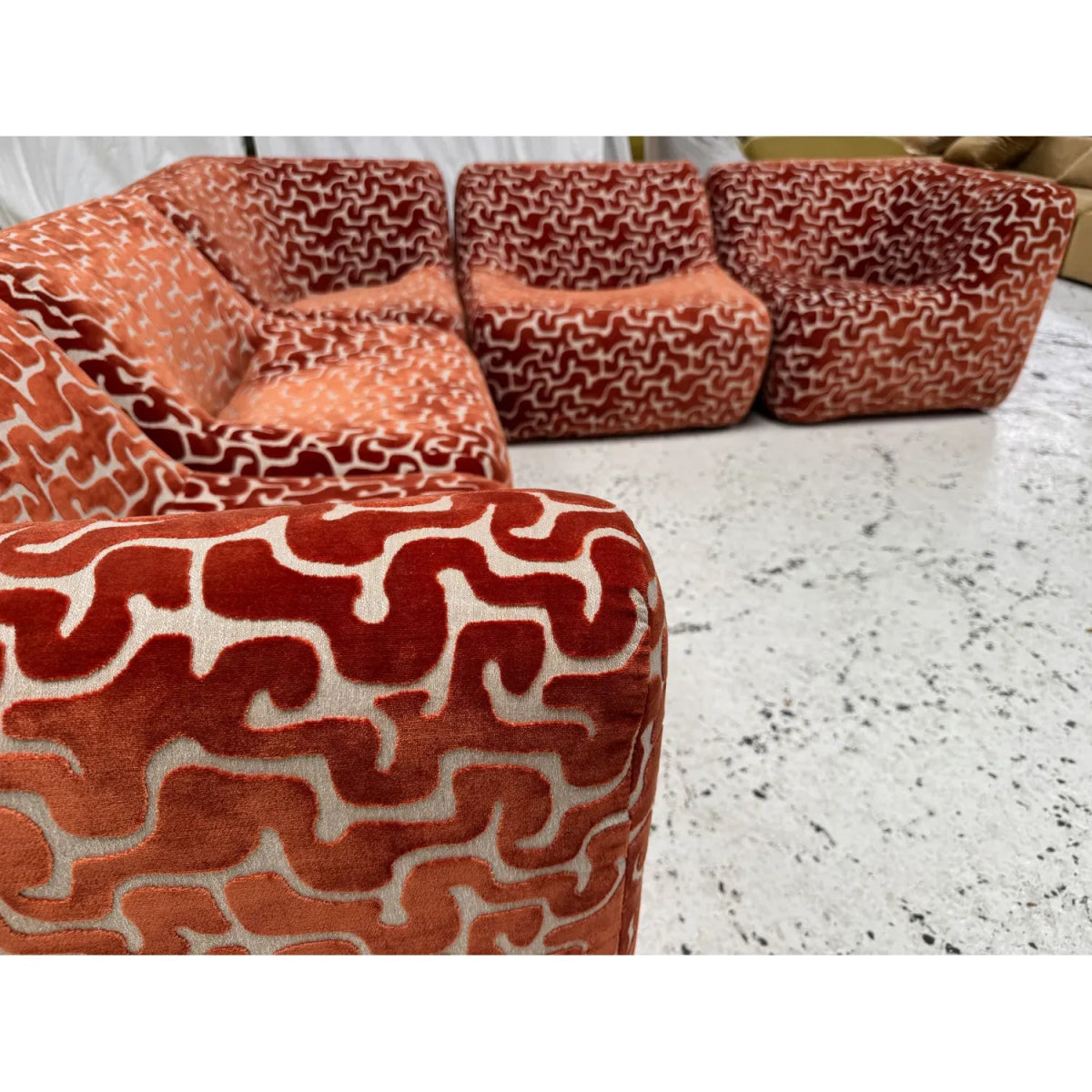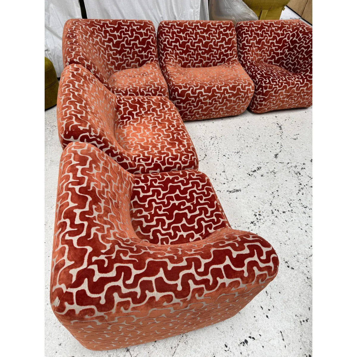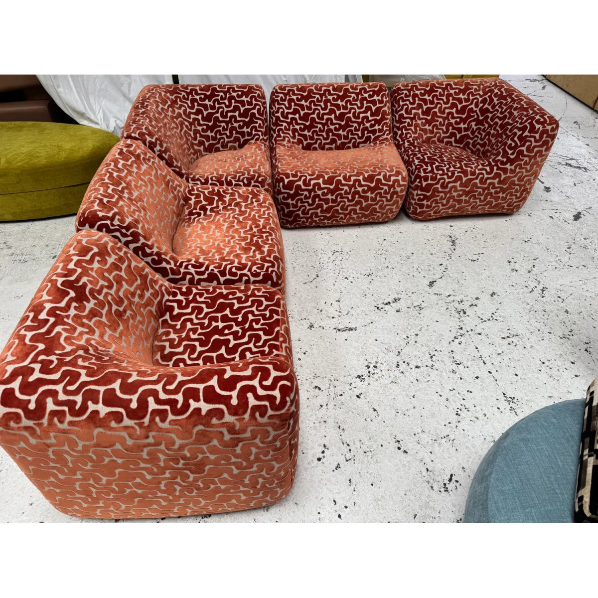 Some additional pieces may still be available to reupholster upon request (corners, singles, an ottoman, and IV low and high back chairs)