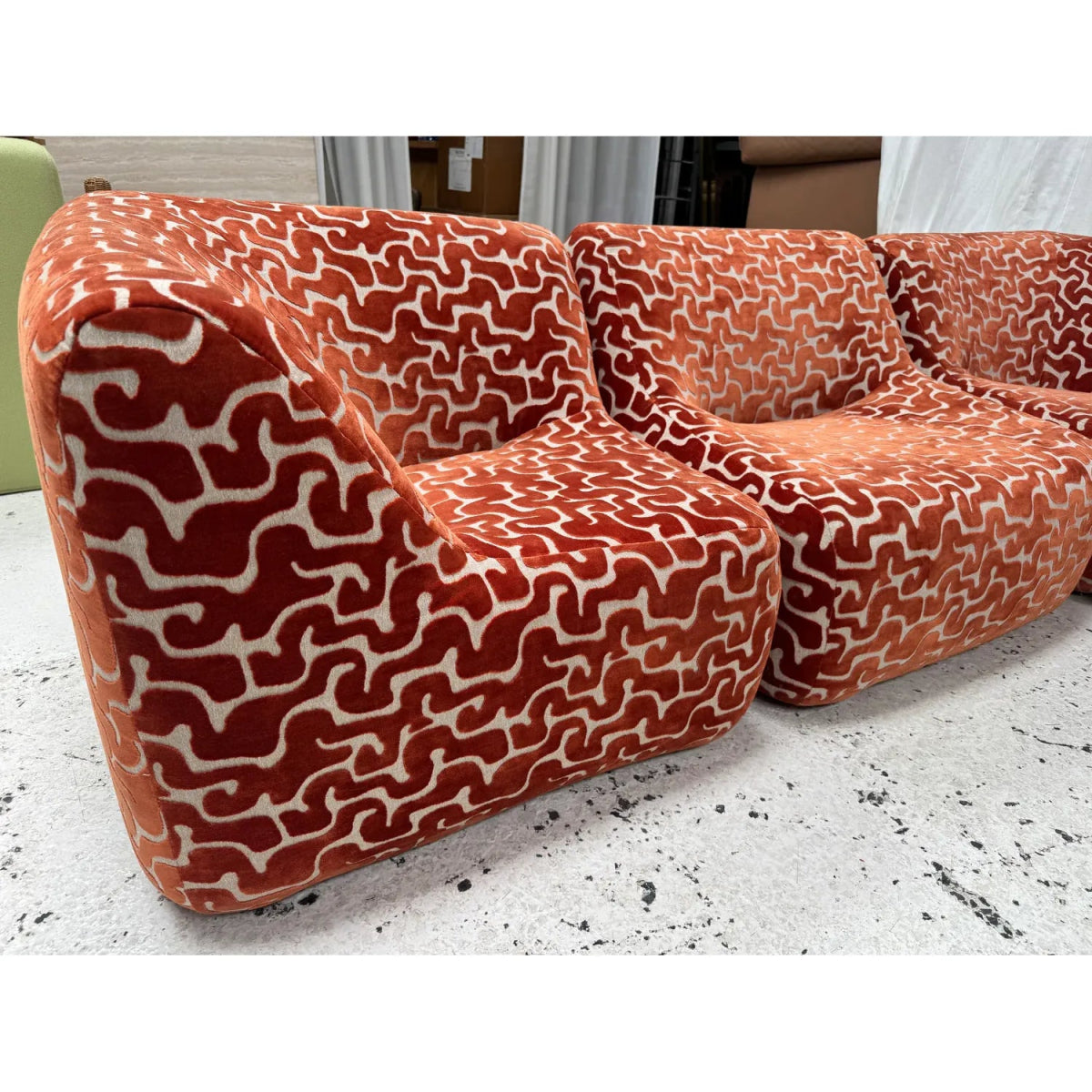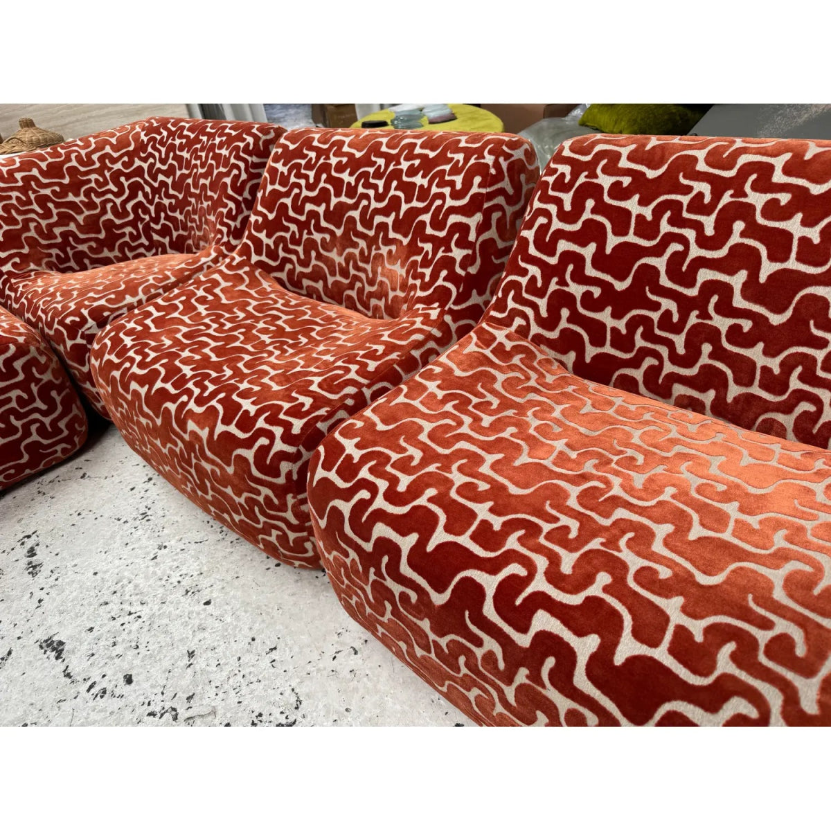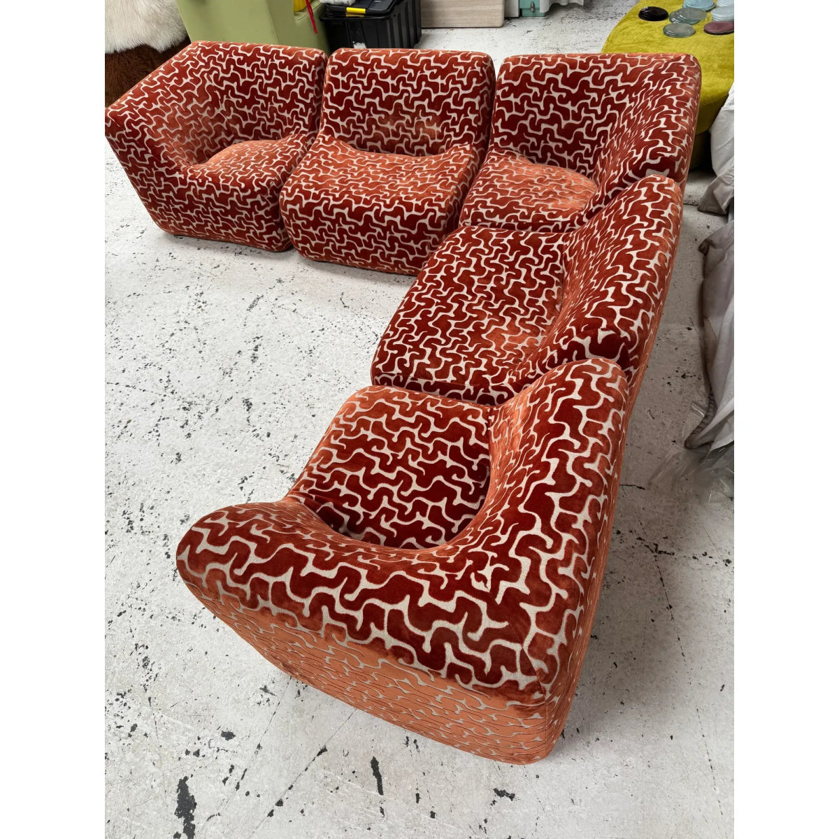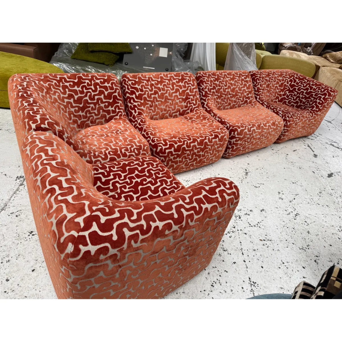 Some additional pieces may still be available to reupholster upon request (corners, singles, an ottoman, and IV low and high back chairs)
