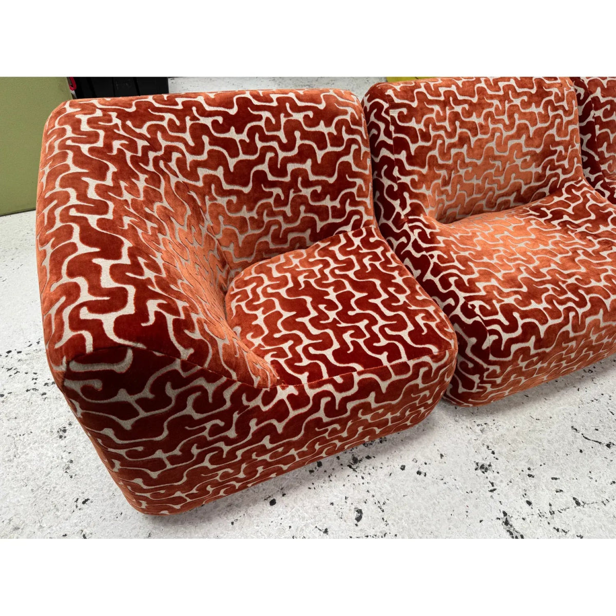 Highly collectable sculptural vintage Featherston Numero Modular Sofa Set, available as a preorder item to be freshly custom reupholstered - in whatever fabric you like, example here is shown in a gorgeous mossy chatruese velvet.