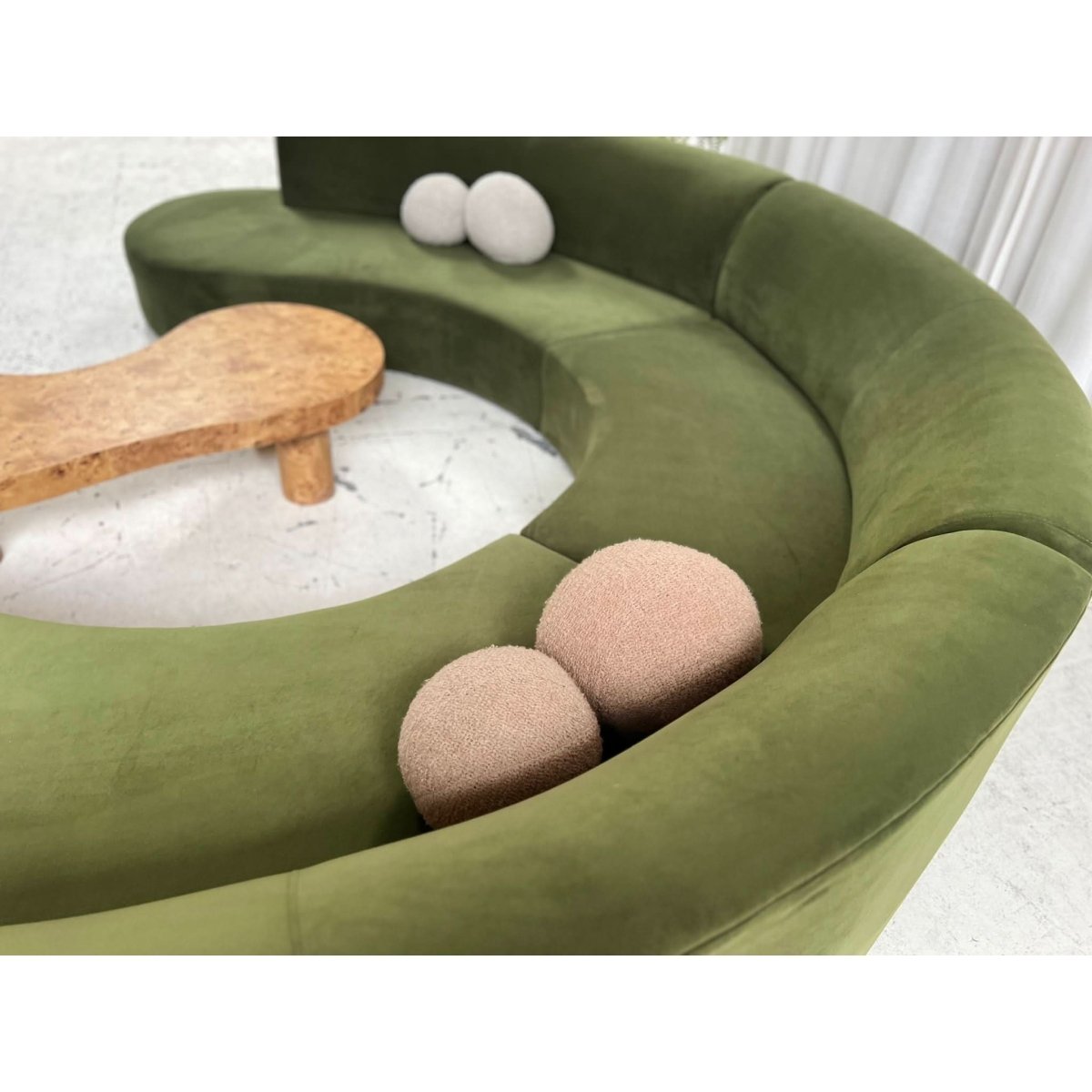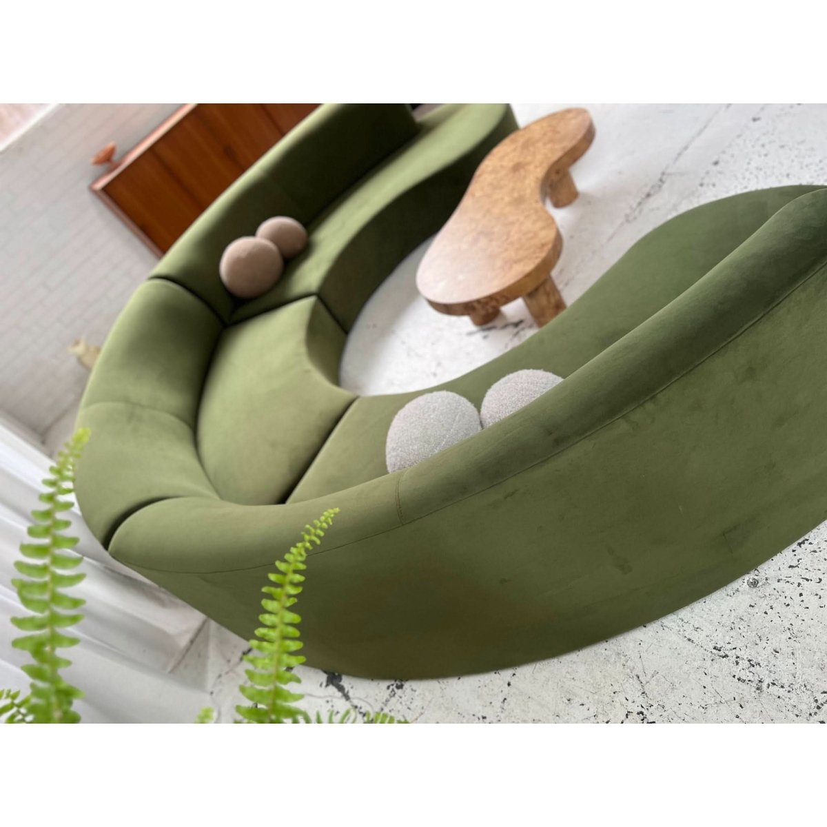This wonderful sofa will be freshly restored and reupholstered, pictured here in a beautifully soft green fabric by Warwick. Can be reupholstered in your chosen fabric.