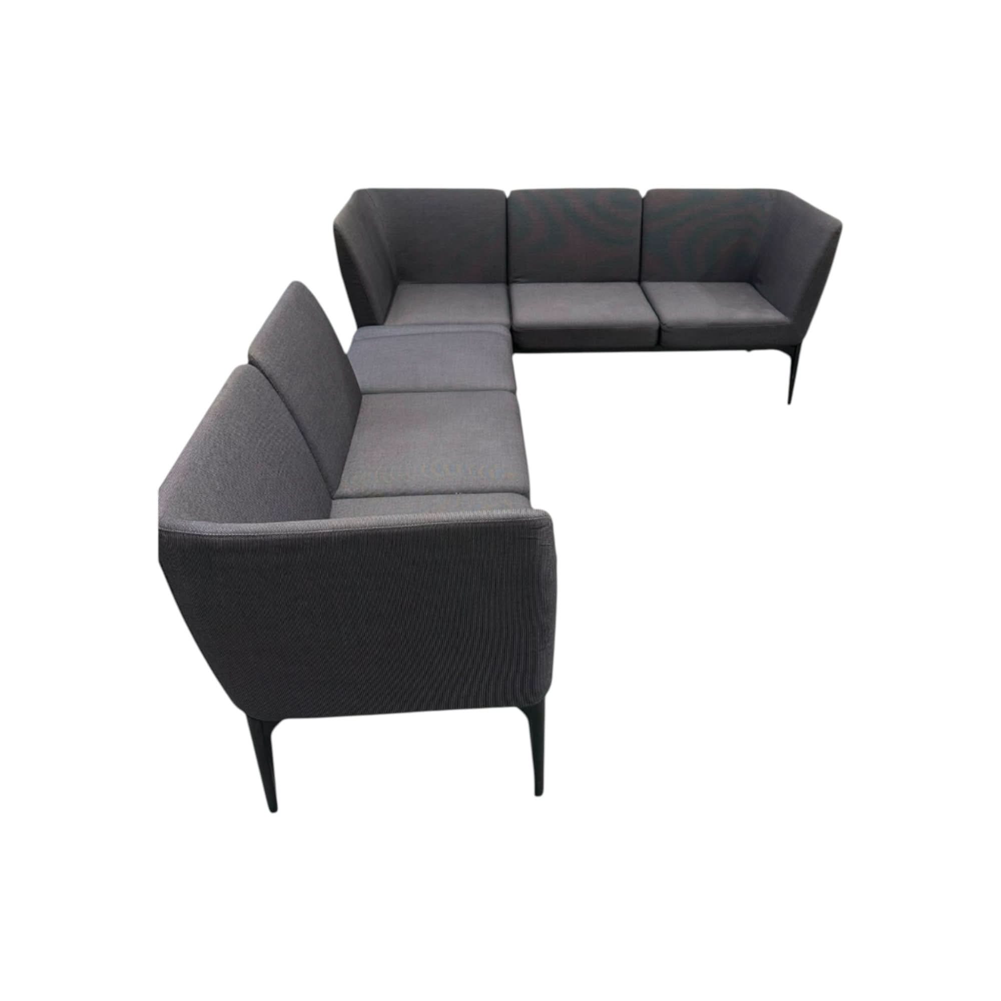 Being a truly modular system, this L-shaped configuration offers excellent flexibility, allowing you to adapt it to your space and needs. It's ideal for creating a cozy corner in a residential living room, a stylish seating arrangement in a contemporary office, or an inviting and adaptable space in a commercial lounge area.