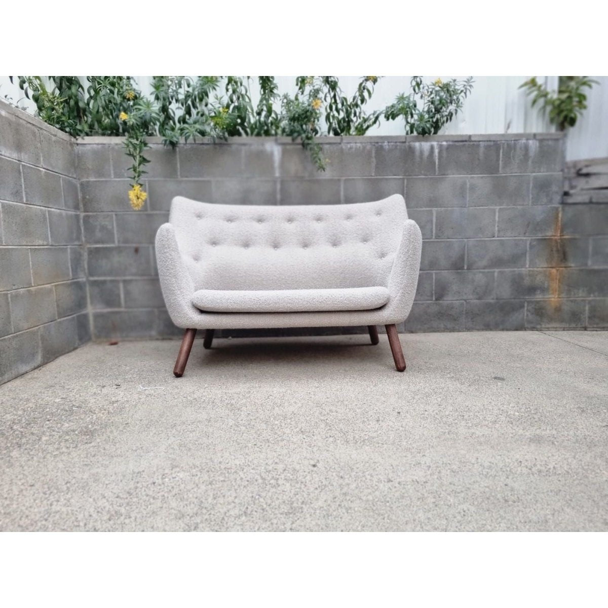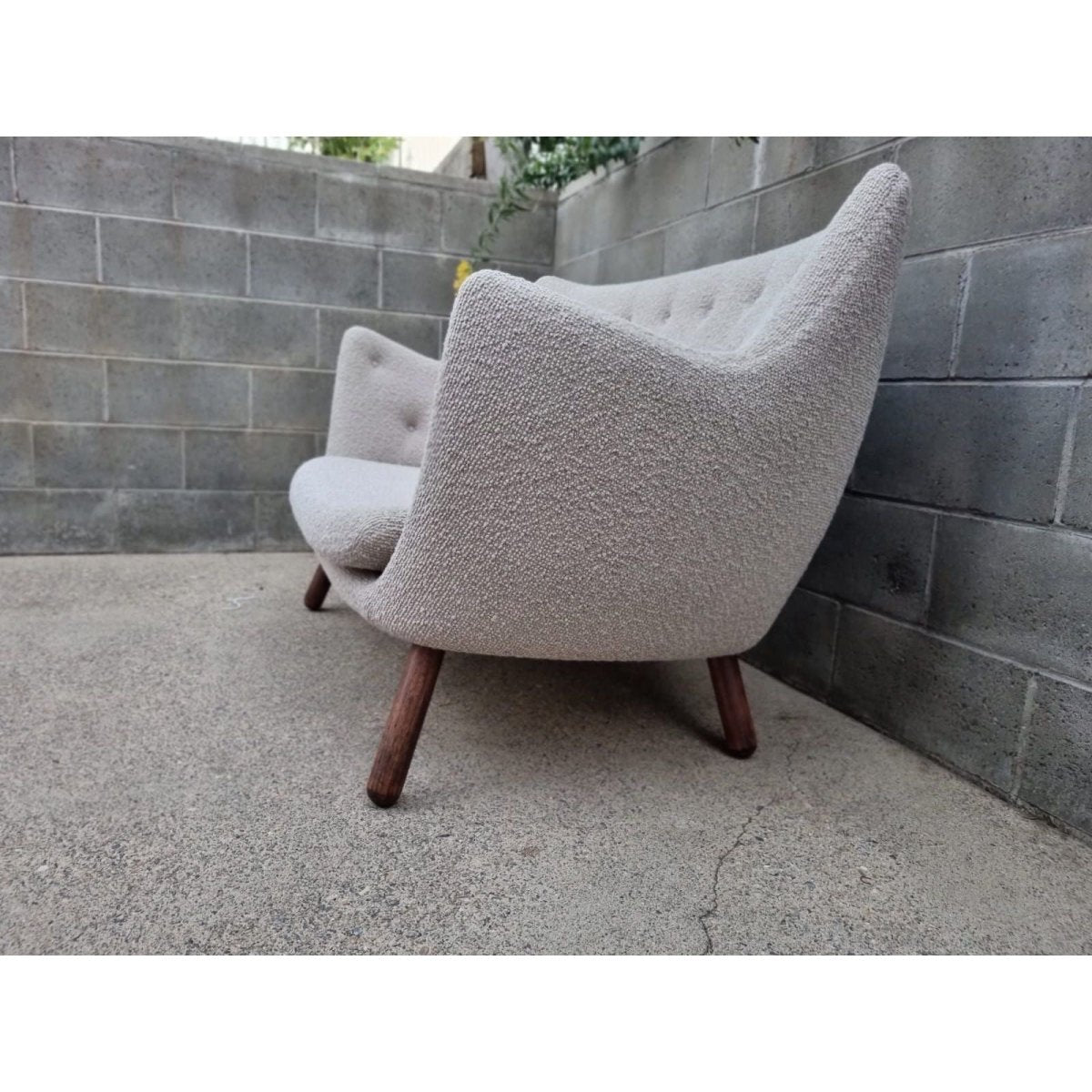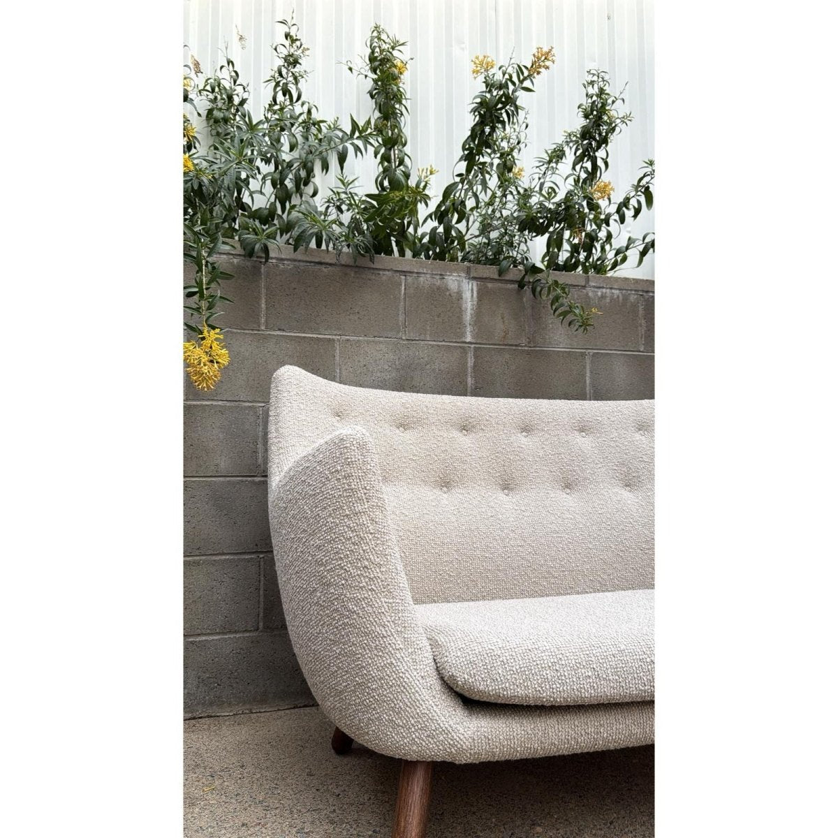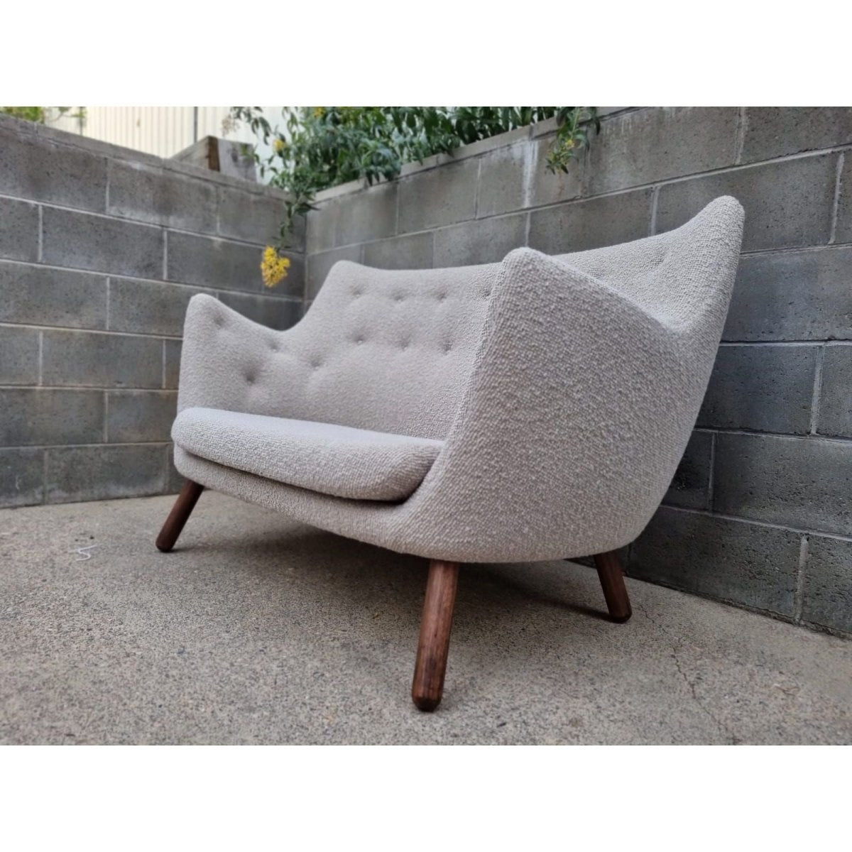 Presenting an exceptional opportunity to acquire a Finn Juhl Poet Sofa, Model FJ4100, a timeless design icon, meticulously restored to the highest standard. This piece has been professionally reupholstered by Jason of Demuz using premium Kvadrat fabric, enhancing both its comfort and aesthetic while remaining true to the original design.