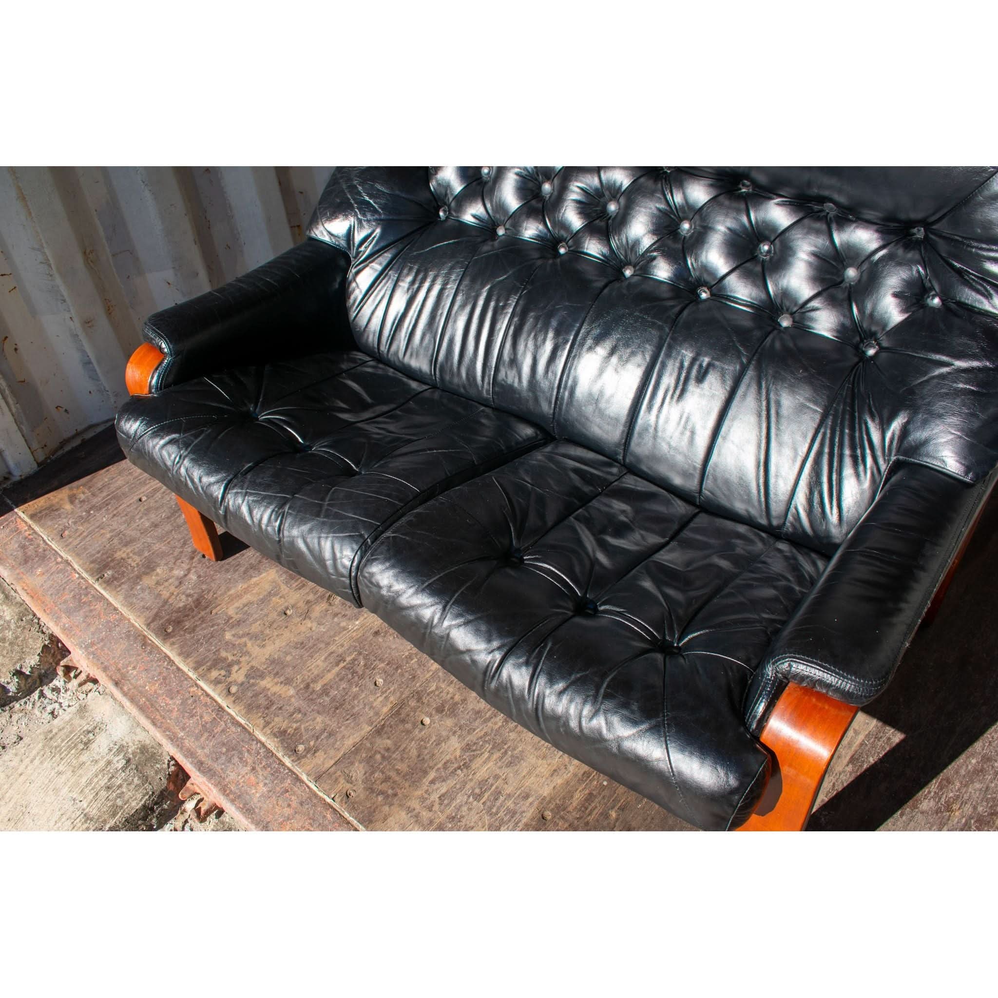Condition:Good overall condition with some signs of use consistent with age. No rips or cracks in the leather. The leather has been professionally cleaned and conditioned. The frame has also been cleaned and oiled to restore its original warmth and luster