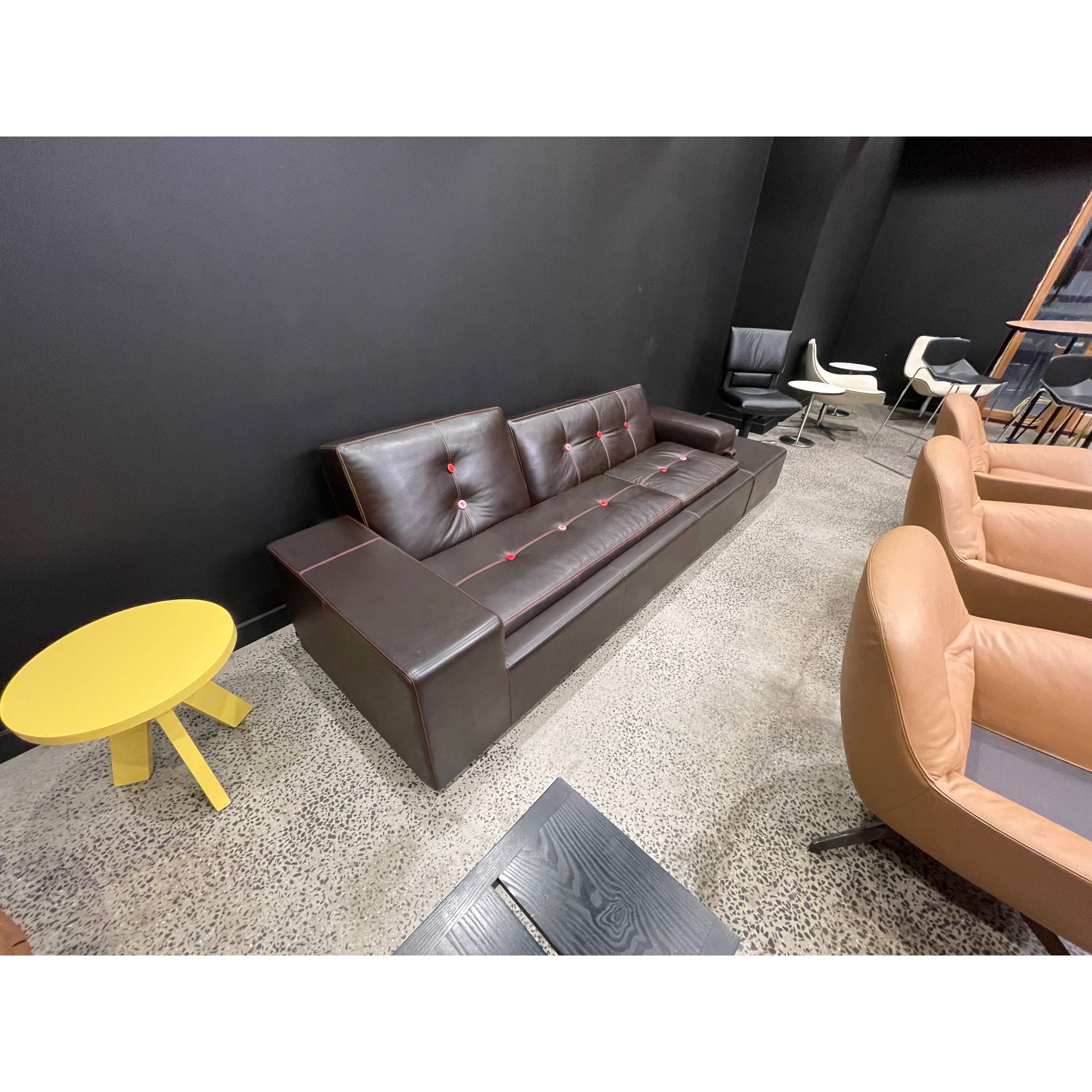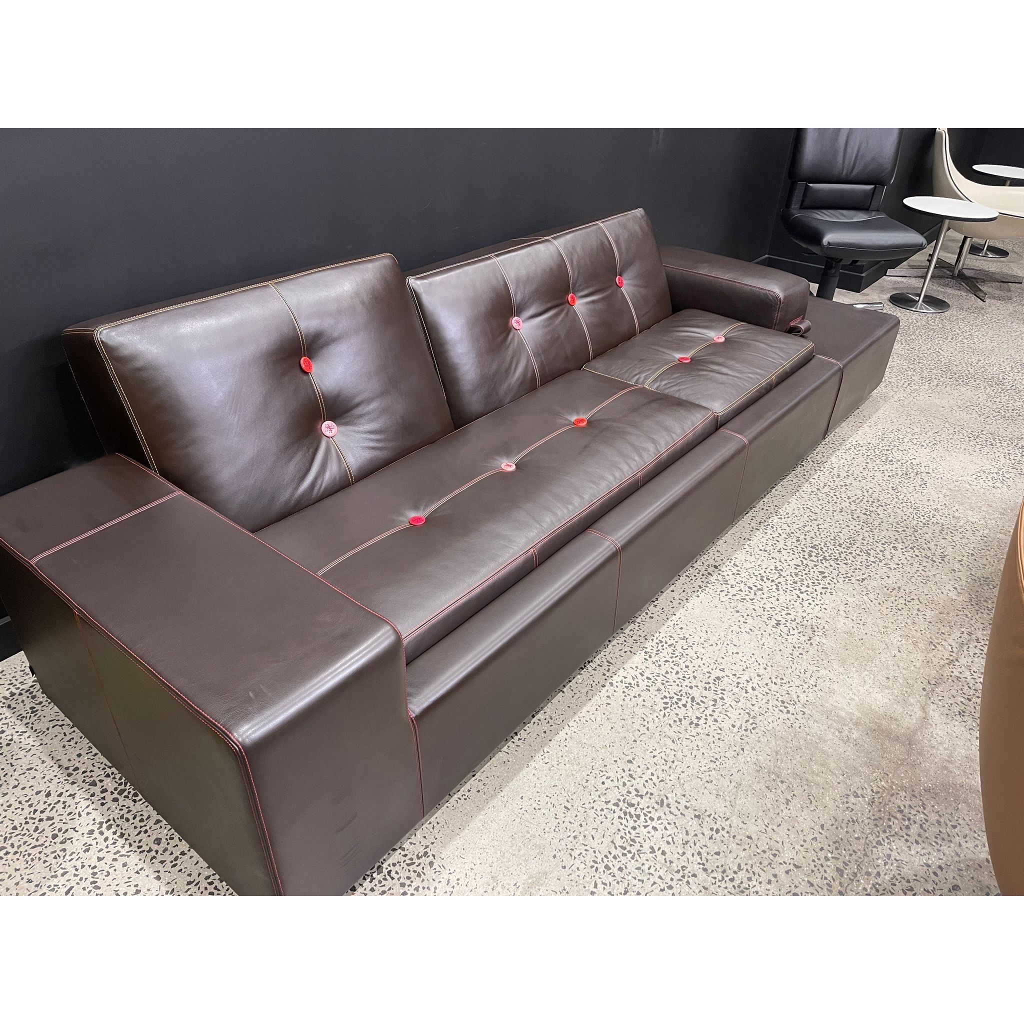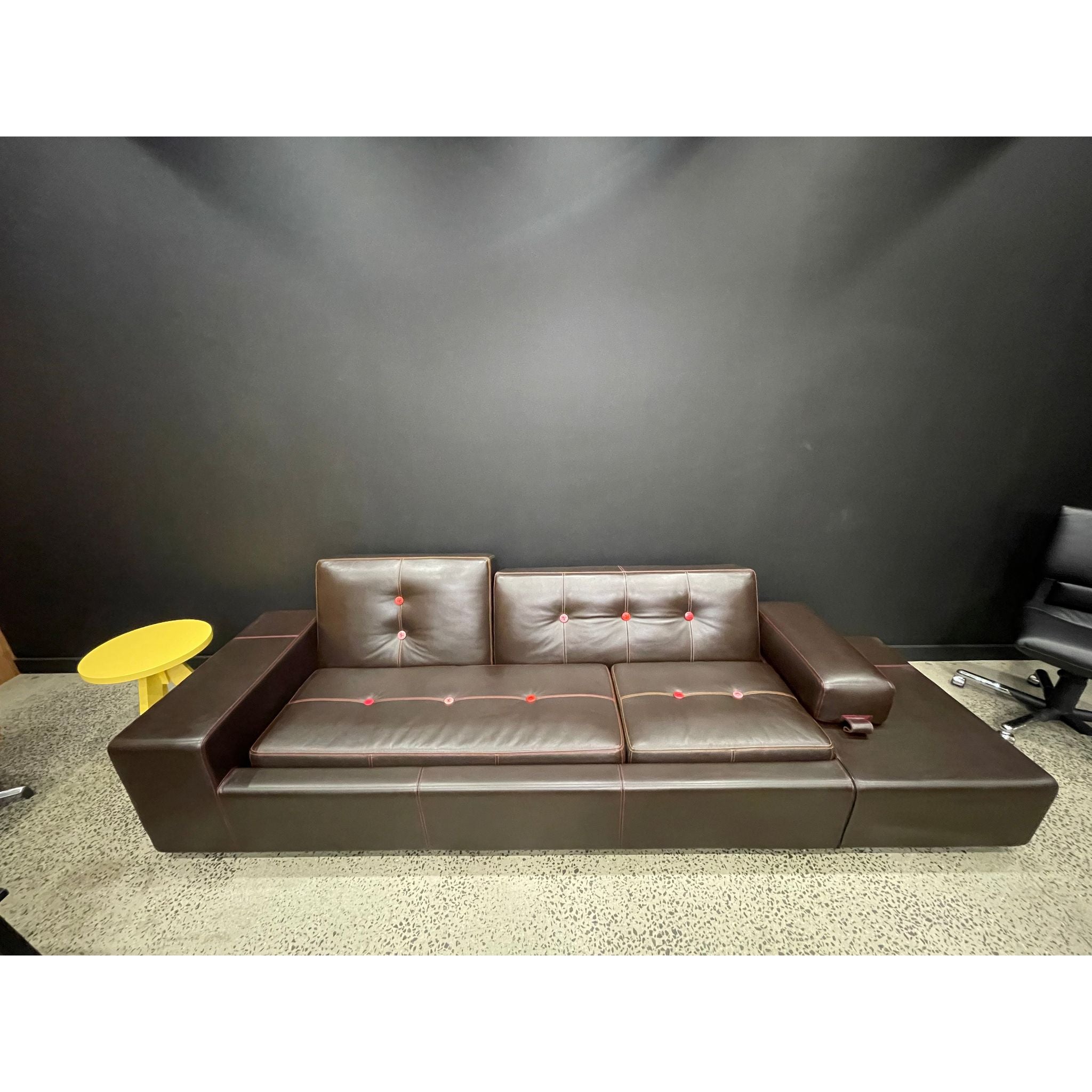 In the home country of Dutch designer Hella Jongerius, the word 'polder' refers to low-lying flatlands, typically subdivided into fields for agriculture, which have been reclaimed from the sea by means of dykes and drainage canals. Created with a flat surface and horizontal emphasis that evoke the characteristic features of this type of landscape, the Polder Sofa exhibits an unusual asymmetrical shape and carefully crafted combination of colours, materials and textures.