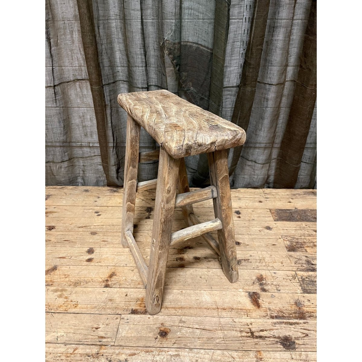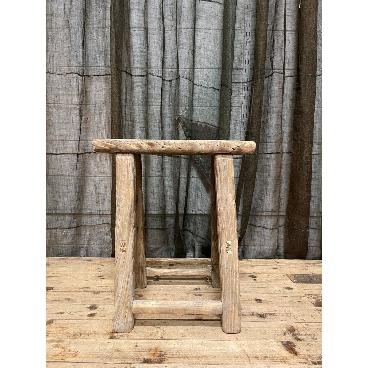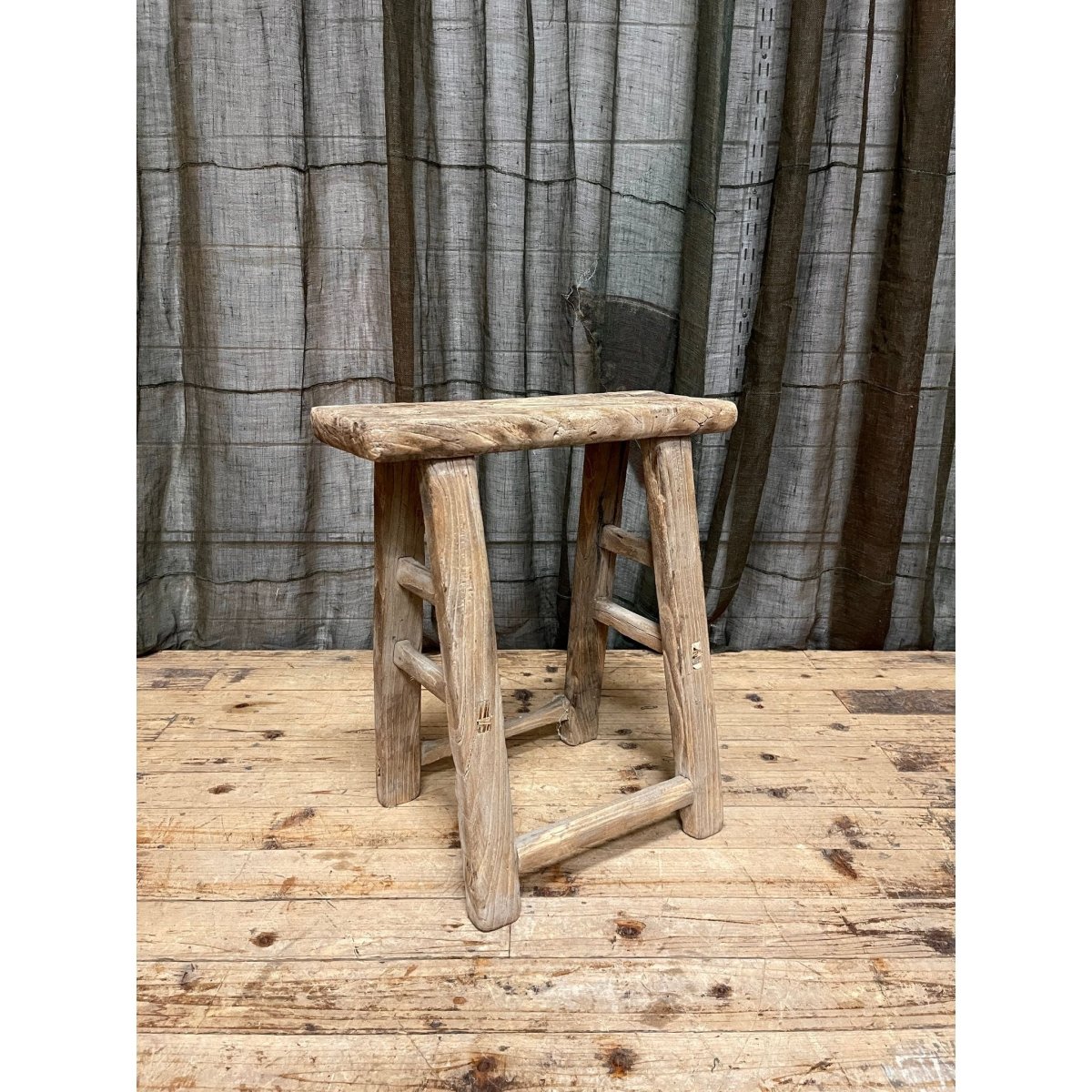 Antique Chinese provincial stool made from elm wood.