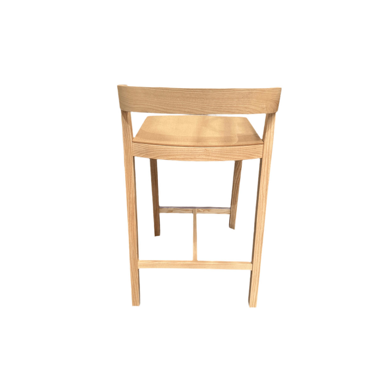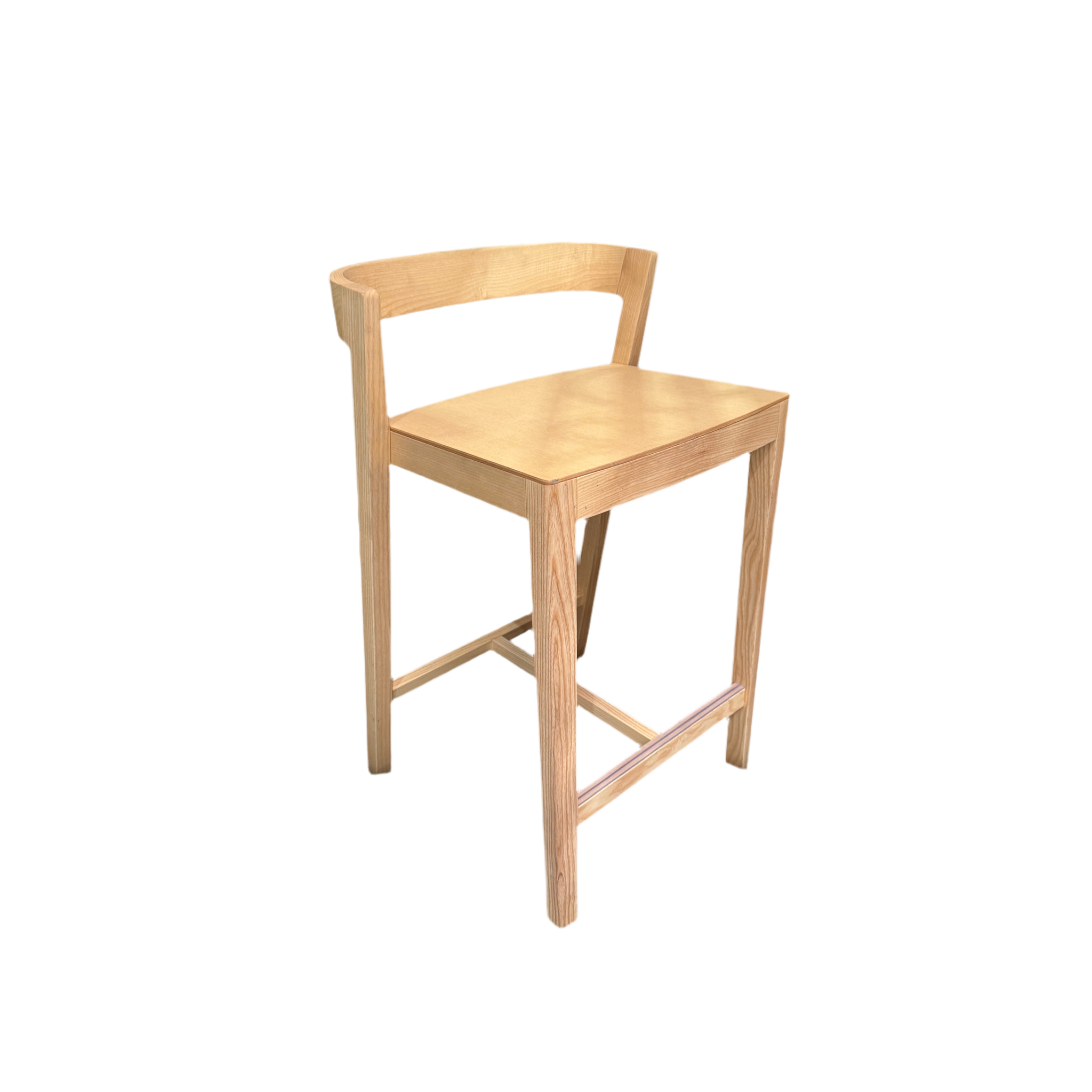 Designed in 2005 by Lorens+Kaz, this Bedont Drive barstool features a clean, architectural design crafted from solid light-toned wood. Its elegant, minimalist form is both stylish and comfortable, making it a perfect addition to a contemporary kitchen or bar.