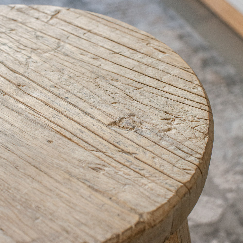 Add rustic warmth and timeless character to your home with this beautiful stool made from reclaimed elm wood. Each piece tells its own story—featuring natural knots, gnarls, and imperfections that celebrate the unique beauty of recycled timber.