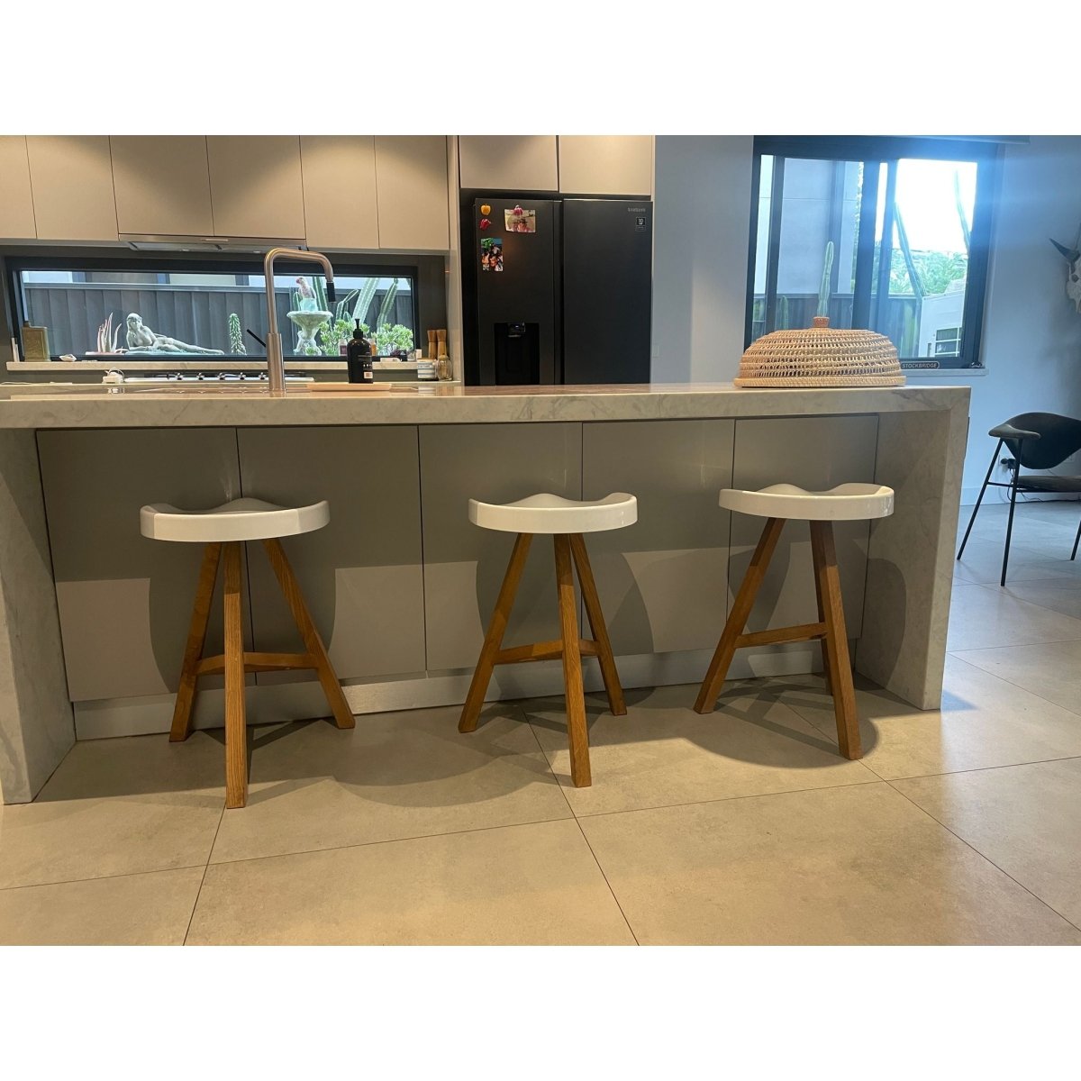 The Heidi Bar Stool, designed by Andreas Engesvik and Daniel Rybakken for Established & Sons, is a striking reinterpretation of the classic alpine milk stool. Featuring a glossy white polyurethane saddle seat paired with a solid oak timber base, the Heidi Bar Stool brings together sculptural form and timeless utility.