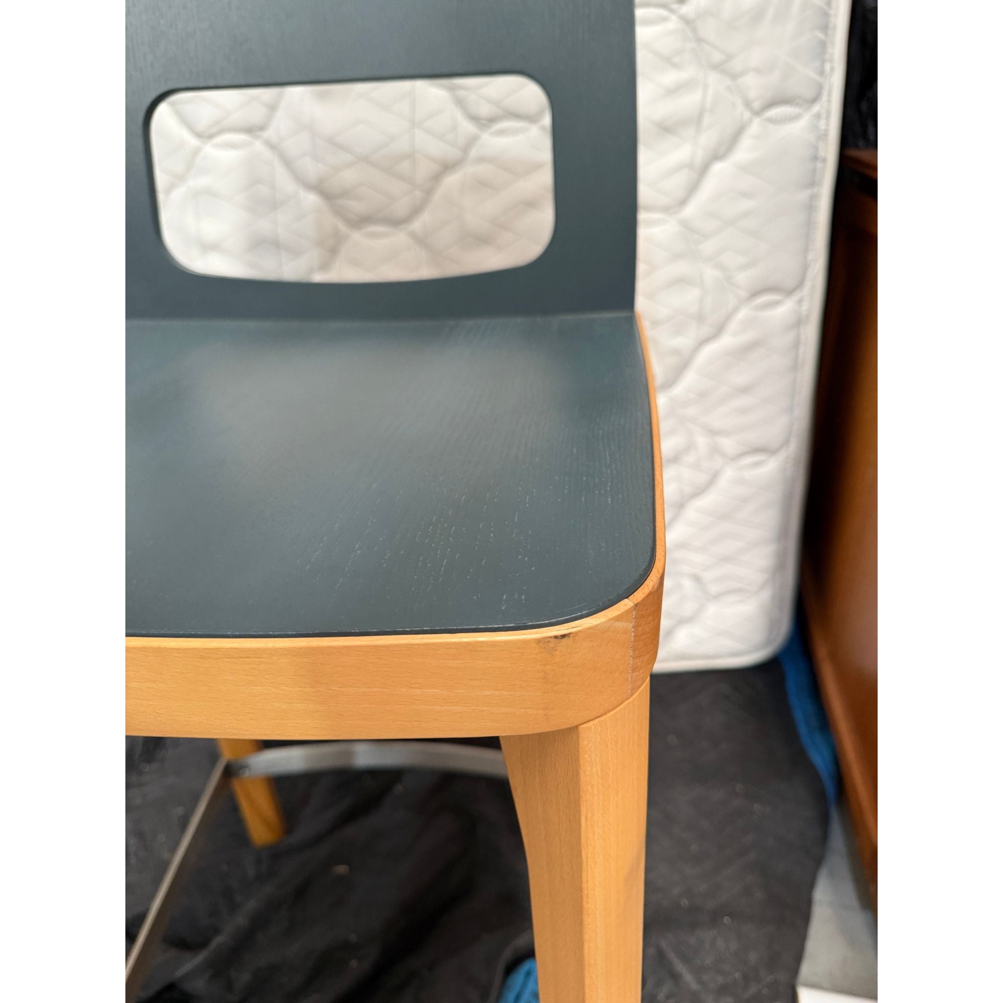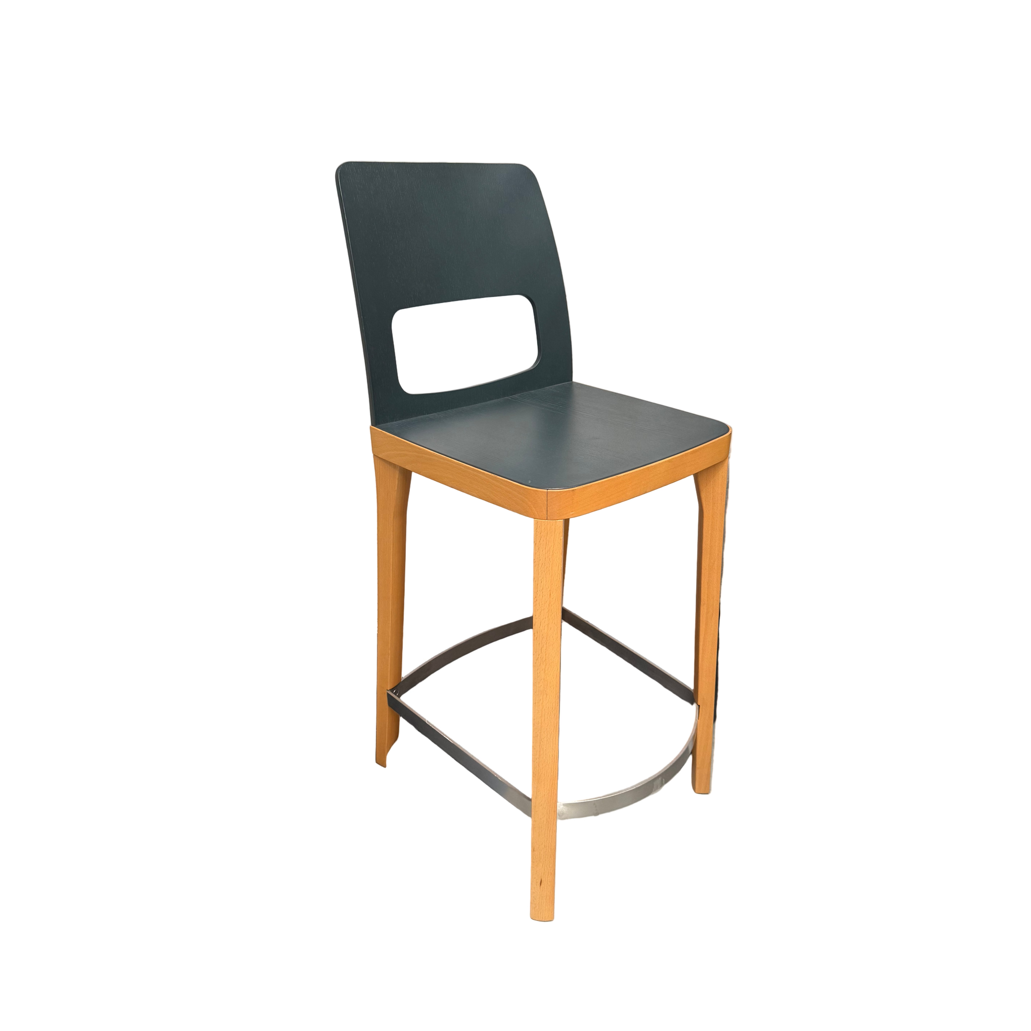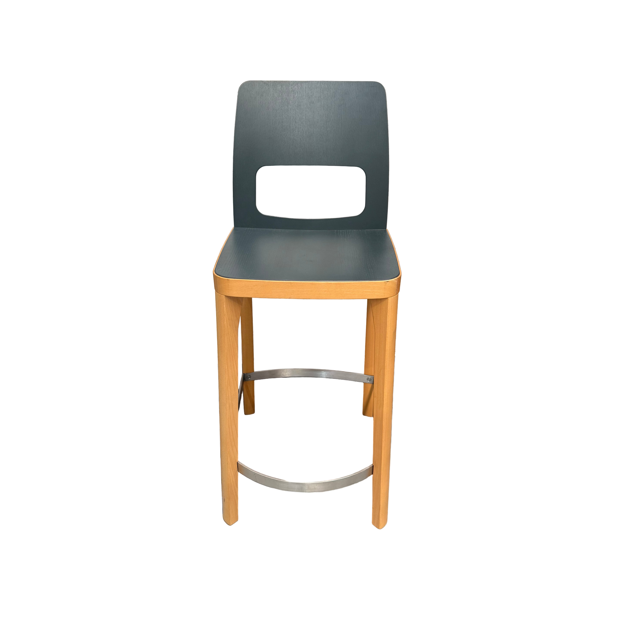 Materials: Ash frame, vincent (charcoal grey) laminate seat and back, stainless steel footrest.