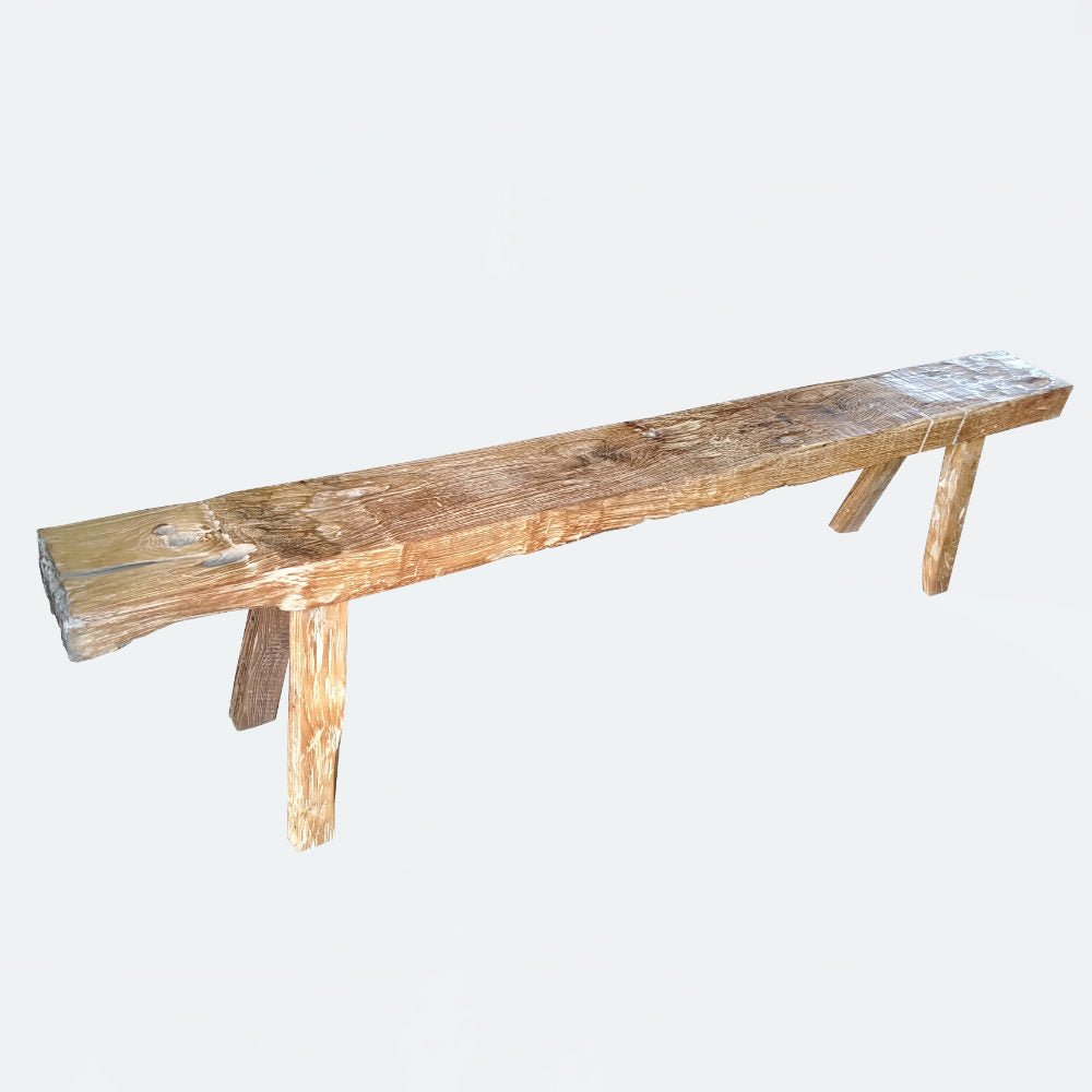 Recycled teak wood bench seat featuring grains and characteristics that instil rustic charm into your interior or exterior space, with no two bench seats being the same.
