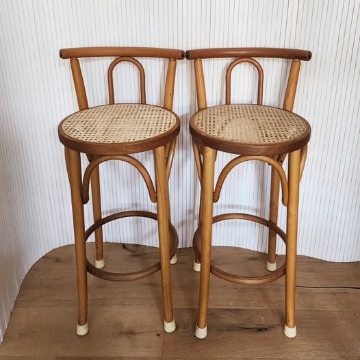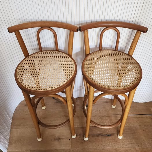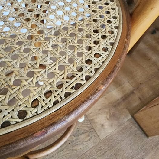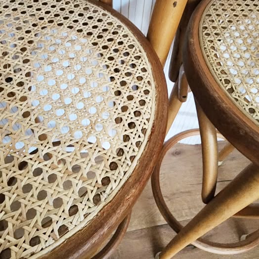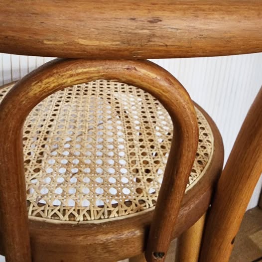 Good vintage condition. One of the seat has been recaned. Some parts of the frames have been patched.