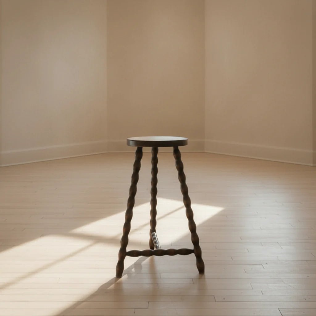 This vintage French tripod stool combines rustic appeal with refined craftsmanship. Made from solid beech wood, its barley twist legs add a distinct, handcrafted texture that speaks to traditional woodworking techniques. Standing 54 cm tall with a 27.5 cm diameter seat, it offers both style and functionality in a compact form. Perfect as an accent piece or extra seating, this stool adds a touch of timeless elegance and character to any living space or cozy corner. Its unique design effortlessly blends into a relaxed, vintage-inspired setting.