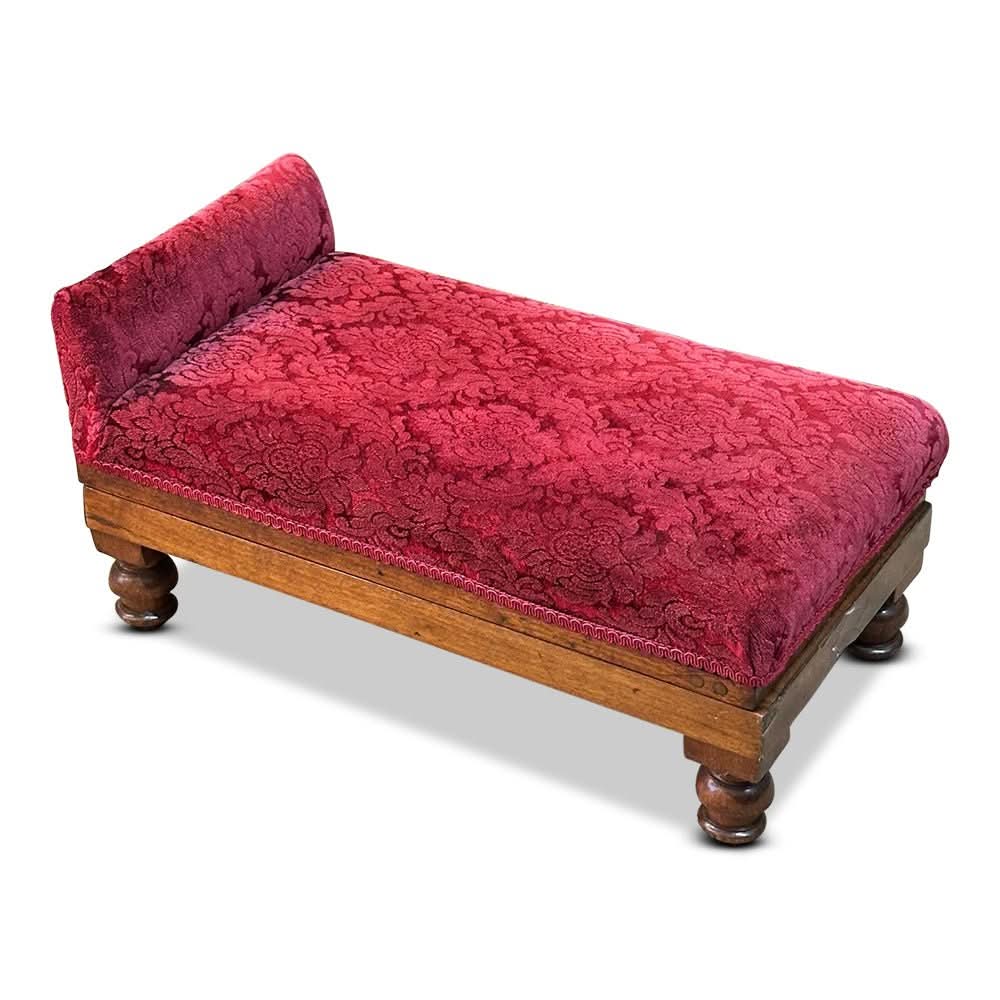 This has been well upholstered in a rich red velvet damask fabrication.