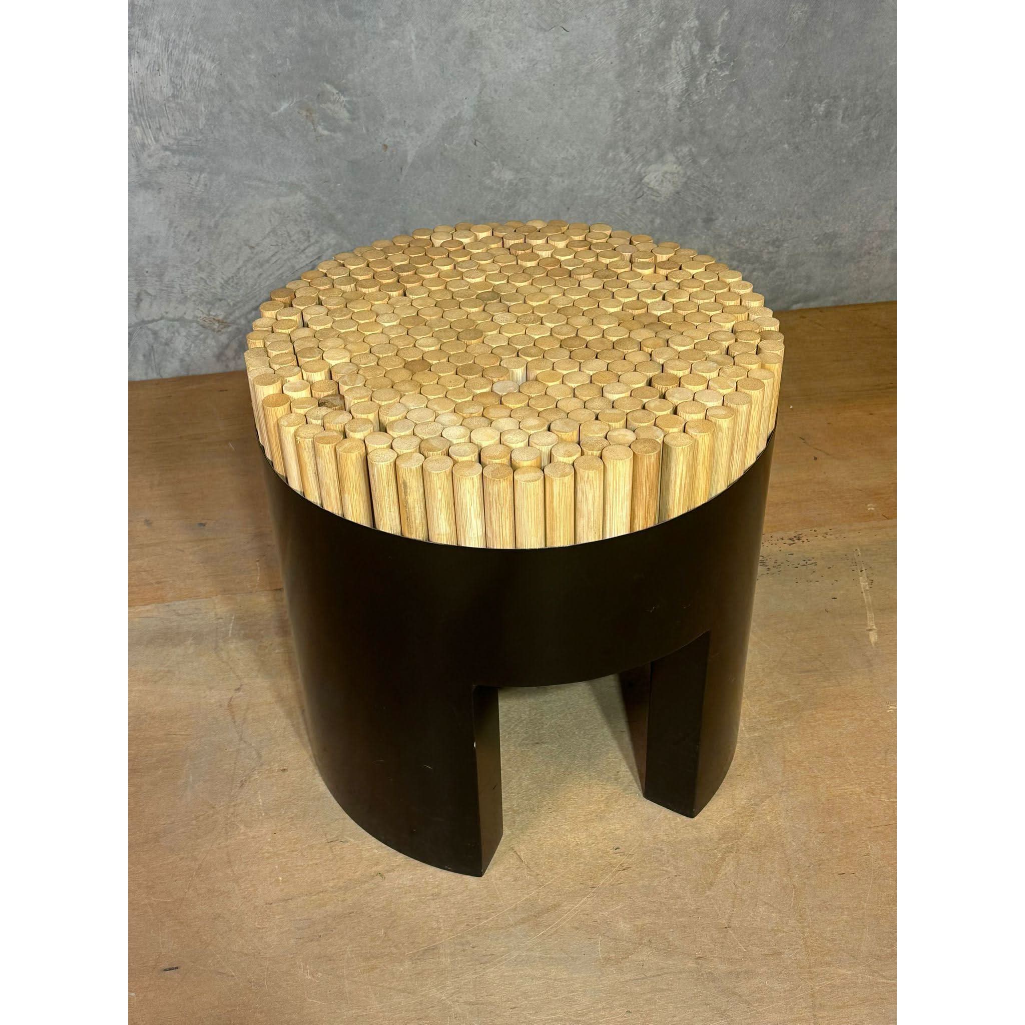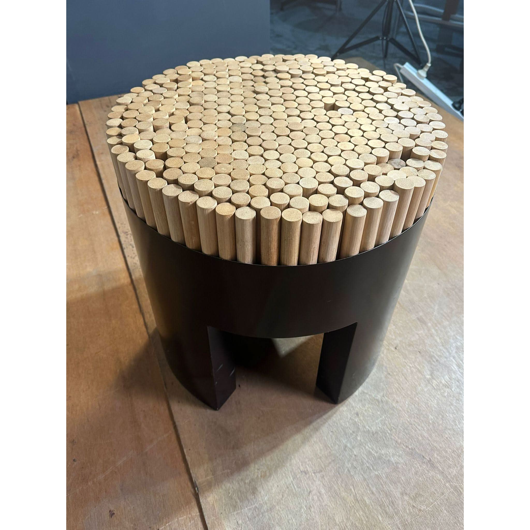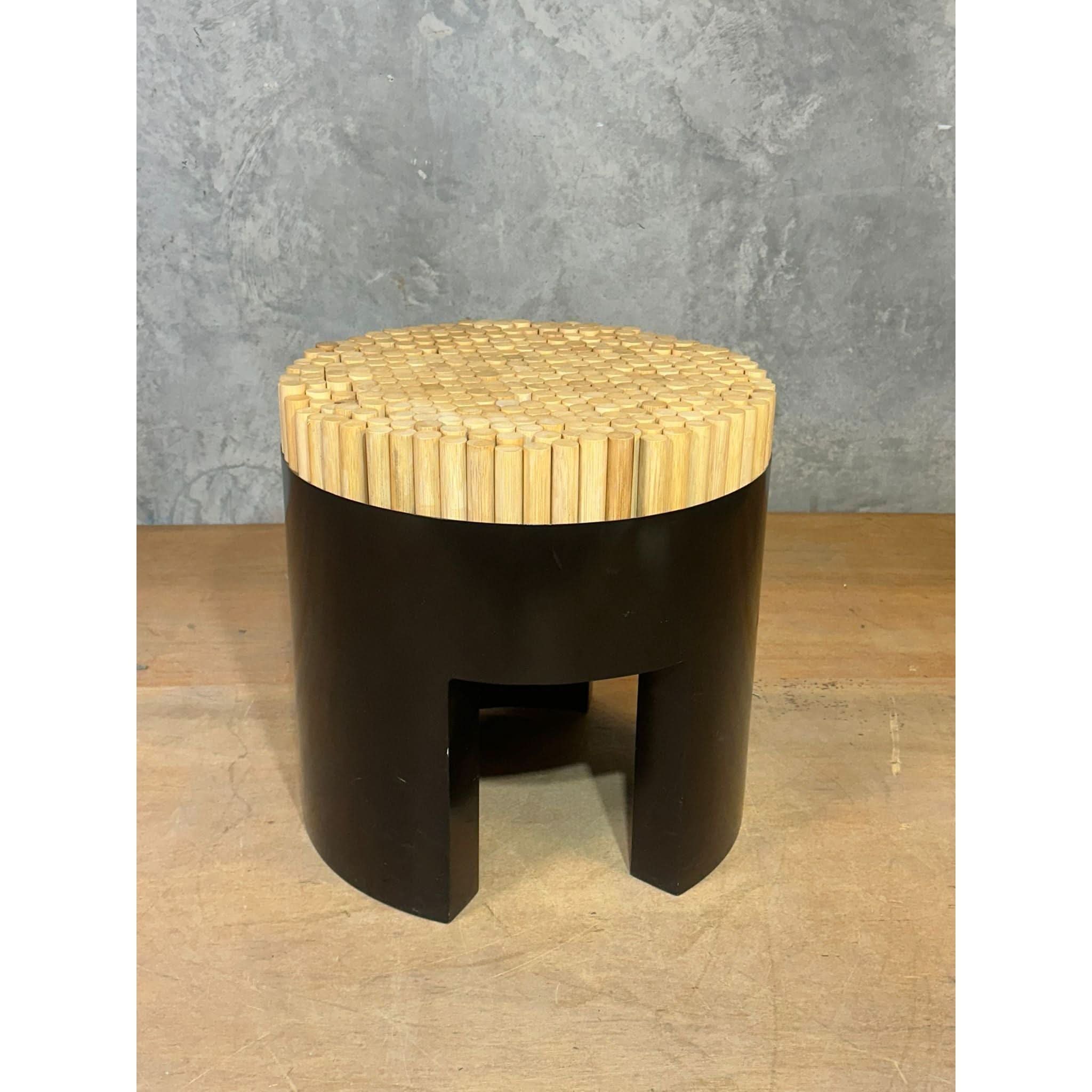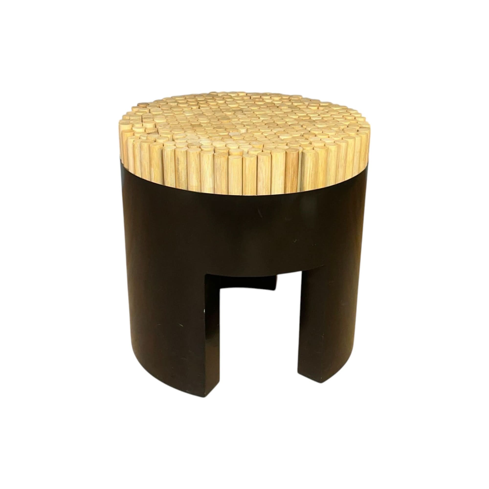 Elevate your space with the Black Chiquita Stool by Kenneth Cobonpue. Crafted with clever design and functionality, this bundle of charms boasts vertical sections of rattan poles and high-density foam for a uniquely comfortable sitting experience. Elevate your decor and indulge in luxury with this exquisite stool.
