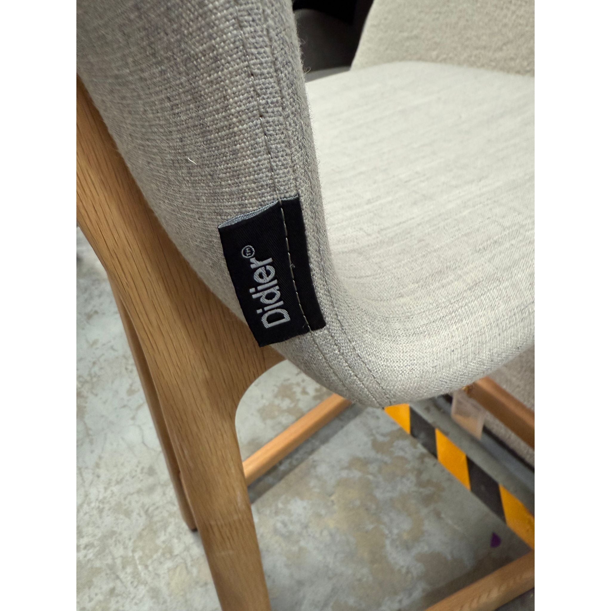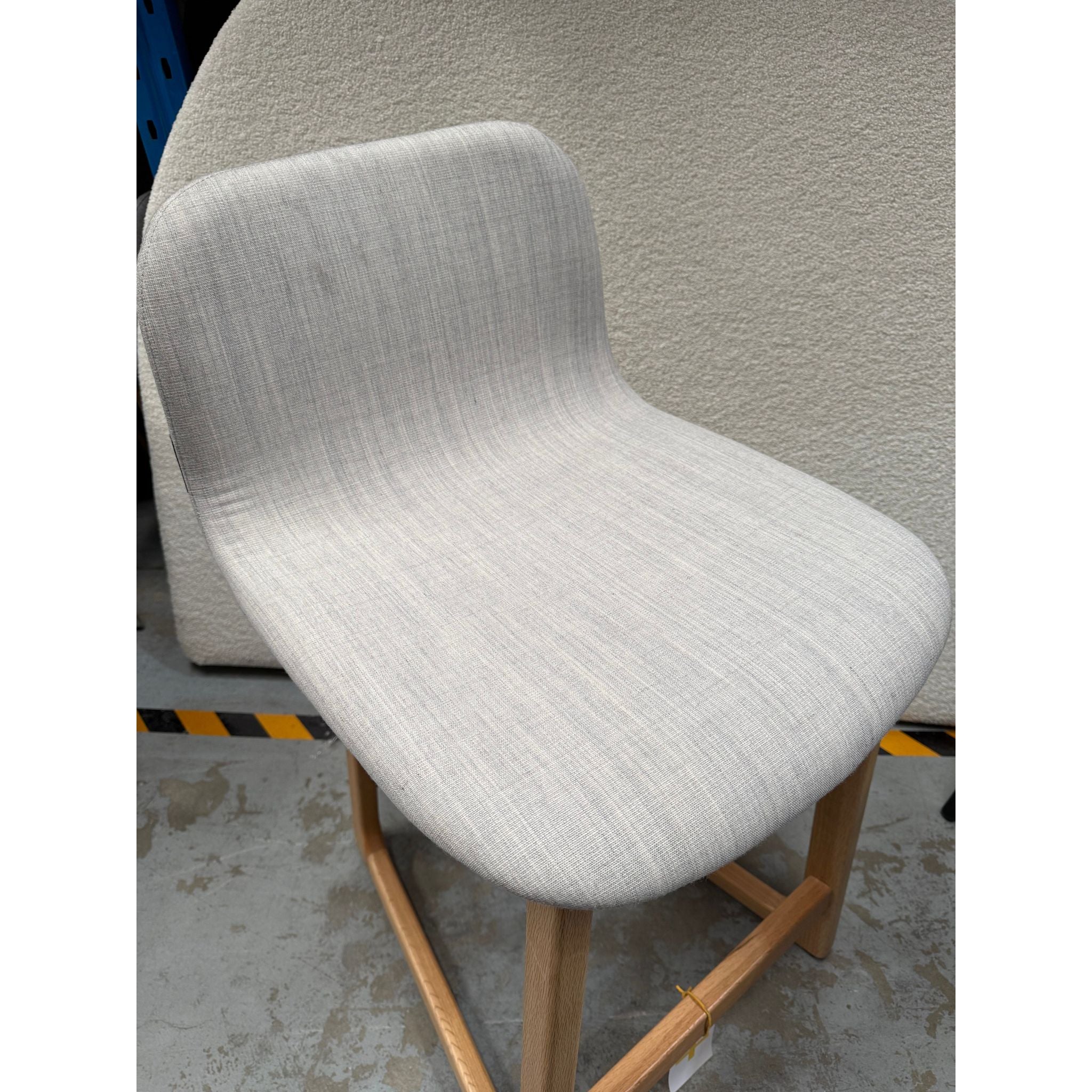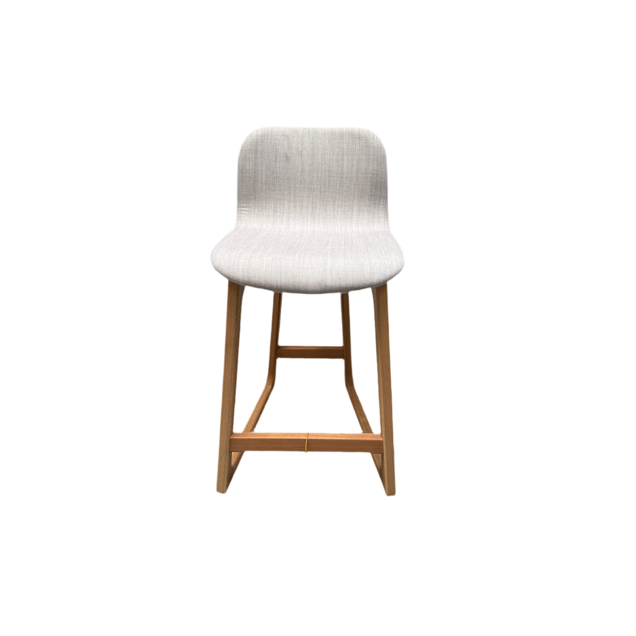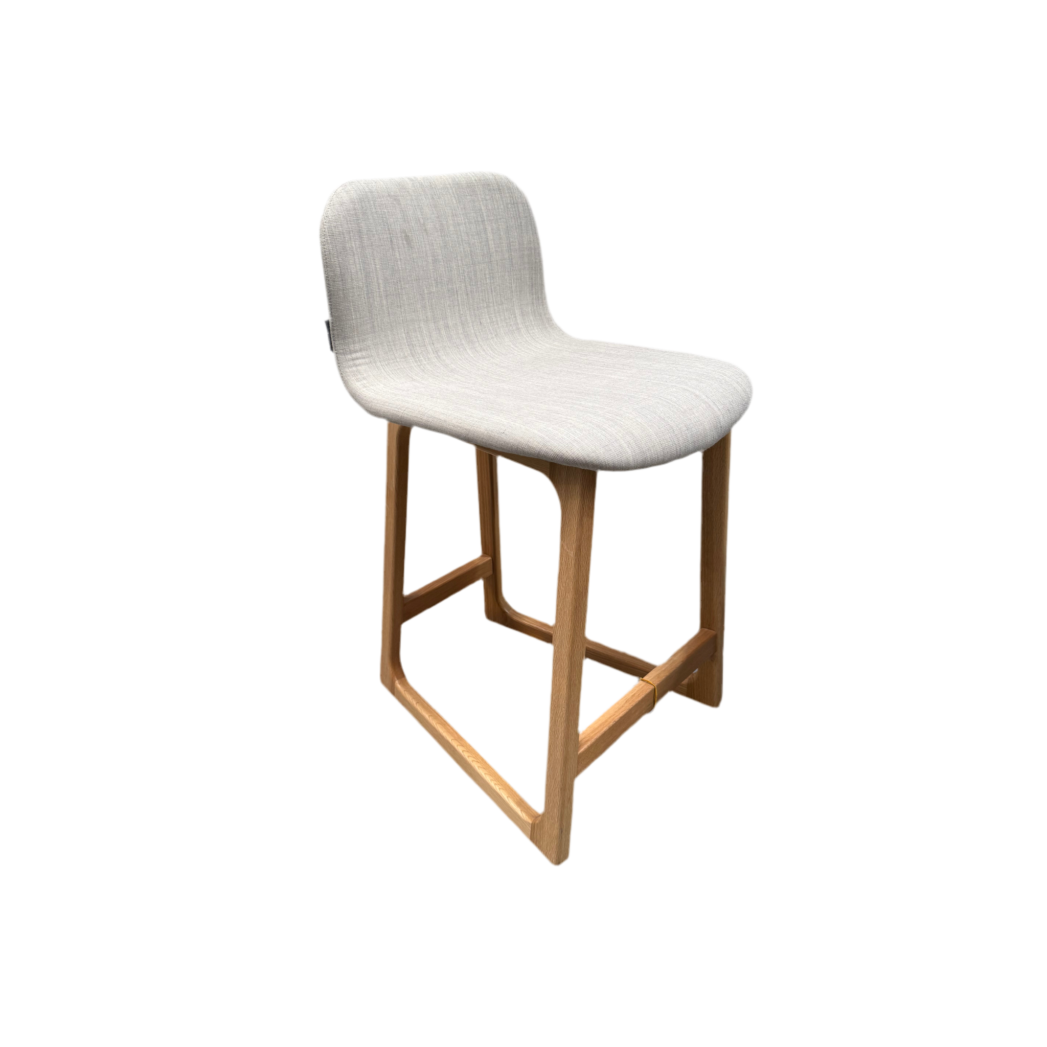Designed by the acclaimed Ross Didier, this Tiller Stool is an elegant piece of Australian design. It features a solid American oak frame with a natural finish and a comfortable, upholstered seat in a light, off-white fabric. The stool's minimalist and organic design makes it a versatile addition to any modern space.