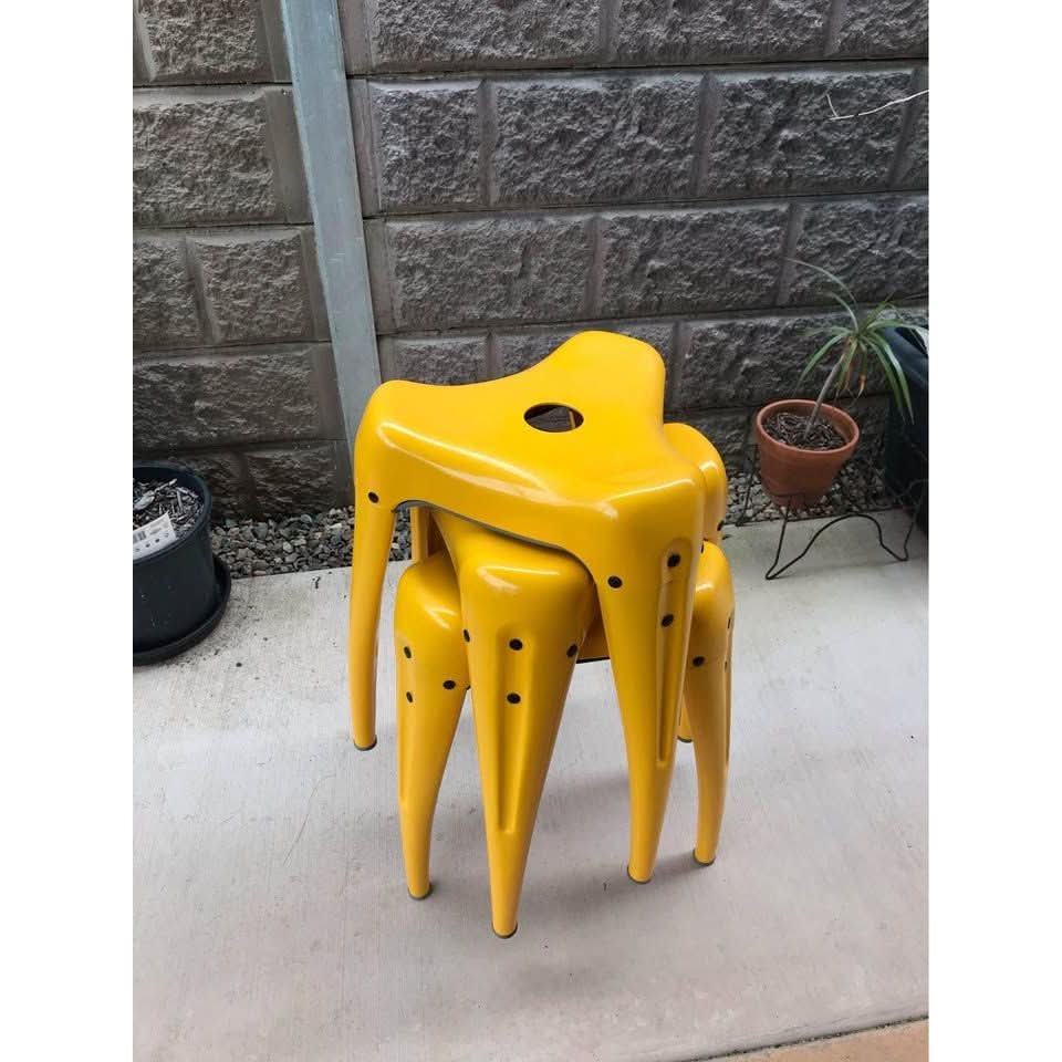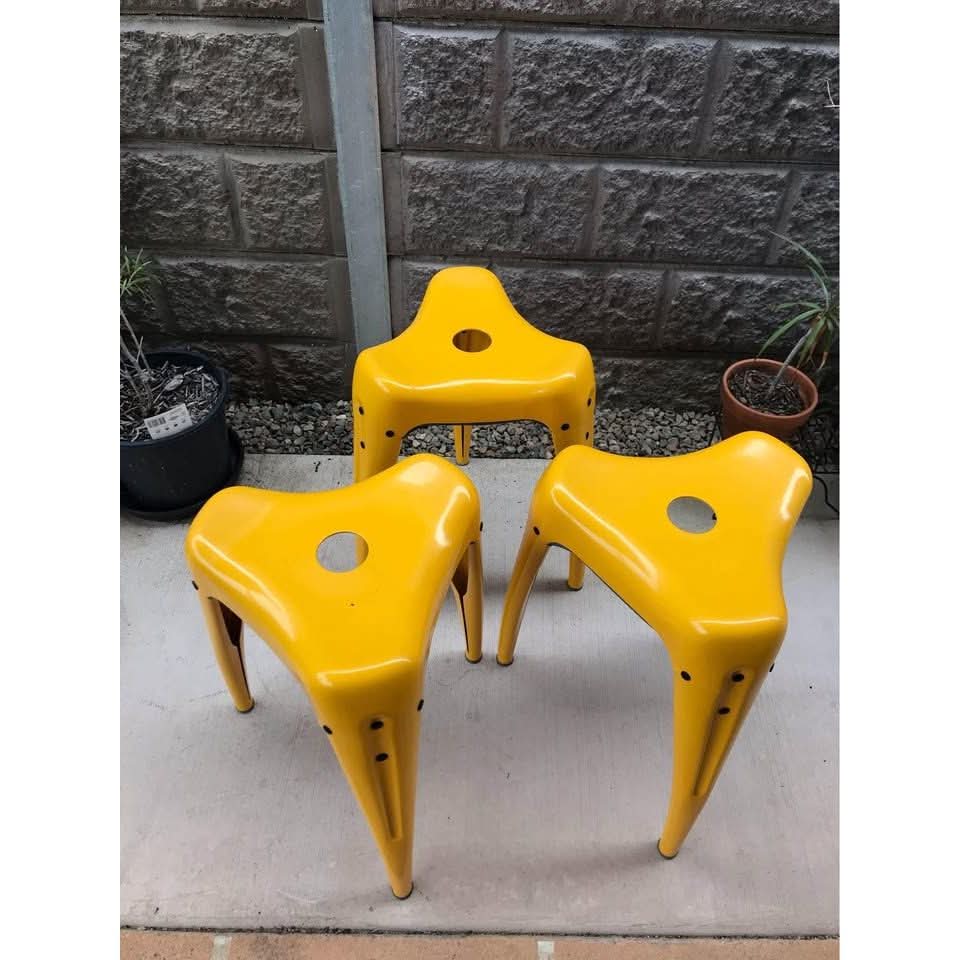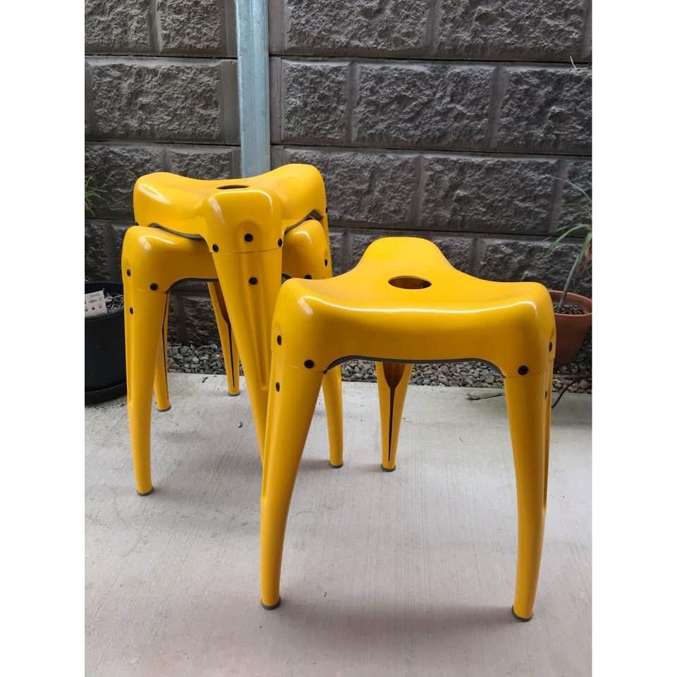 Rare refurbished vintage stackable yellow stools by Dulton. Designed by Yasu Sasamoto.