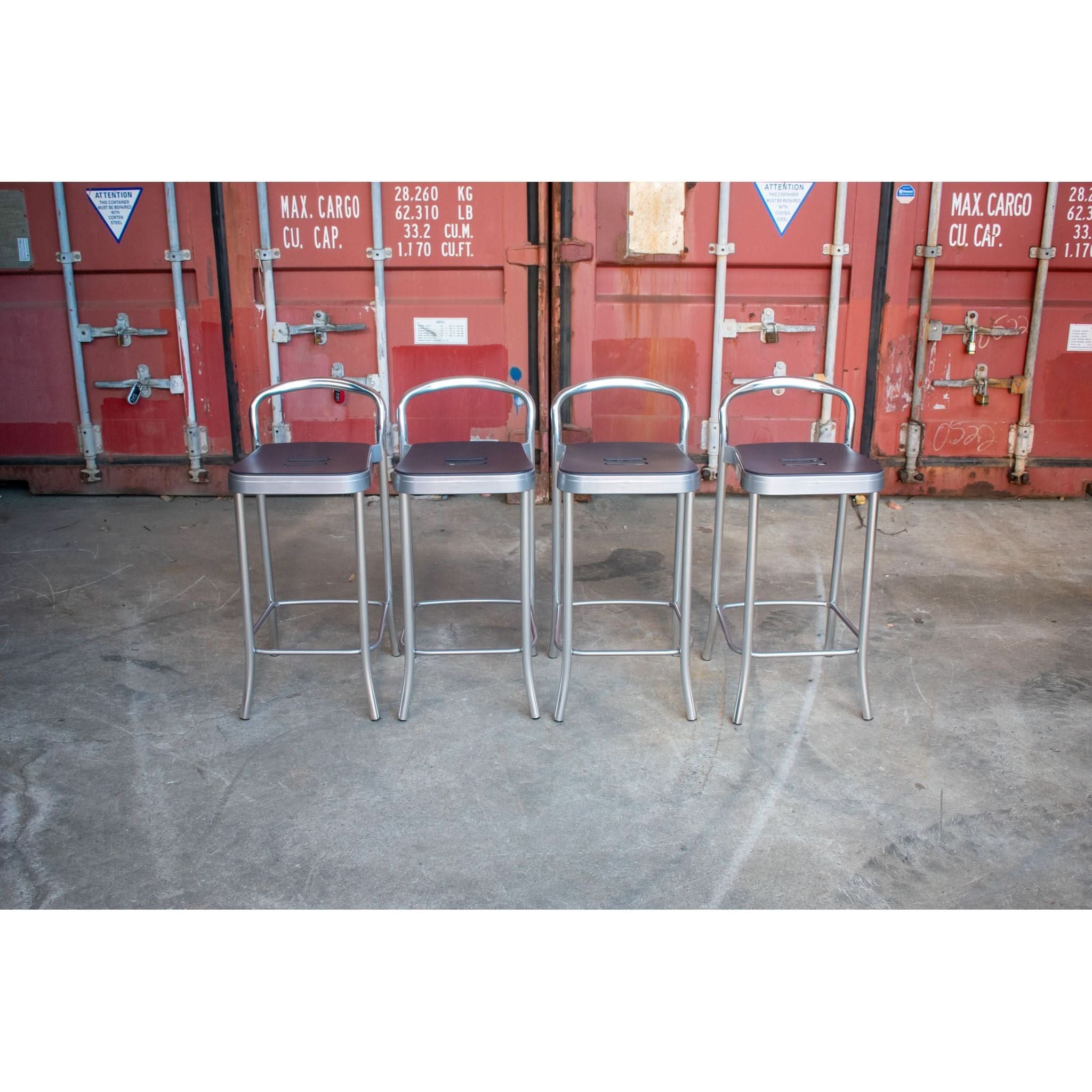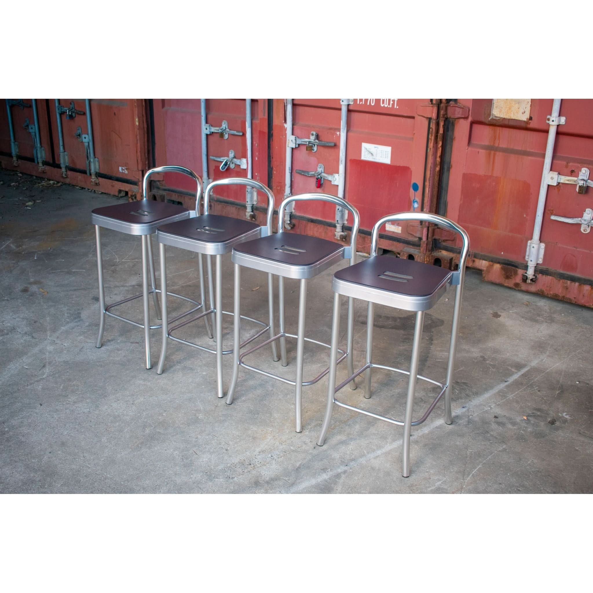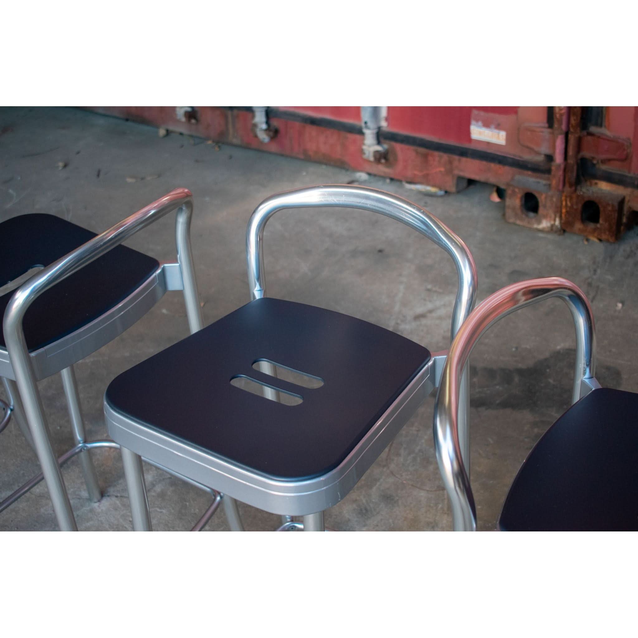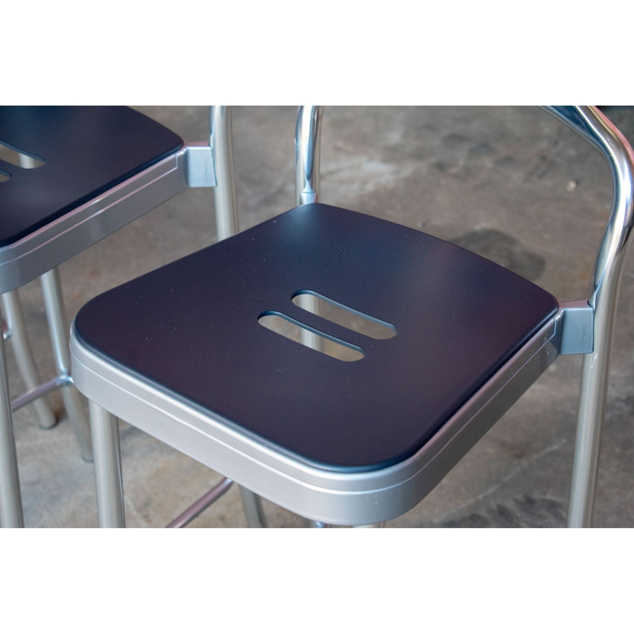 Stylish and versatile, these Kartell Mauna Kea bar stools showcase a polished aluminum frame paired with a polypropylene seat. Designed by Italian master Vico Magistretti, their lightweight aluminum construction includes powder-coated frames and ergonomic seats with grab-hole centers. Durable materials and BZP screws make them suitable for both indoor and outdoor use, perfect for kitchens, studios, or patios. With a sleek and modern aesthetic, they combine functionality and elegance.