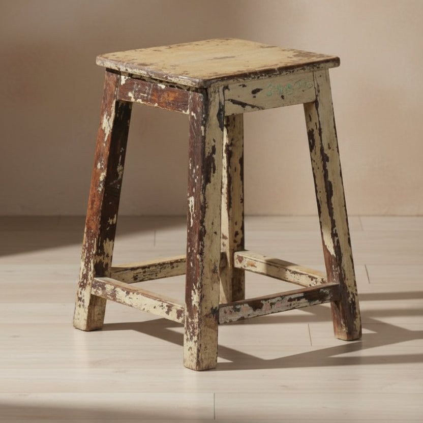 Handcrafted from aged teak, this Rajasthani stool brings warmth and character to any room. Its compact footprint and sturdy construction make it equally at home as a functional seat, footrest, side table, or plant stand. The rich patina speaks to its heritage and authenticity.