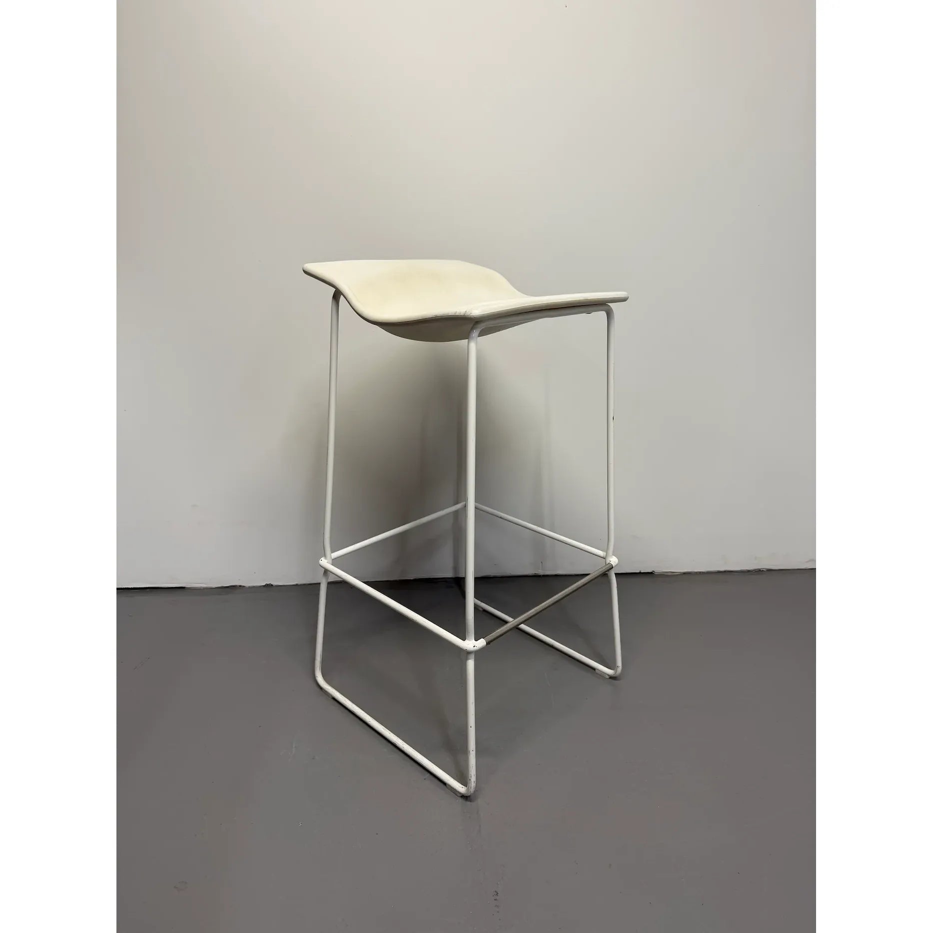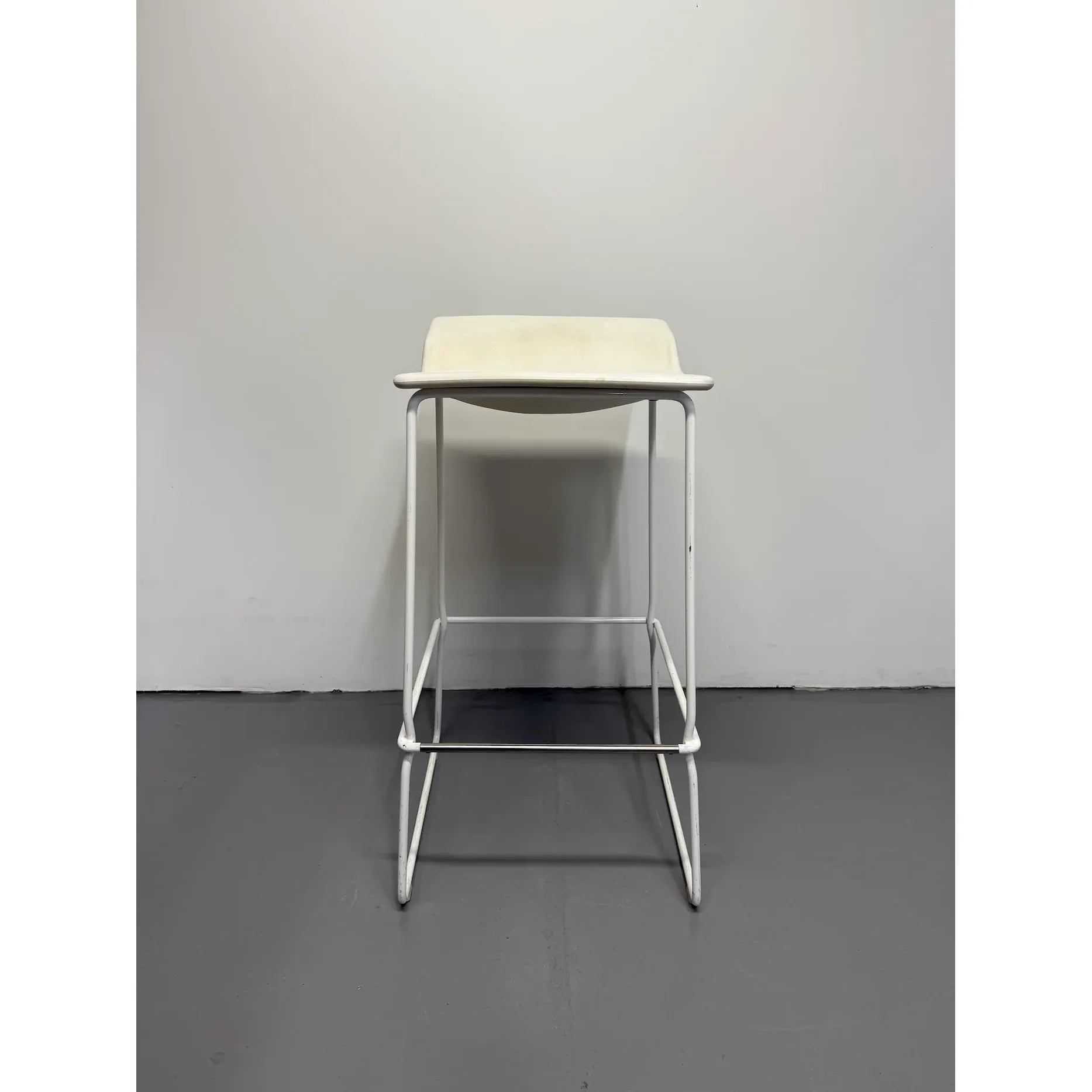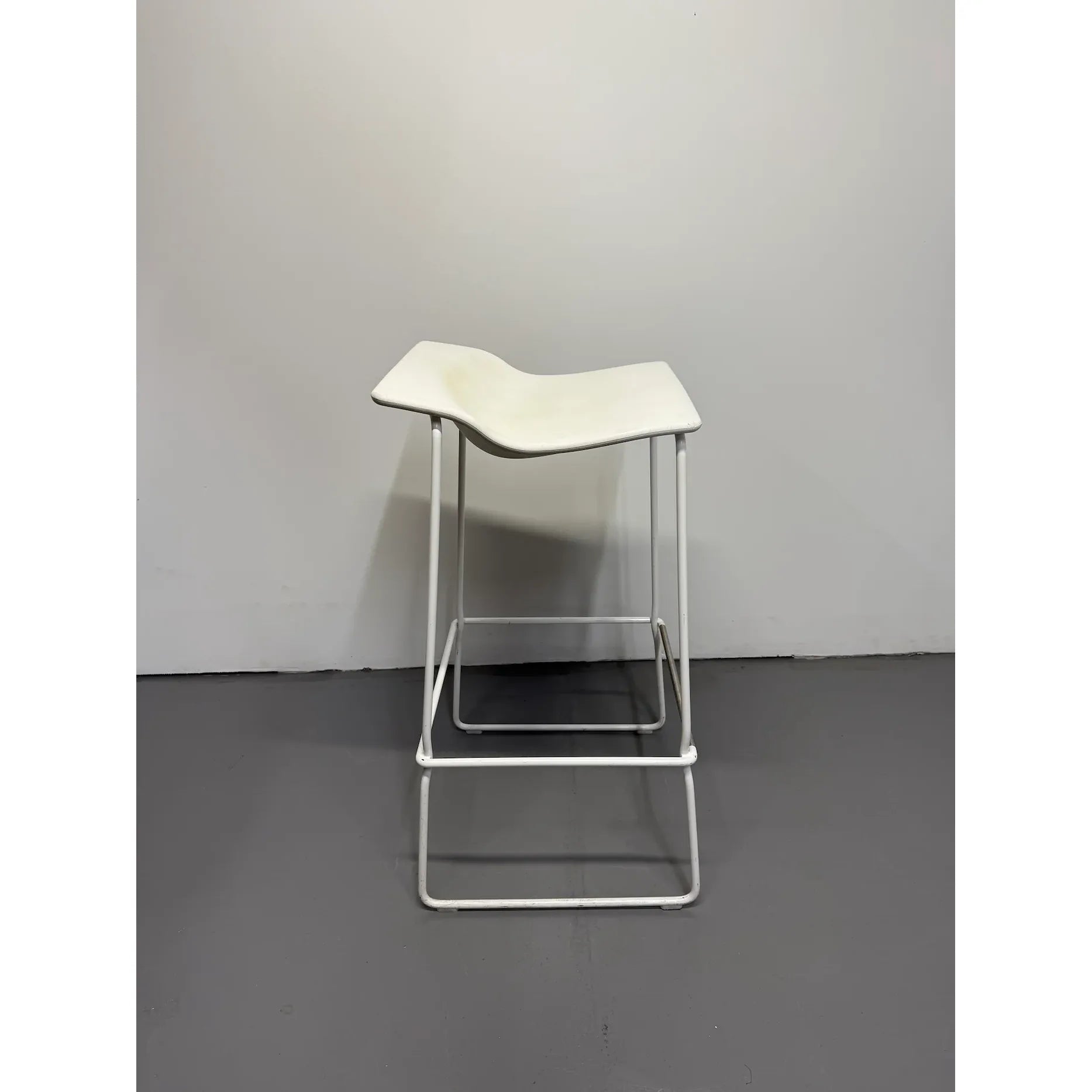 Designer: Patricia Urquiola Brand: Viccarbe (Spain) Model: Last Minute High Stool (795mm) Material: Rotationally moulded polyethylene seat, steel rod base, stainless-steel footrest Finish: White seat and frame