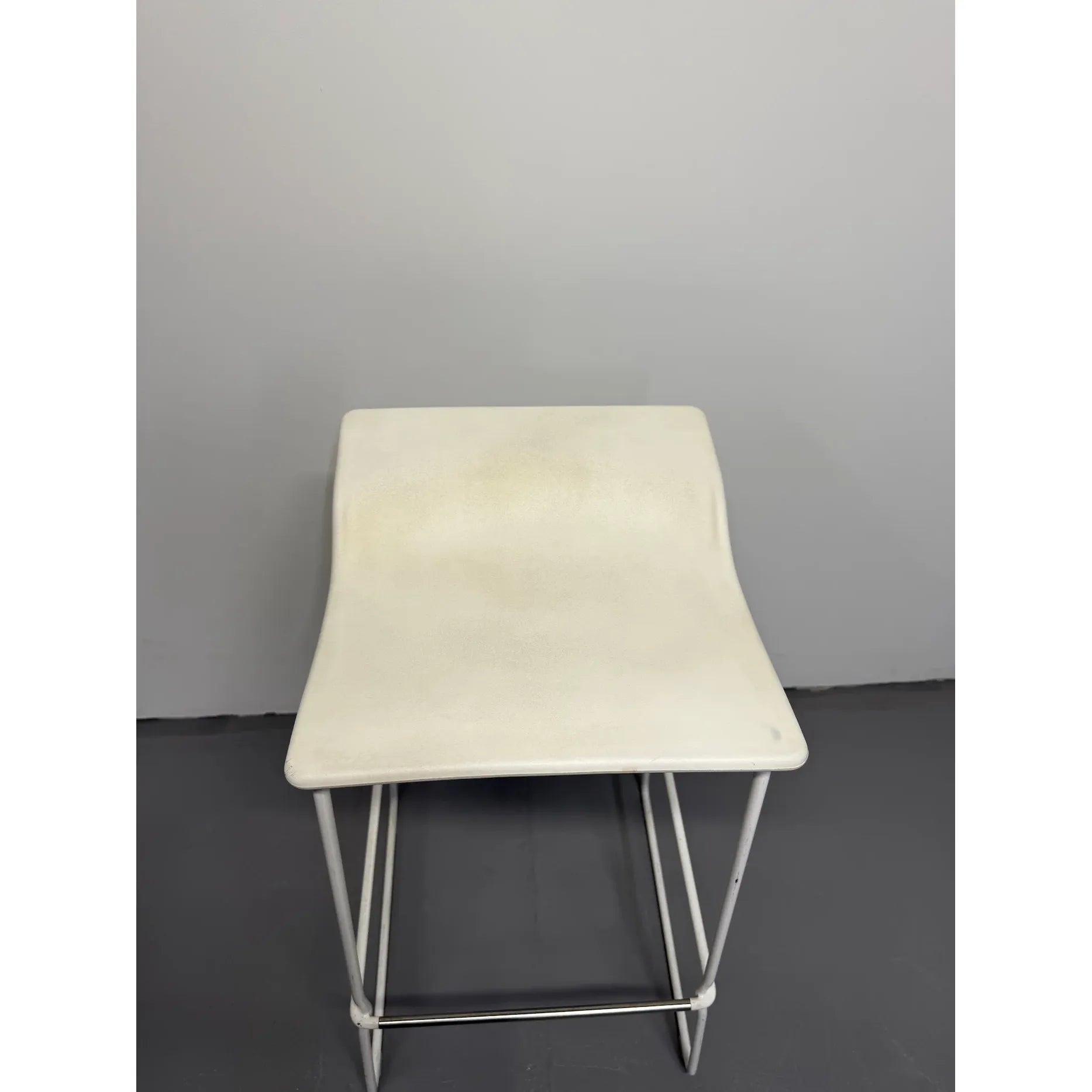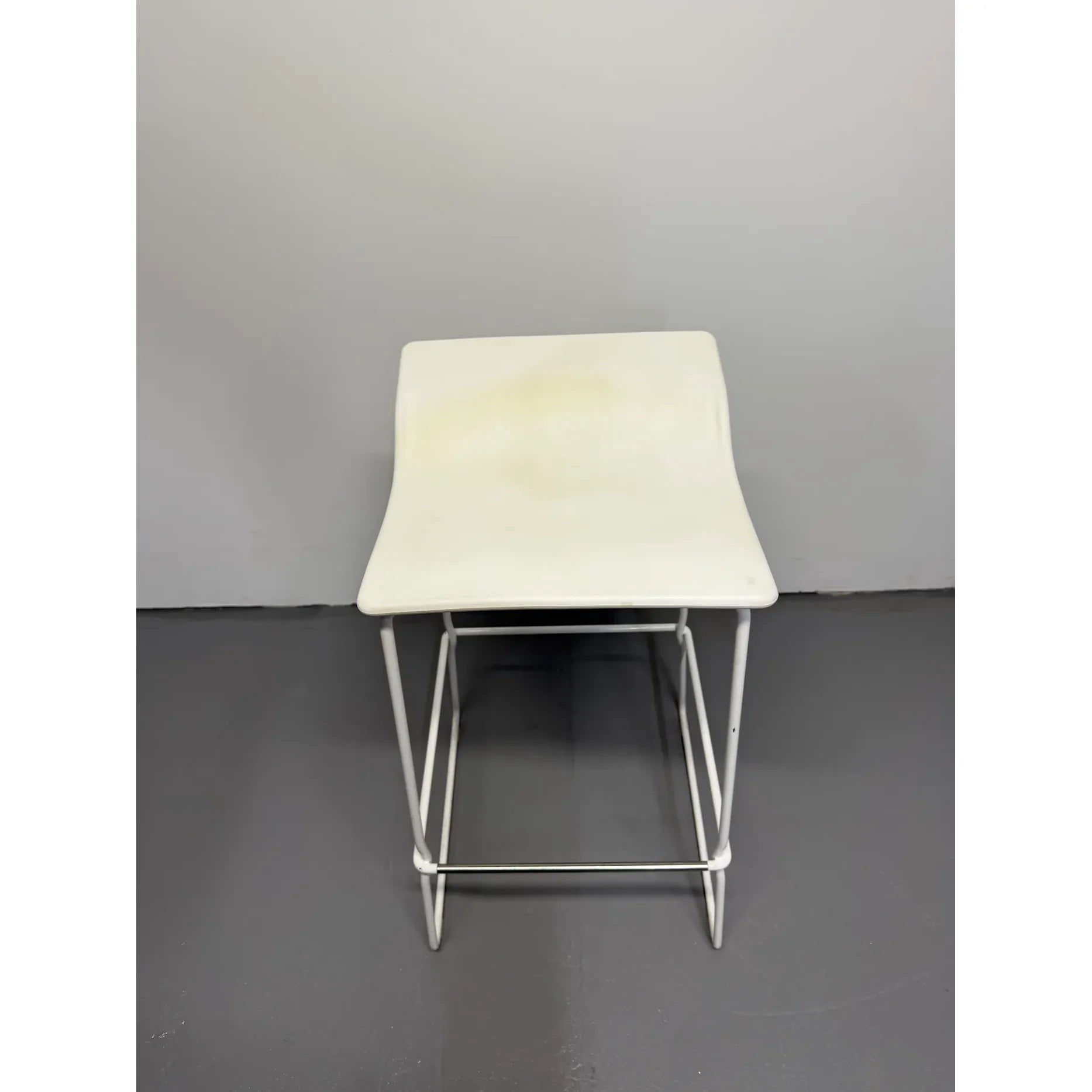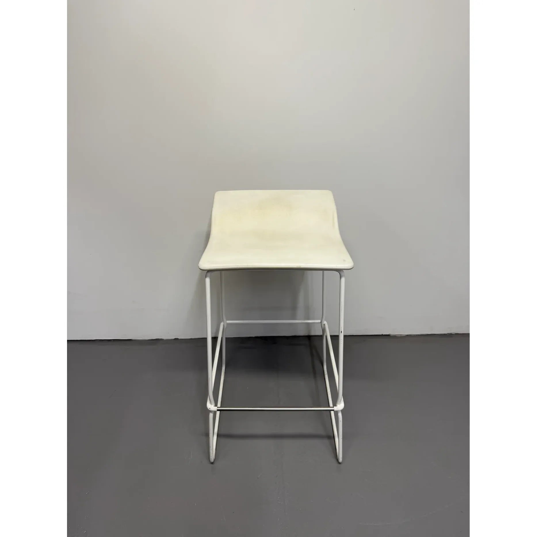 Designer: Patricia Urquiola Brand: Viccarbe (Spain) Model: Last Minute High Stool (795mm) Material: Rotationally moulded polyethylene seat, steel rod base, stainless-steel footrest Finish: White seat and frame