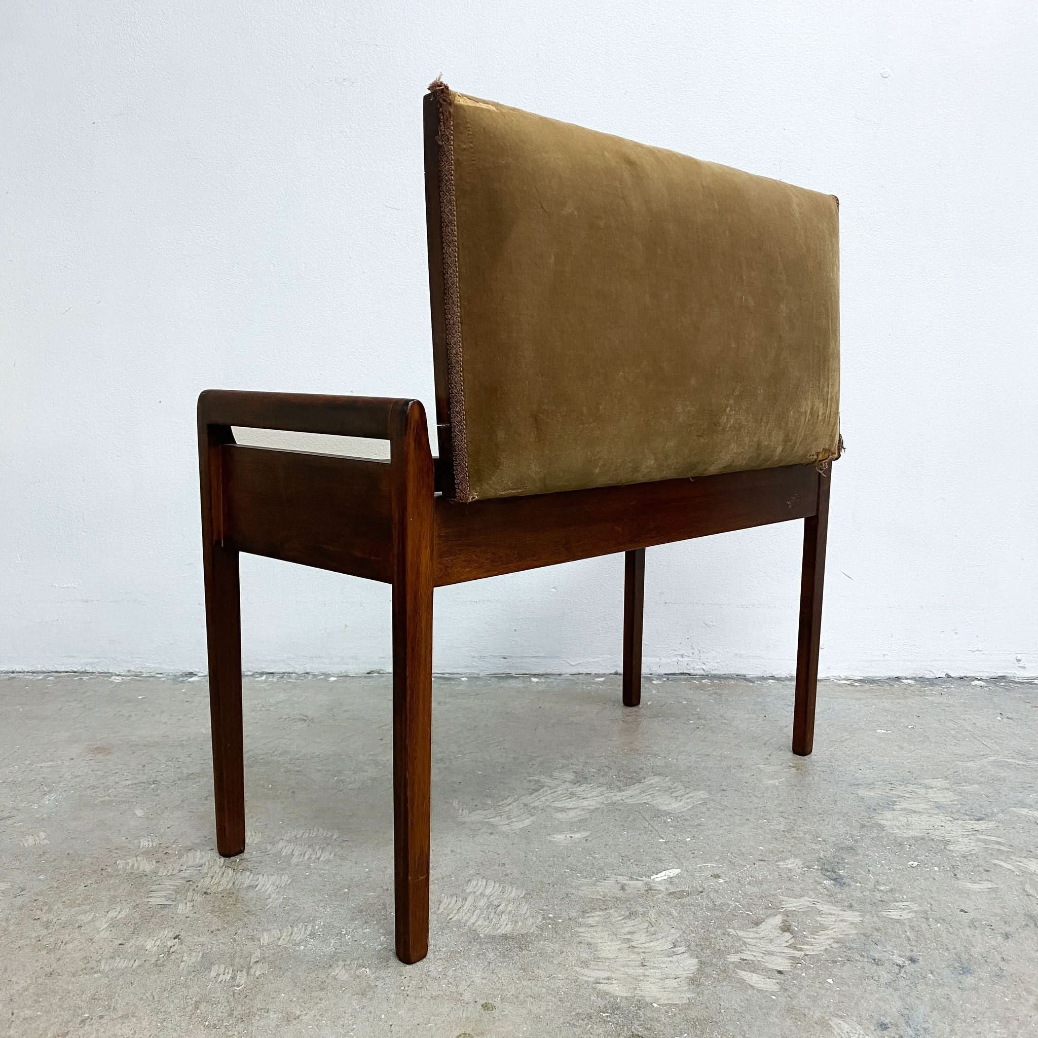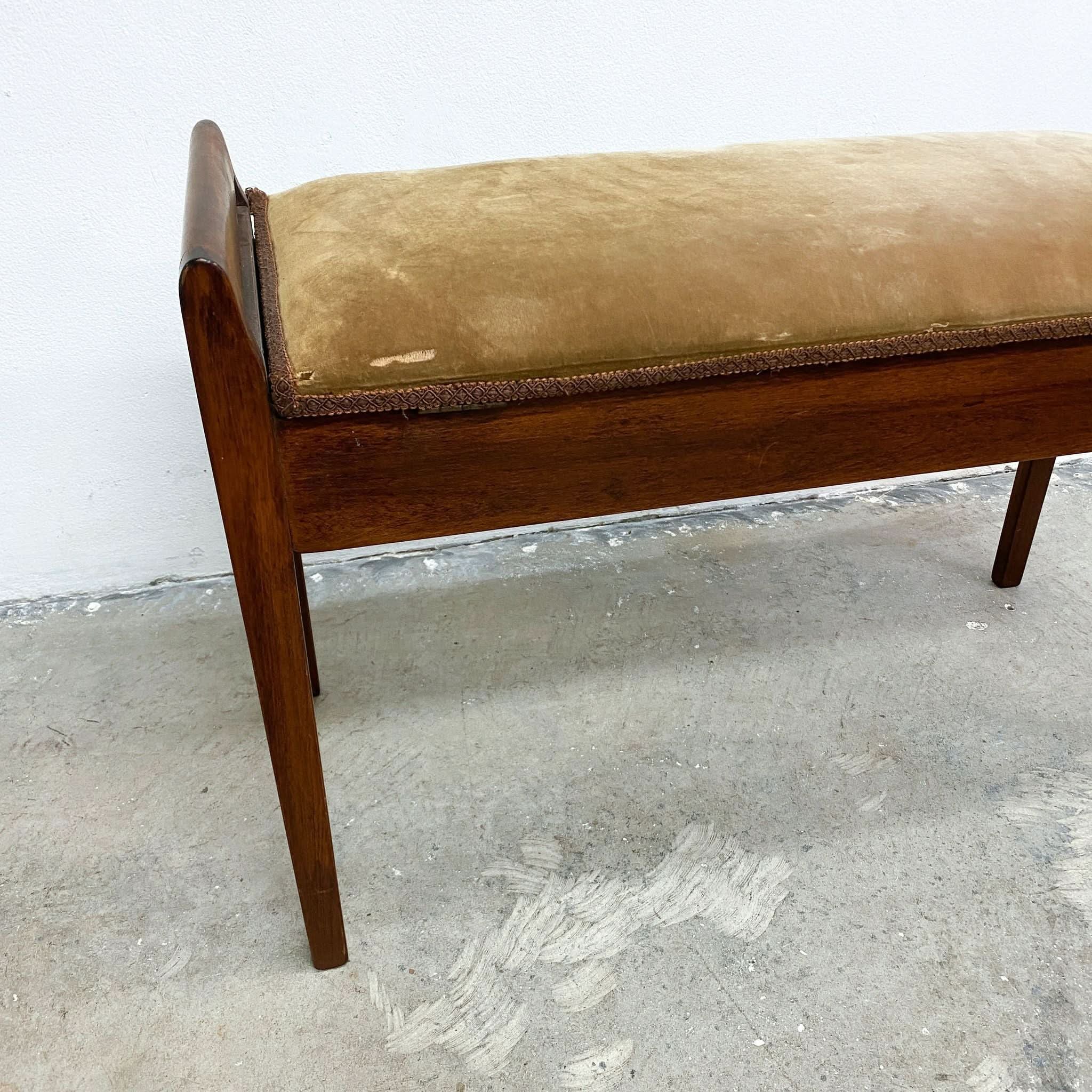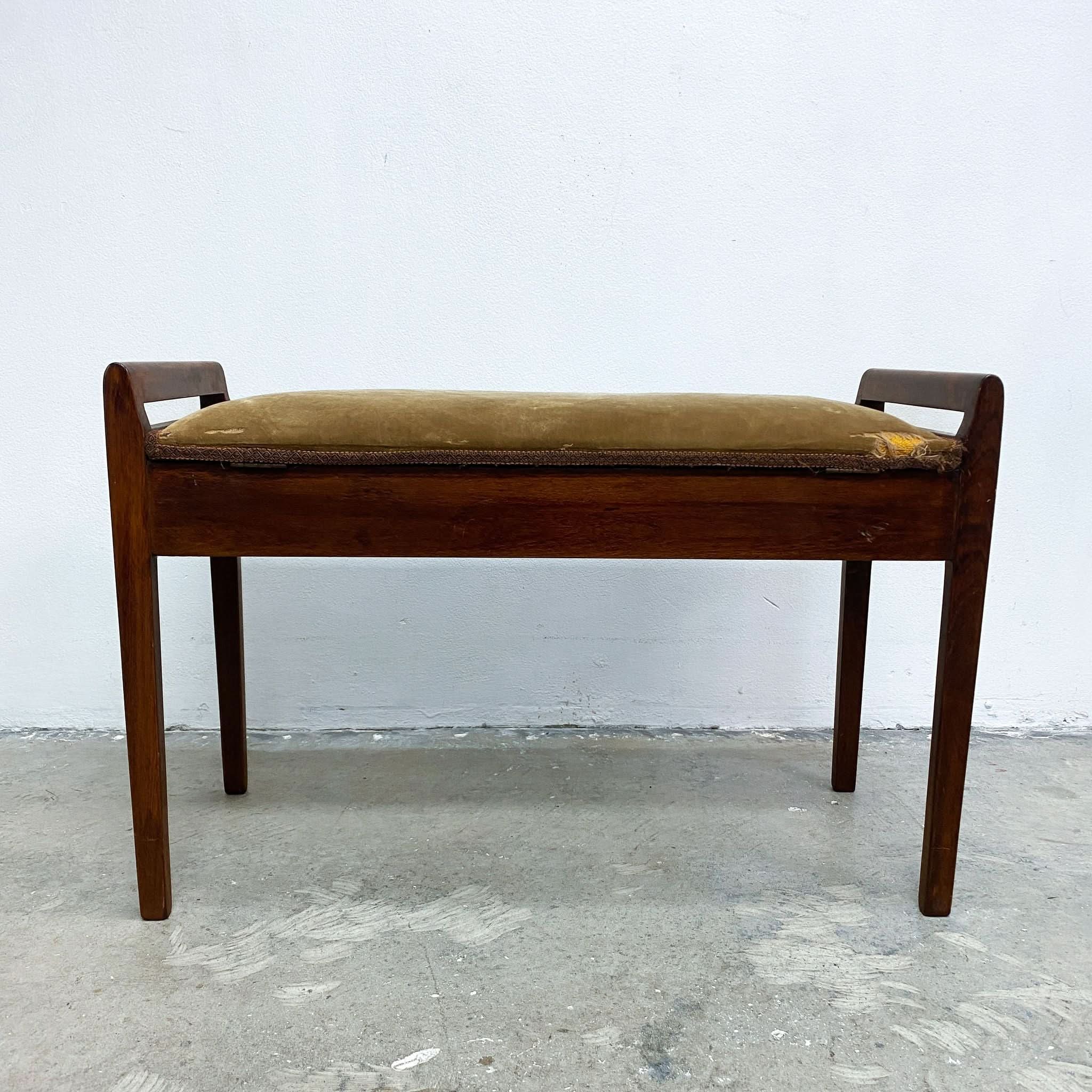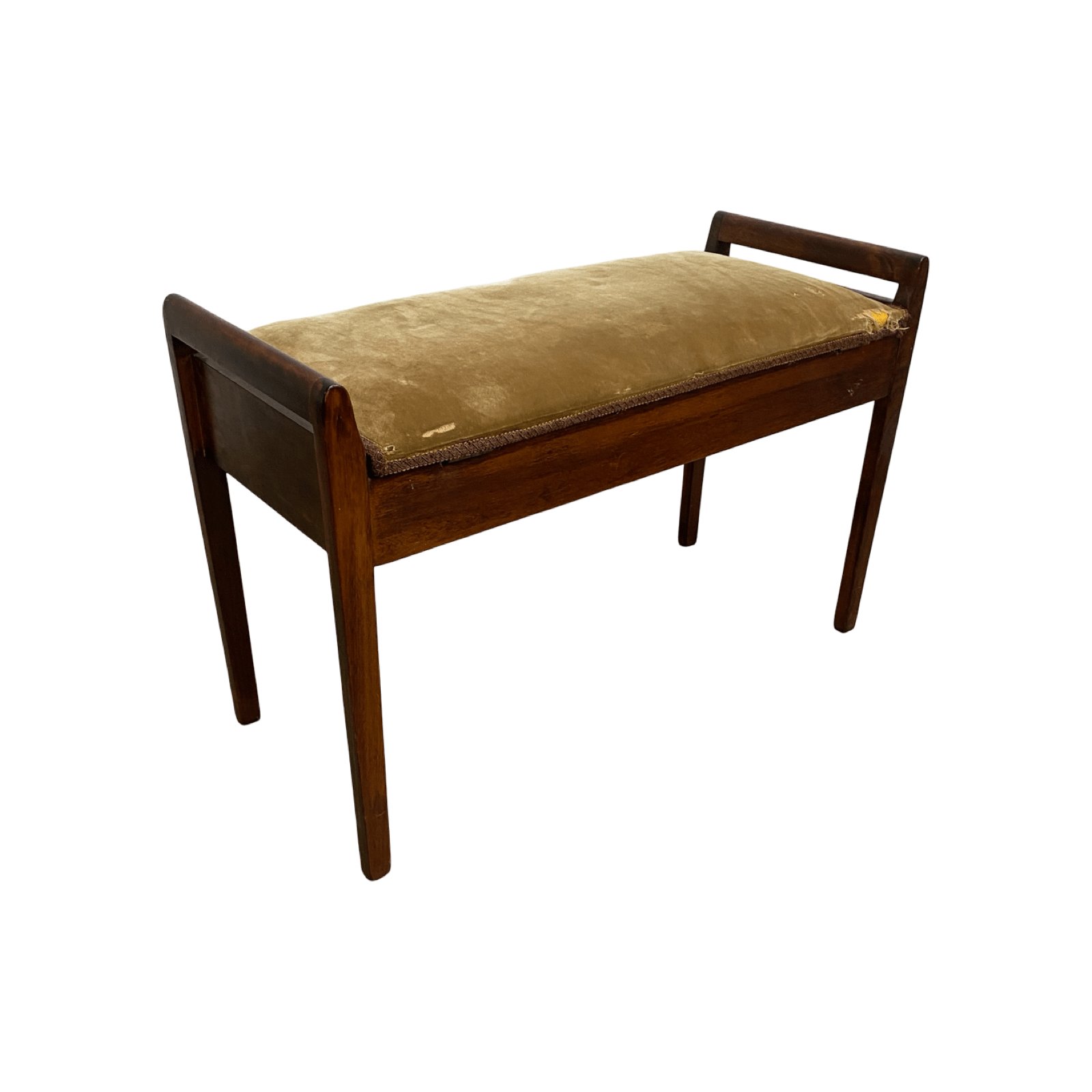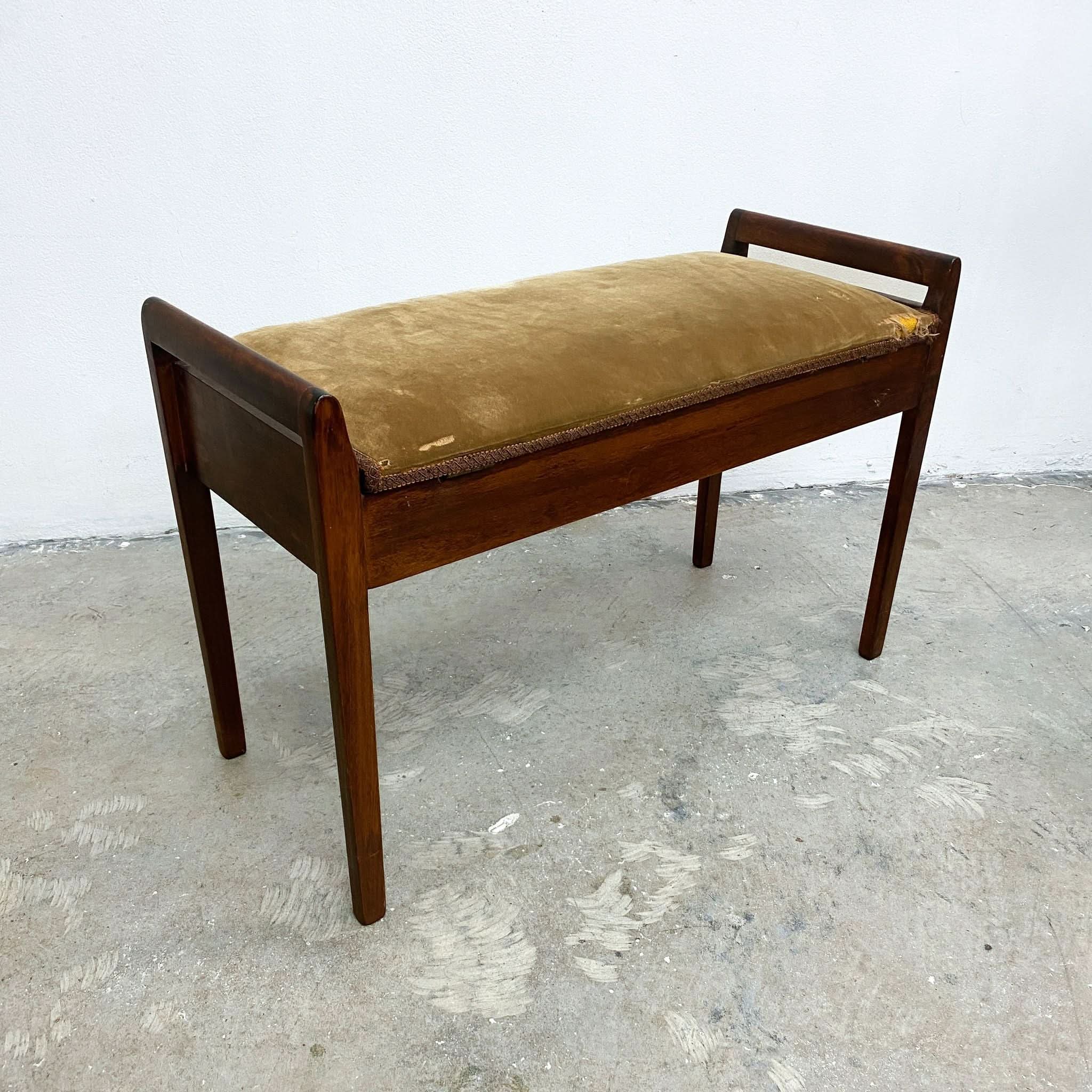 Gorgeous vintage Brazilian rosewood piano stool with velvet seat and hidden storage compartment underneath. In original vintage condition with signs of previous use consistent with age.