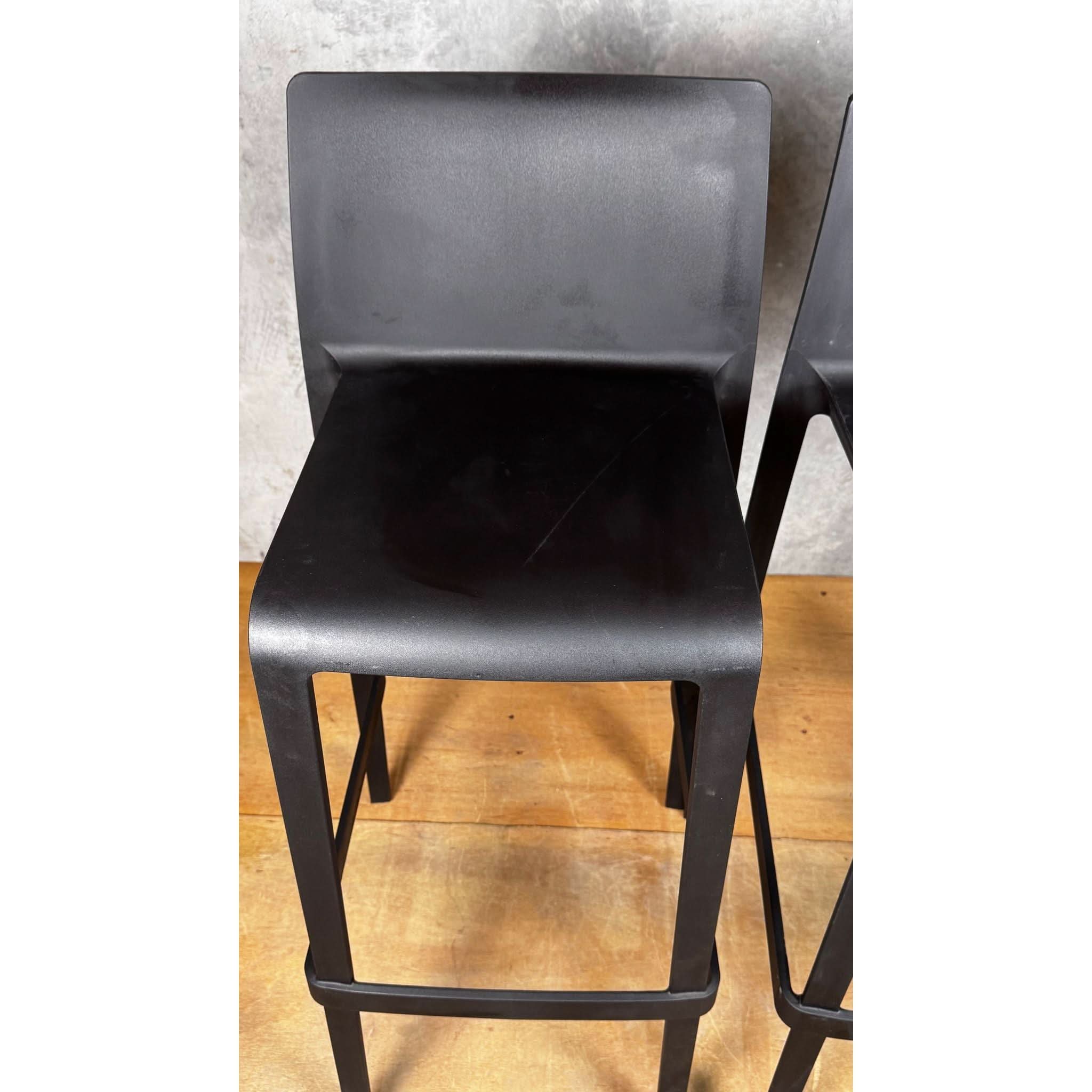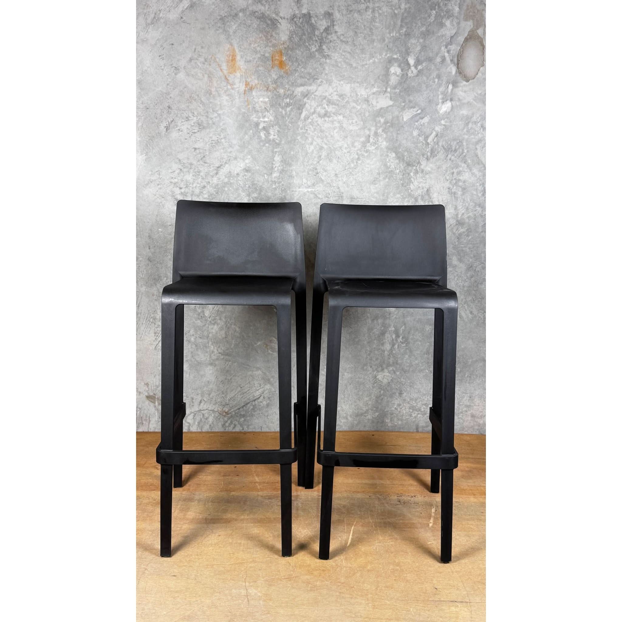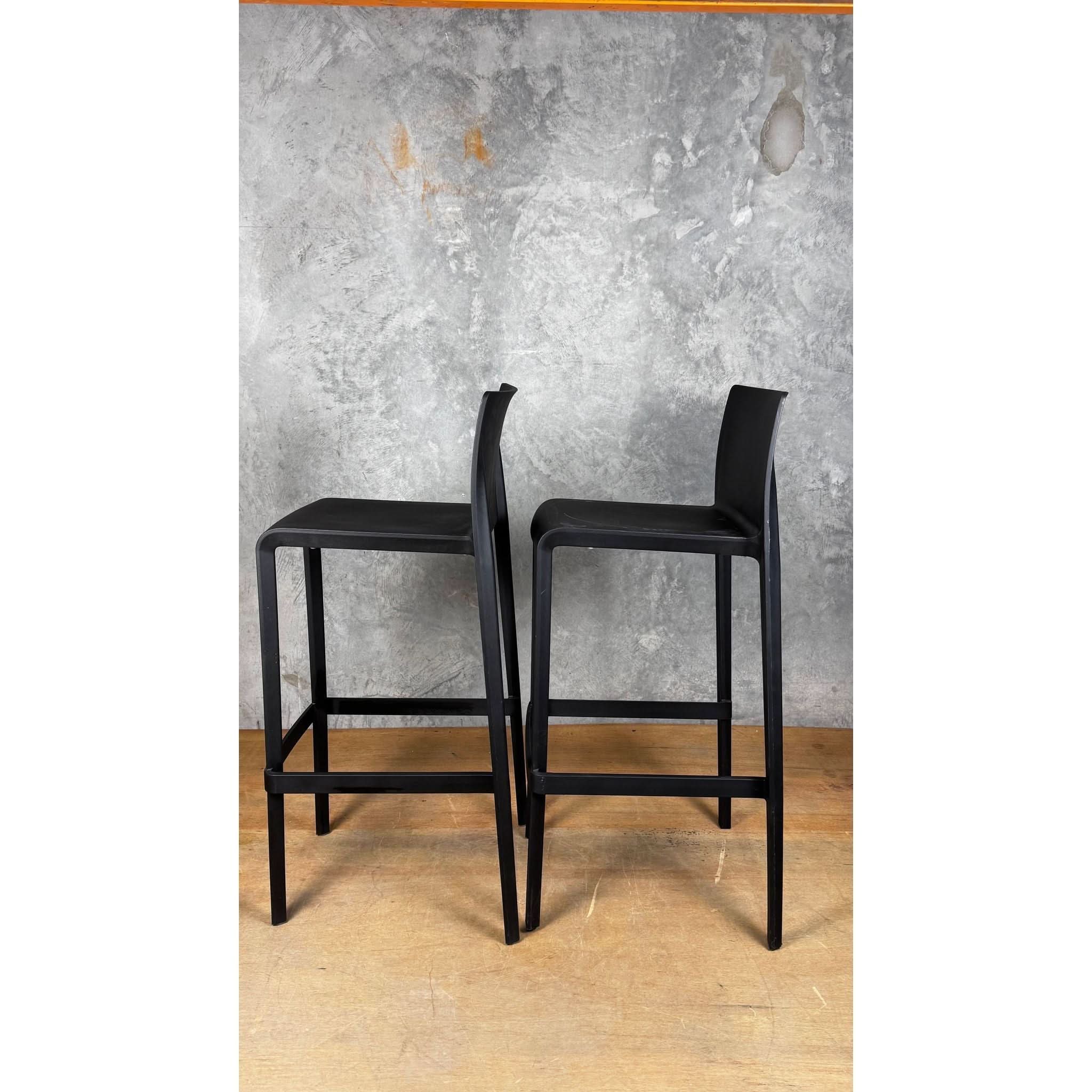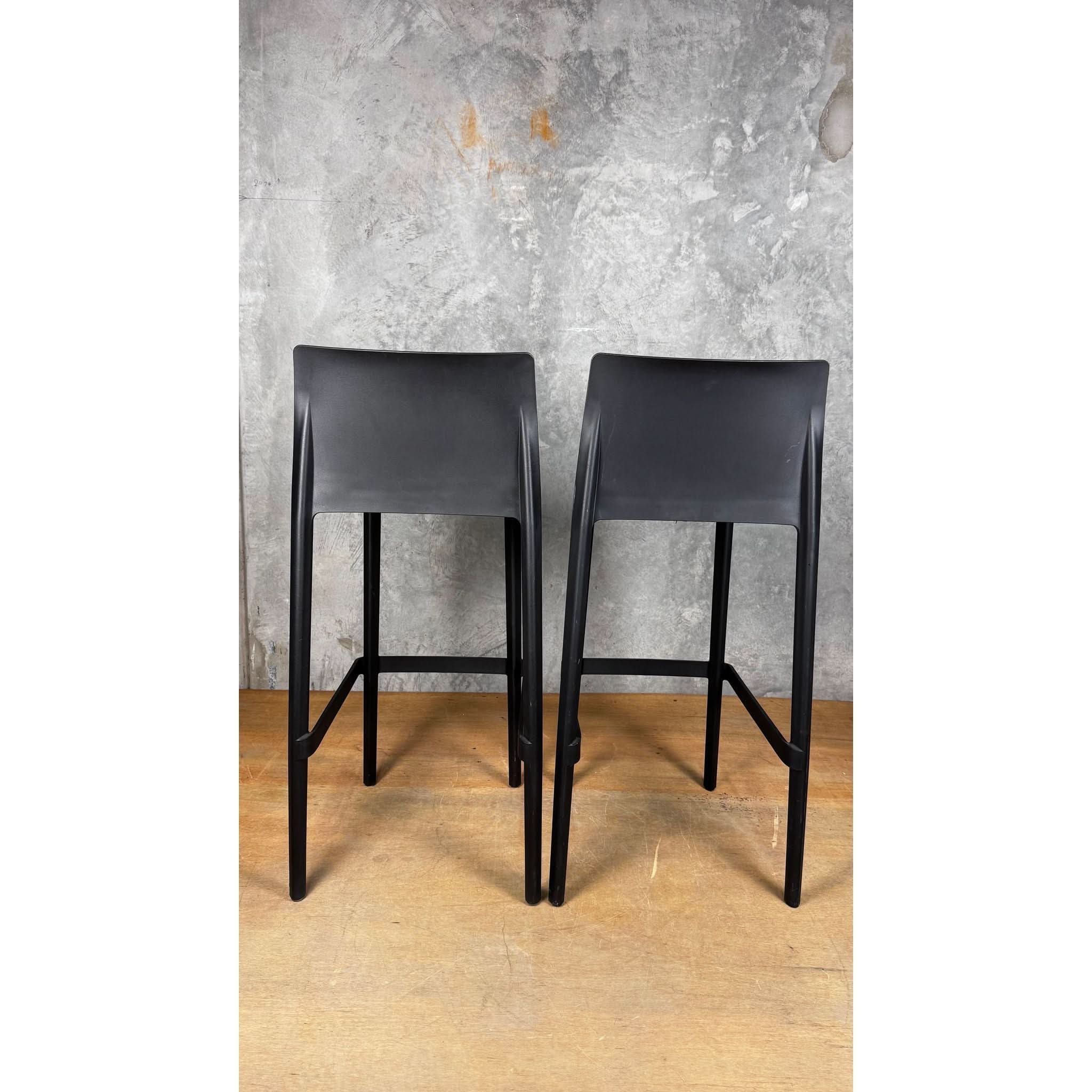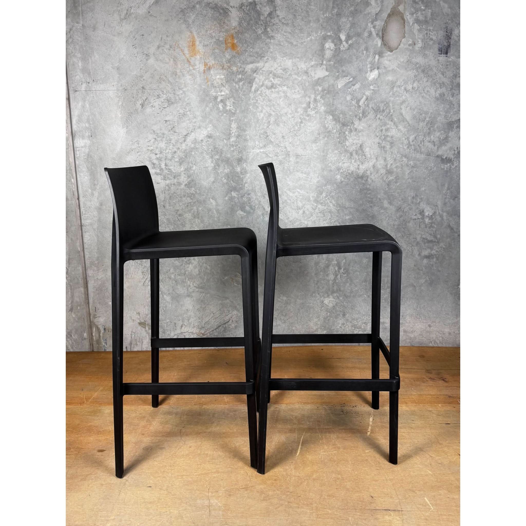 These collectible designer Pedrali polypropylene bar stools are ergonomic in shape to ensure functionality and comfort. Their elegance adds contemporary flair to any living or kitchen space. Featuring a footrest on three sides.