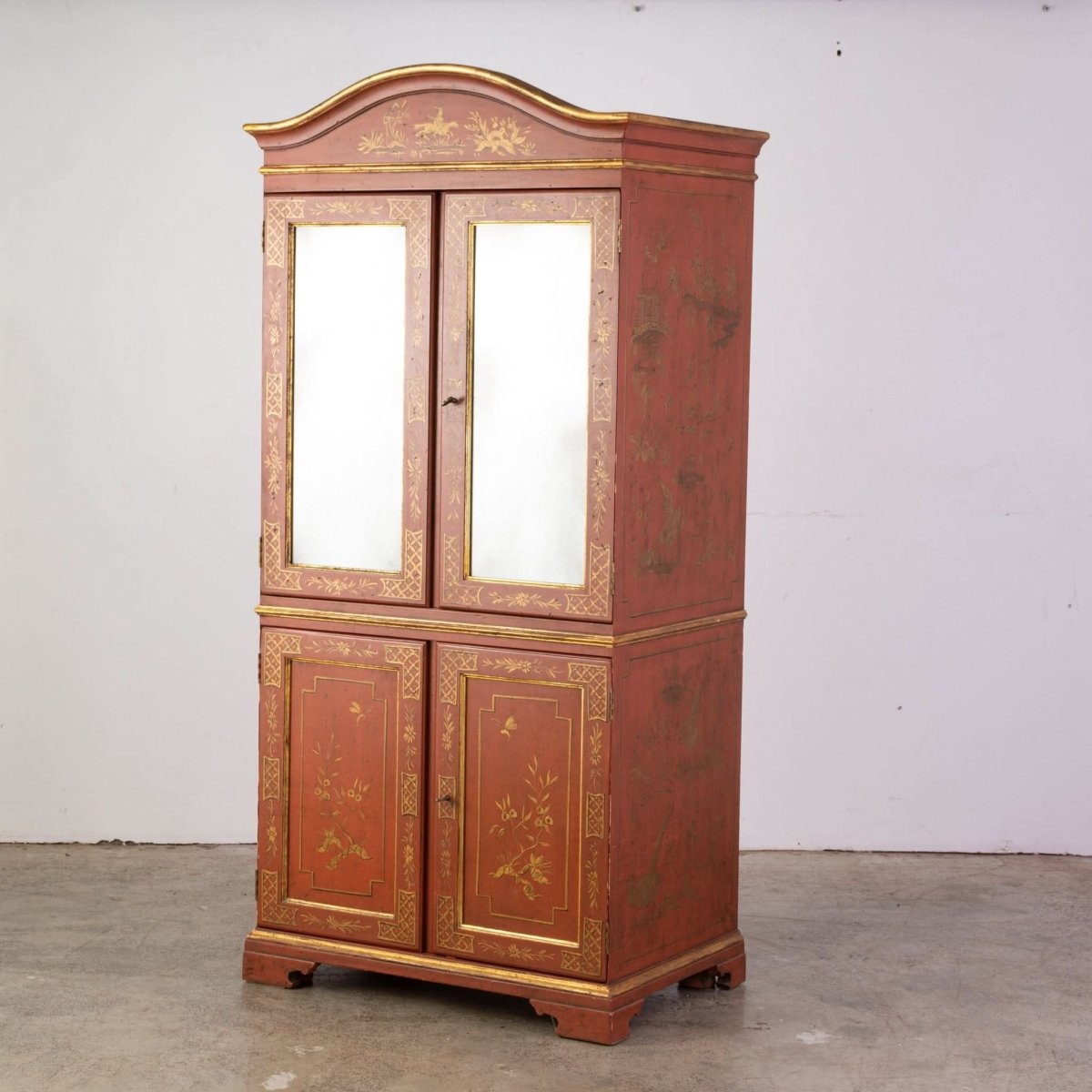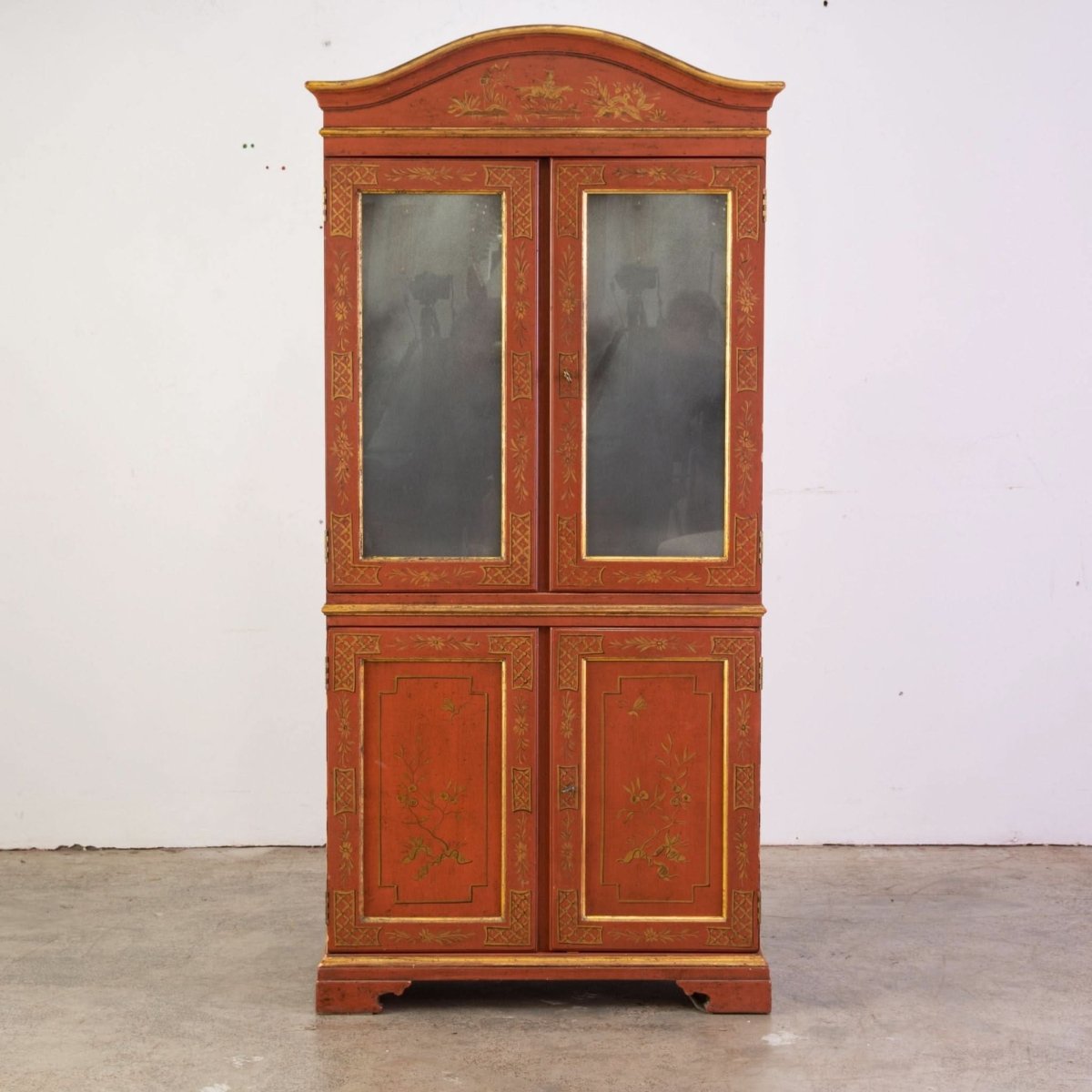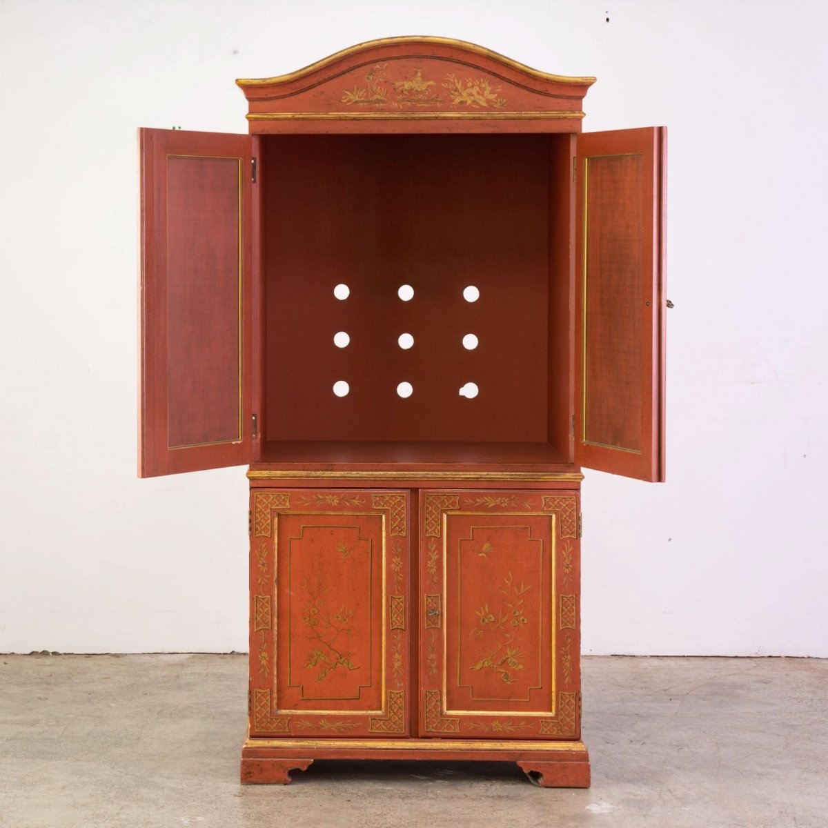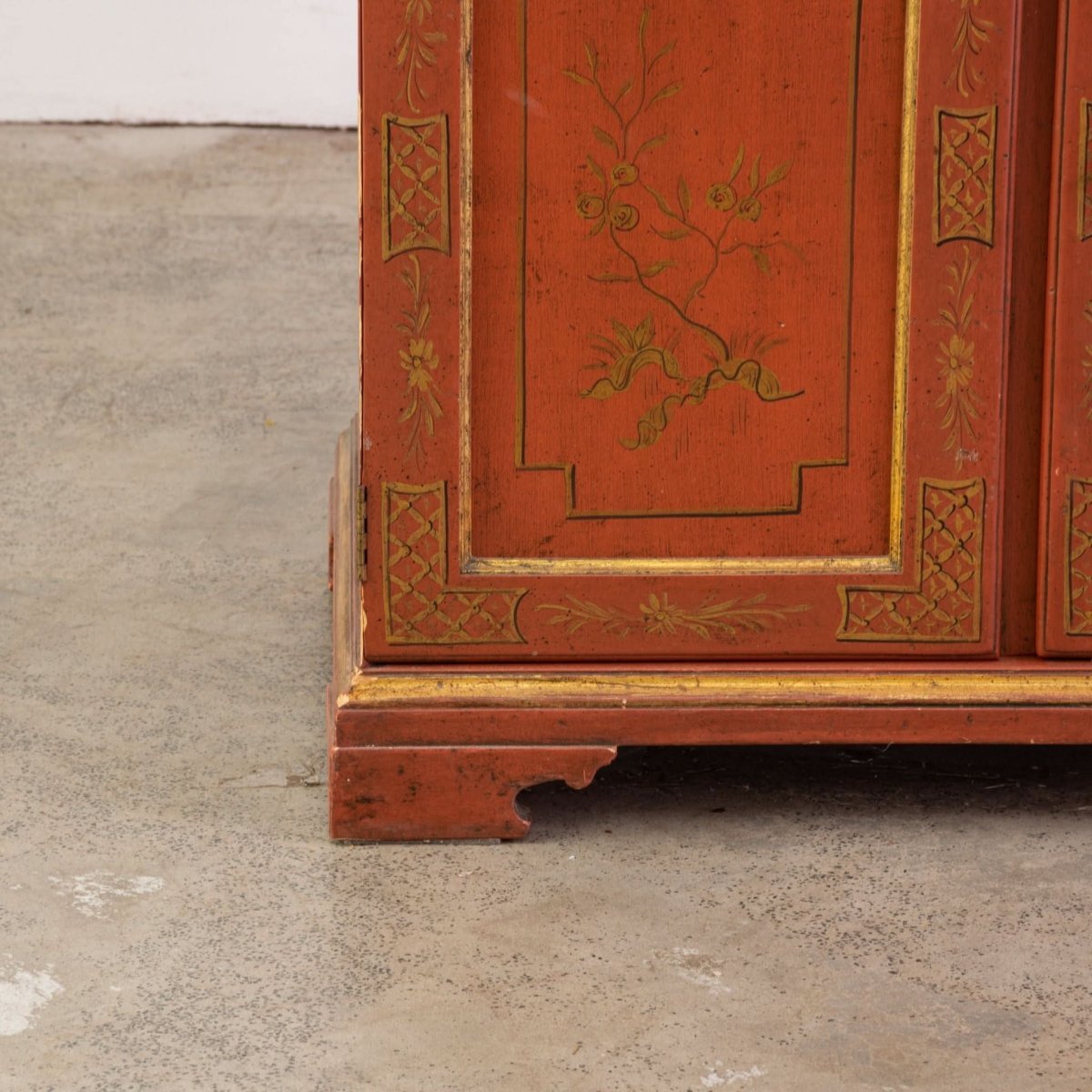 20th Century Venetian Red Chinoiserie Lacquer Cabinet