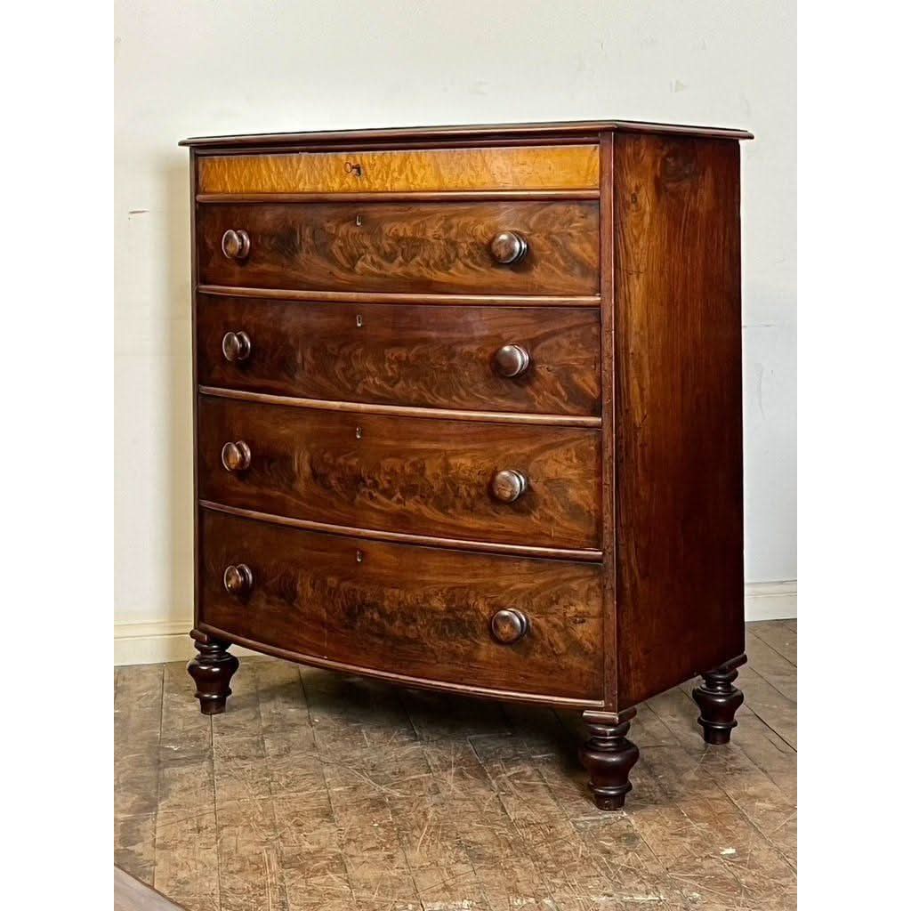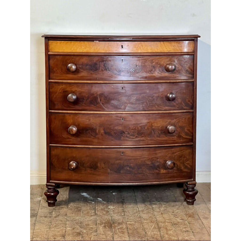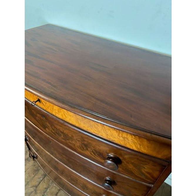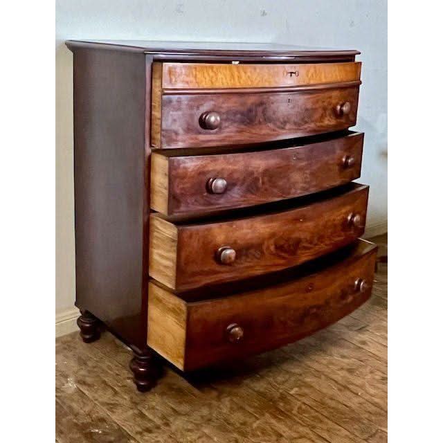 This is a very good high quality genuine antique English early / mid 1800s bow fronted Chest of Drawers in Mahogany and is of excellent proportions..