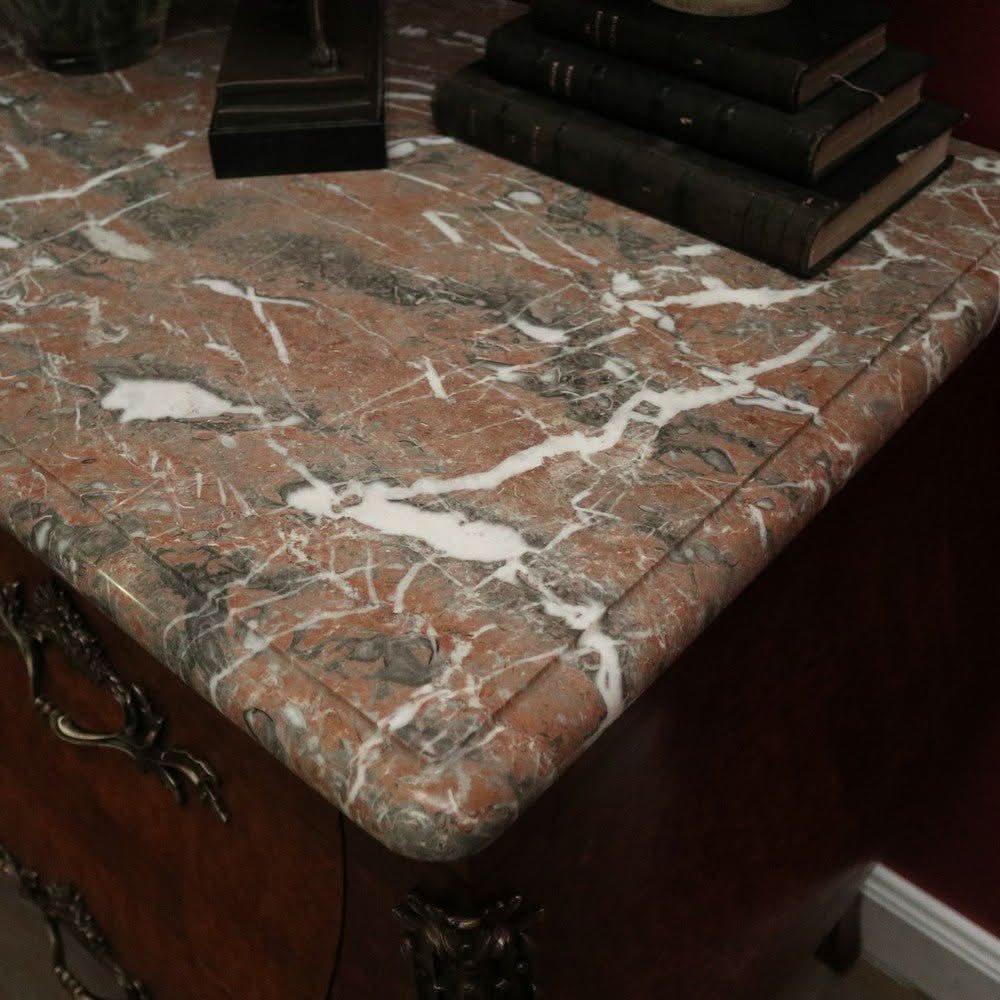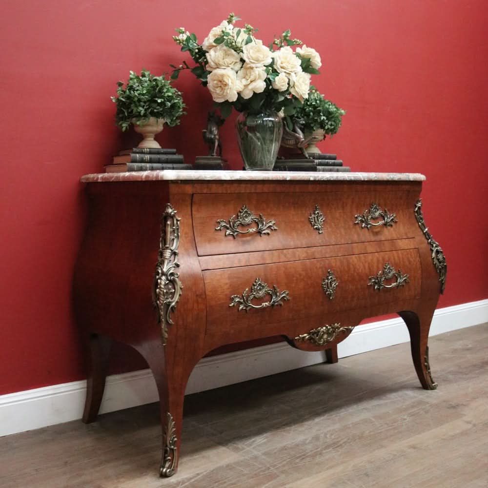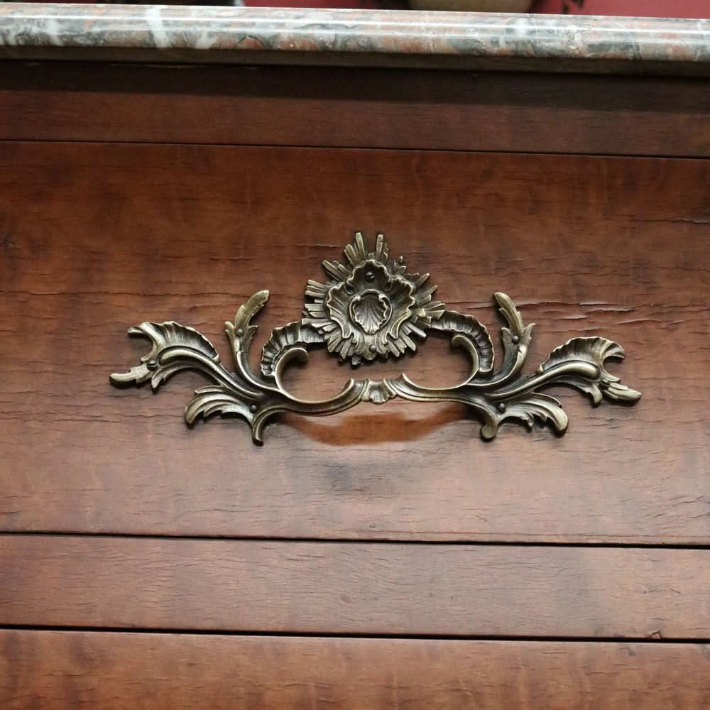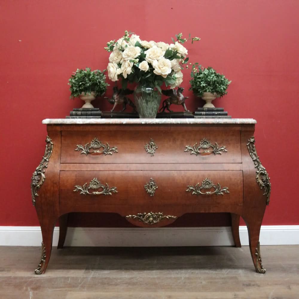 Description:The Antique French Walnut and Marble Chest of Drawers or Hallway Cabinet is a stunning example of traditional craftsmanship and refined design. Crafted from rich walnut wood, known for its durability and beautiful grain patterns, the cabinet exudes warmth and sophistication. Its luxurious marble top adds a touch of opulence, providing a smooth surface that contrasts elegantly with the walnut base.