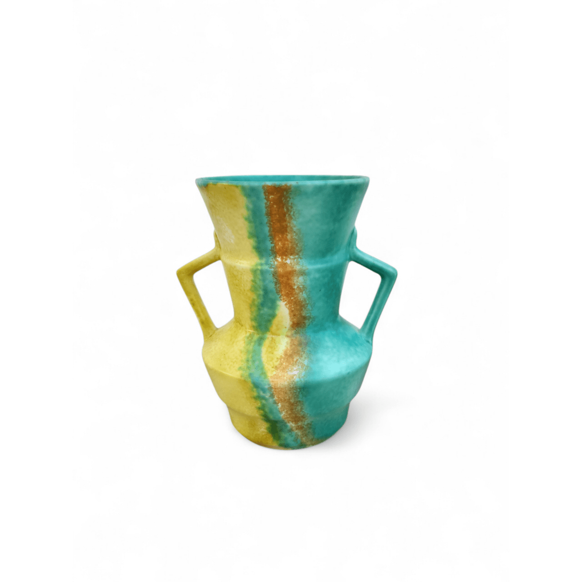 Beswick art pottery from this era reflects the broader post-war modernist movement in British ceramics, with emphasis on abstract colour, form, and surface. Handled forms such as this are particularly desirable due to their sculptural presence and lower survival rates.lectors of British studio ceramics or anyone drawn to sculptural form and colour.
