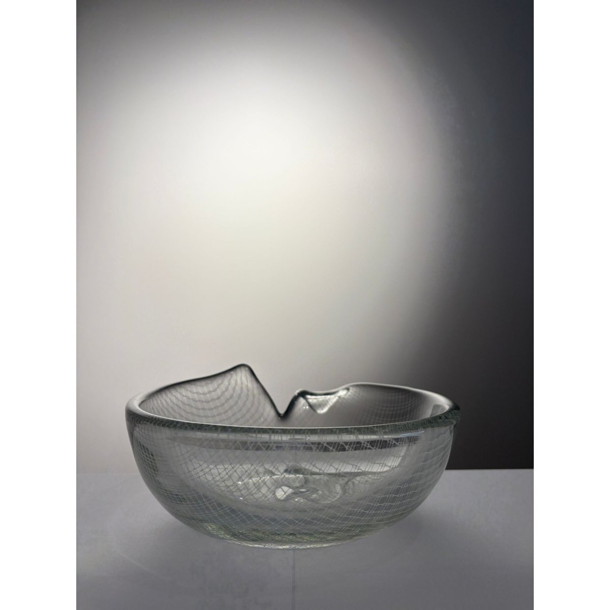 Founded in 1712, Harrachov is celebrated for its experimental modernist glass of the late 20th century. The Harrtil net technique, developed during the 1960s–1970s, involves encasing a delicate glass lattice within layers of clear crystal, a technically demanding process that became a defining visual language of the glassworks’ art glass production.