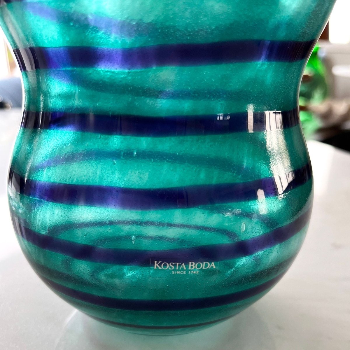 Marking: "KOSTA BODA, Gunnel Sahlin, 89134" (engraved into the glass on the base of the vase). Original “Kosta Boda” sticker still attached to the side.