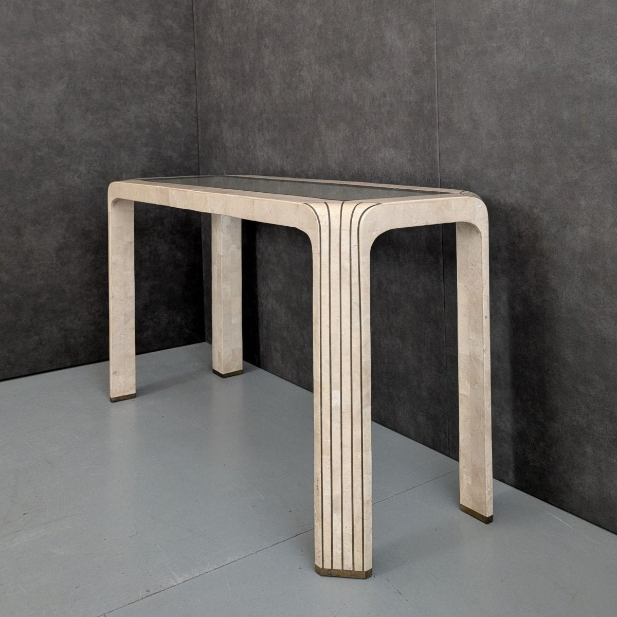 Commissioned in the 1980s for a Sydney couple’s luxury holiday residence at Sanctuary Cove on the Gold Coast, the suite reflects a period when furniture was conceived as structure rather than surface. Hand laid stone panels are resolved with fine bronze inlay, drawing controlled linear lines through corners and edges with restraint and precision. Each table carries the same disciplined language and material authority, allowing the set to read as a unified interior composition or as singular pieces with equal gravity and presence.
