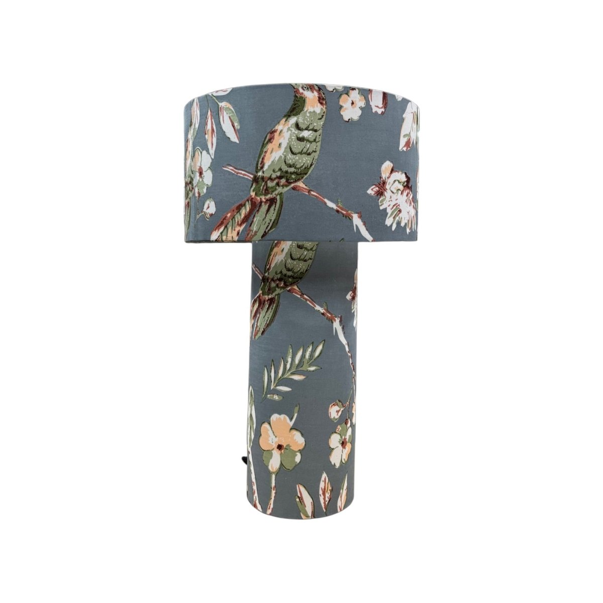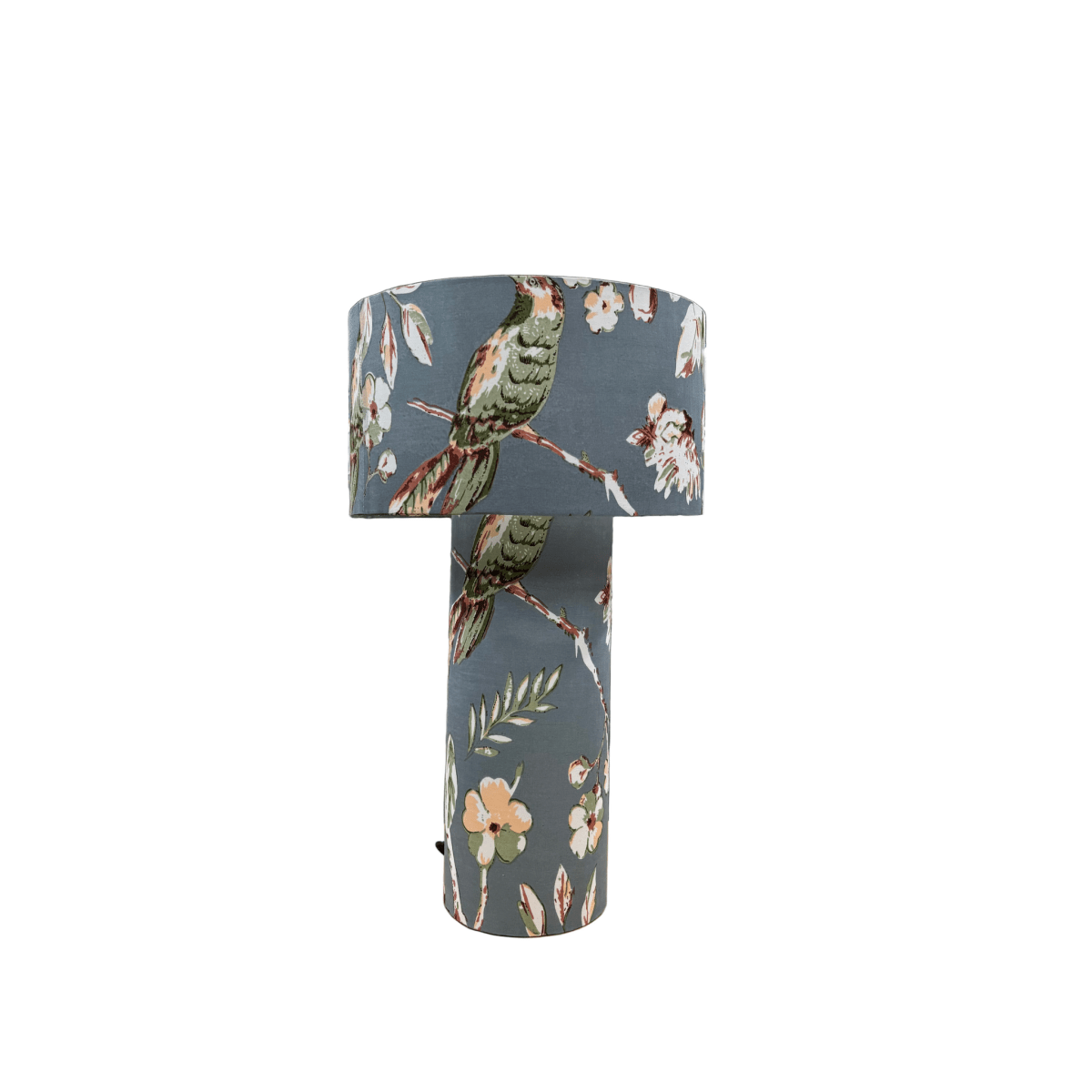 This charming table lamp features a printed cotton shade adorned with a grey bird pattern. Each lamp is uniquely individual, with subtle variations in the print that add character and whimsy to your space. The design brings a touch of nature-inspired elegance to any room, making it an ideal accent piece for bedside tables, desks, or living areas. Perfect for those who appreciate handcrafted details and one-of-a-kind home décor.