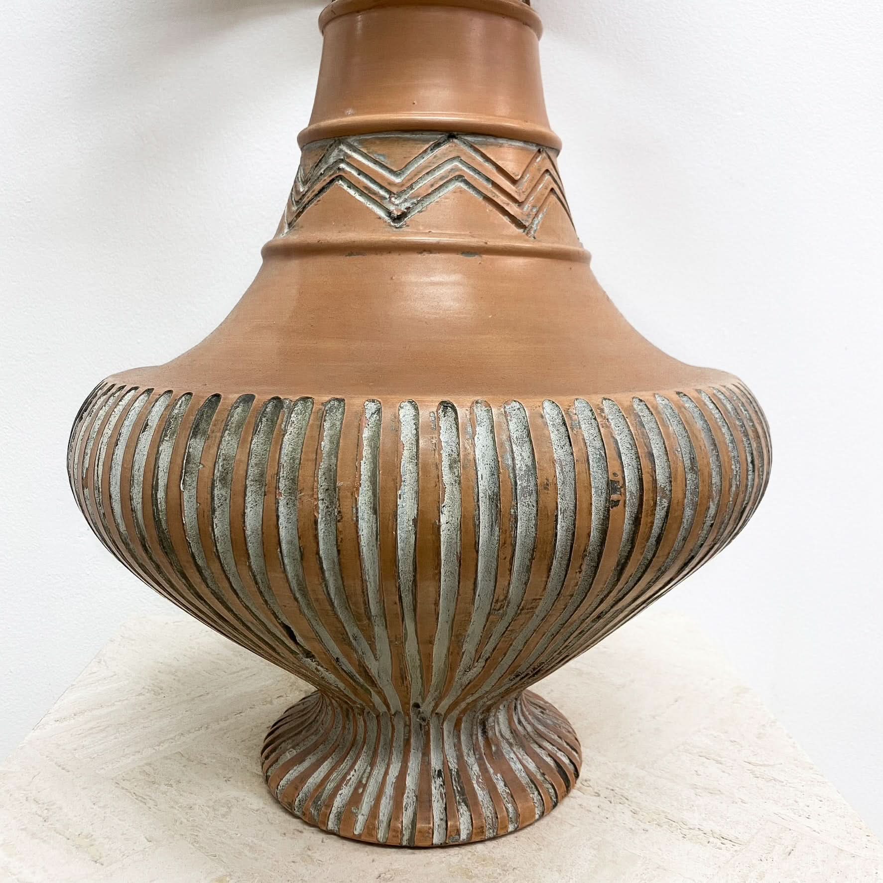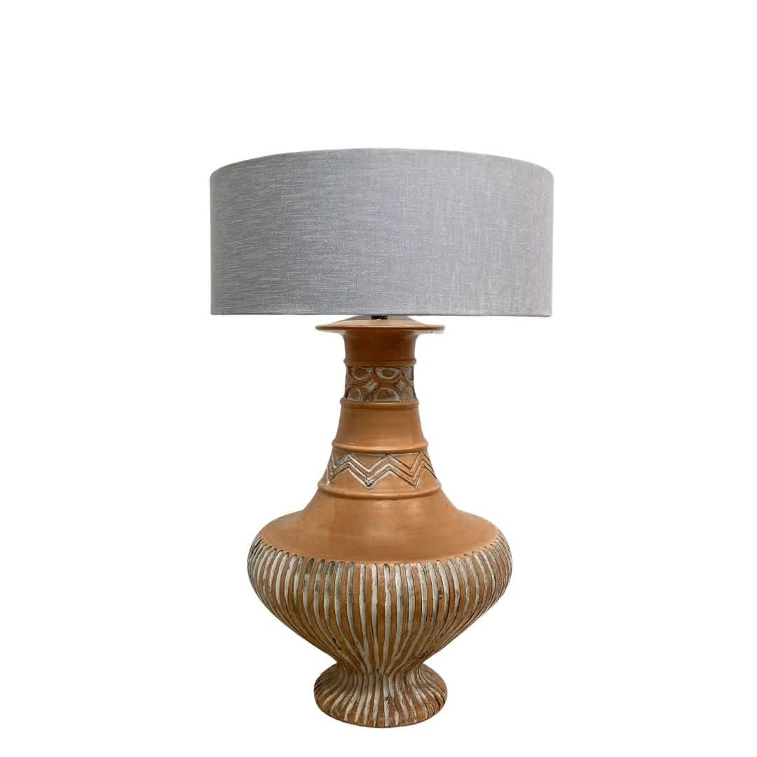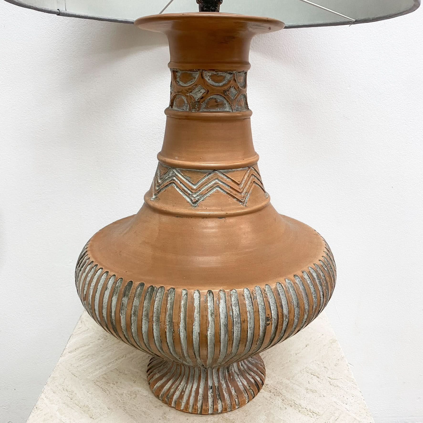 Amazing large mid century studio pottery lamp base, with contrasting geometric etched patterning detail. C 1960s. In great vintage condition, with minor signs of use commensurate with age.