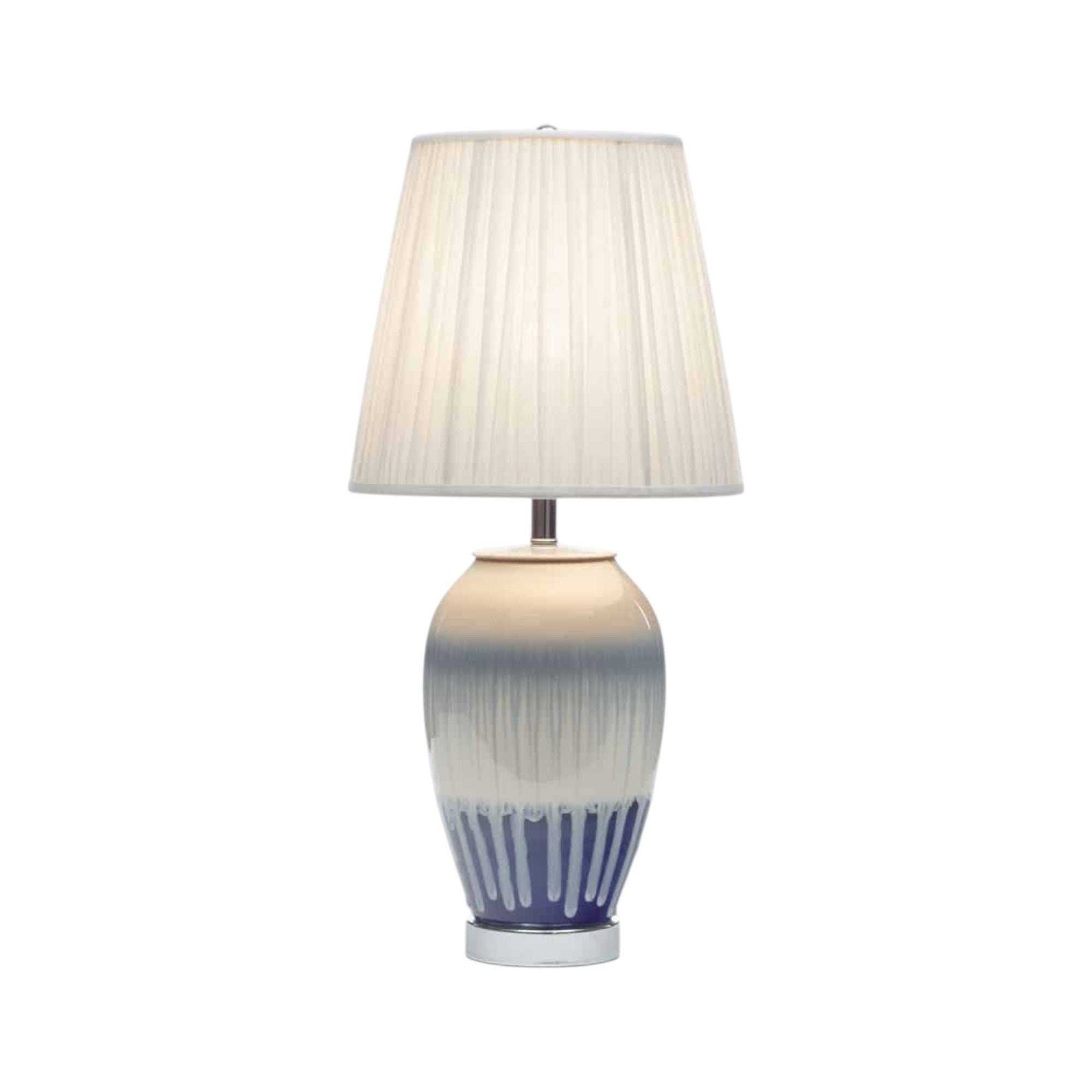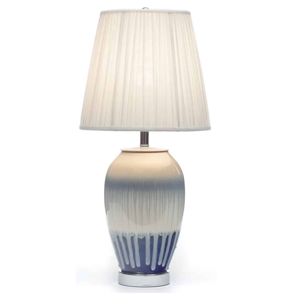 Stunning artisan handwork is shown in the body of this one only porcelain table lamp. The changes in colour are connected by the flow of the glaze from top to bottom. The shade is handmade.