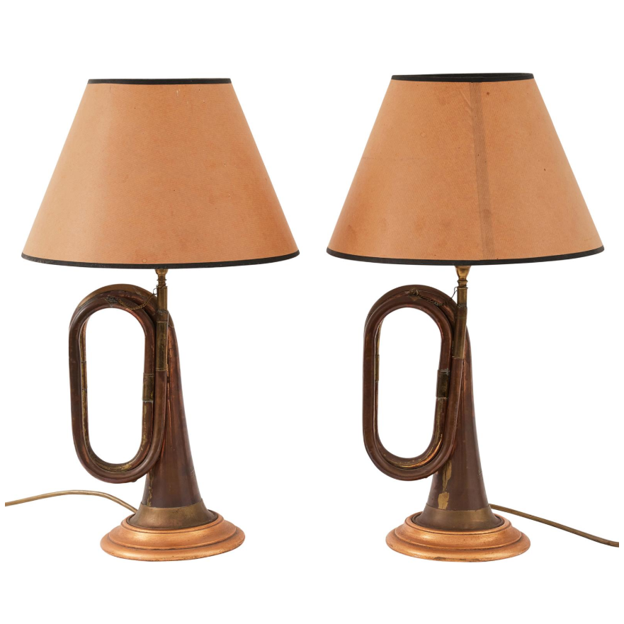 Each with stamp, 'BESSON &CO LONDON WC2' on giltwood base, Kraft paper shade. Excellent working condition, please note price is for the pair!