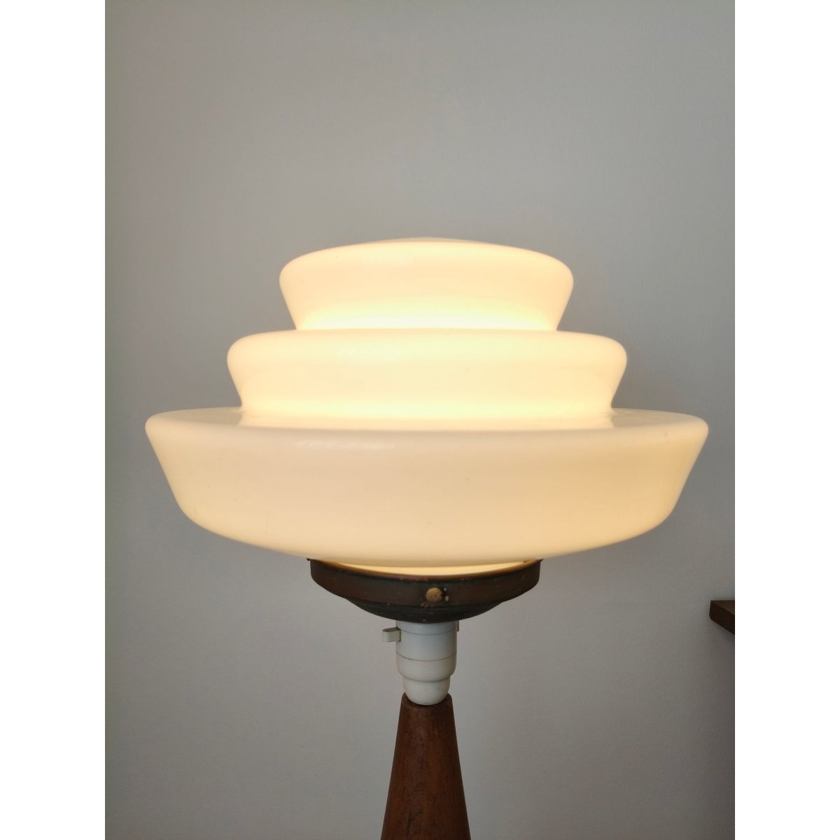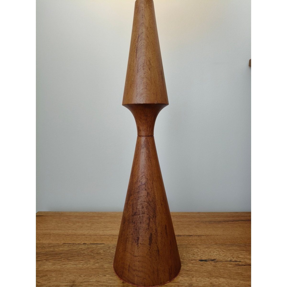Solid teak. Heavy. Unique one off piece. Comes with glass shade as shown.