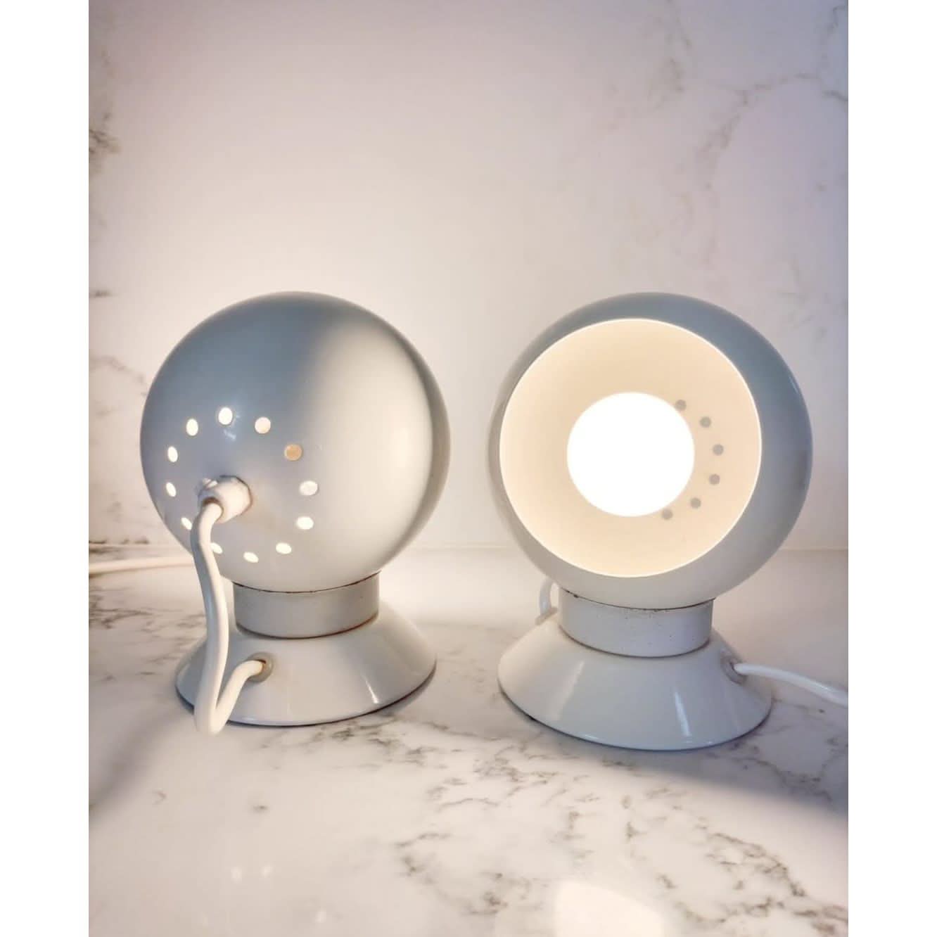 Rare Magnetic Danish White Enamel Ball Wall Lamps from Abo Randers, c1960s, Set of 2