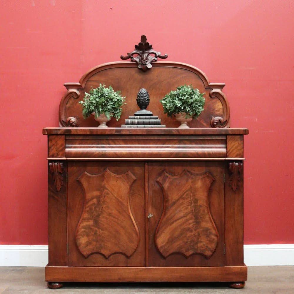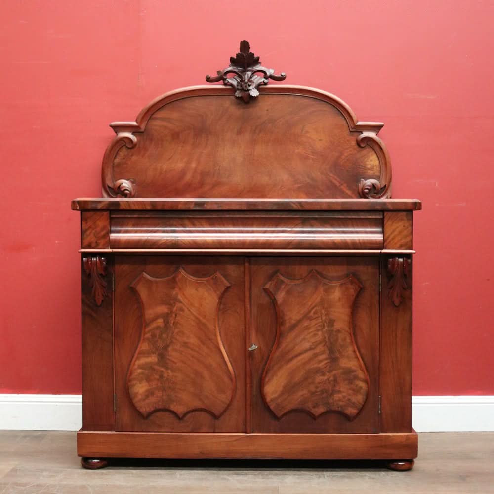 Description: This antique Australian cedar shield door chiffonier is a beautifully crafted piece with elegant details and practical storage. The felt-lined drawer sits above a spacious cupboard, offering a perfect blend of function and style. The backboard features a finely carved floral motif, adding charm and character. With its warm cedar tones and refined craftsmanship, this chiffonier would make an excellent addition to any home.