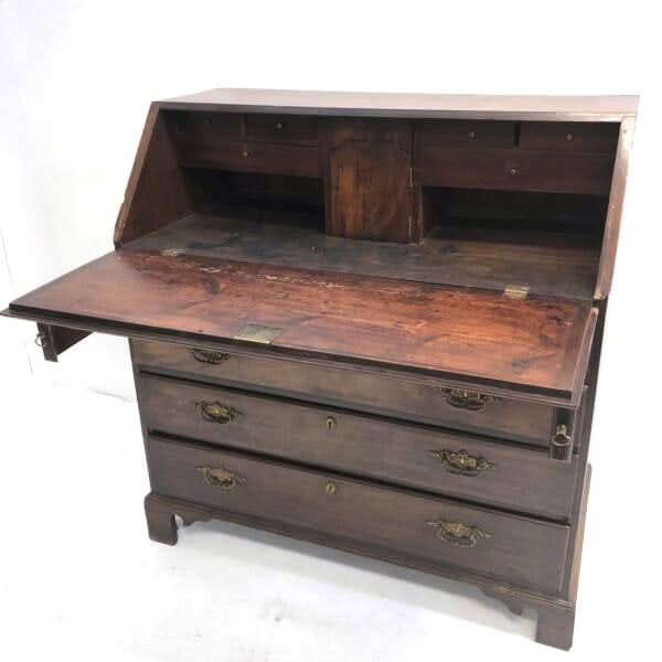 Victorian oak writing bureau, with 4 drawers and drop down desk. Crafted from oak with lovely grain finish. In good condition commensurate with age.