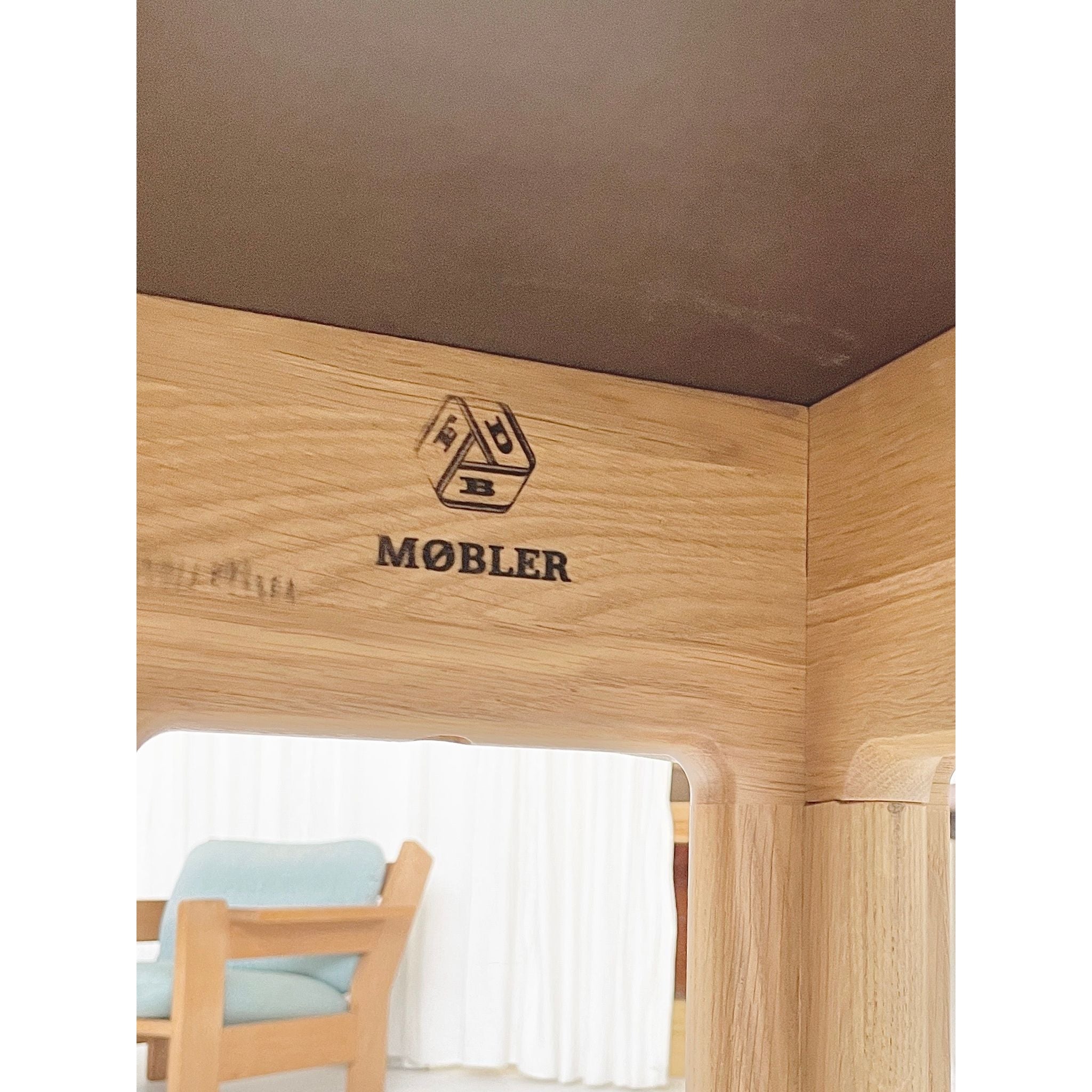 In solid and veneered oak. Recent producion by FDB Møbler. With minor wear and tear. Currently retails new for $7450.