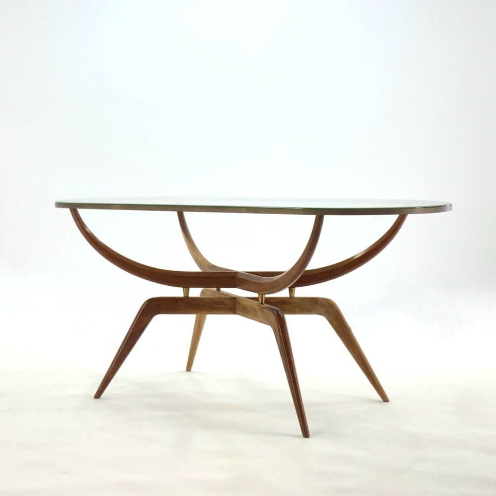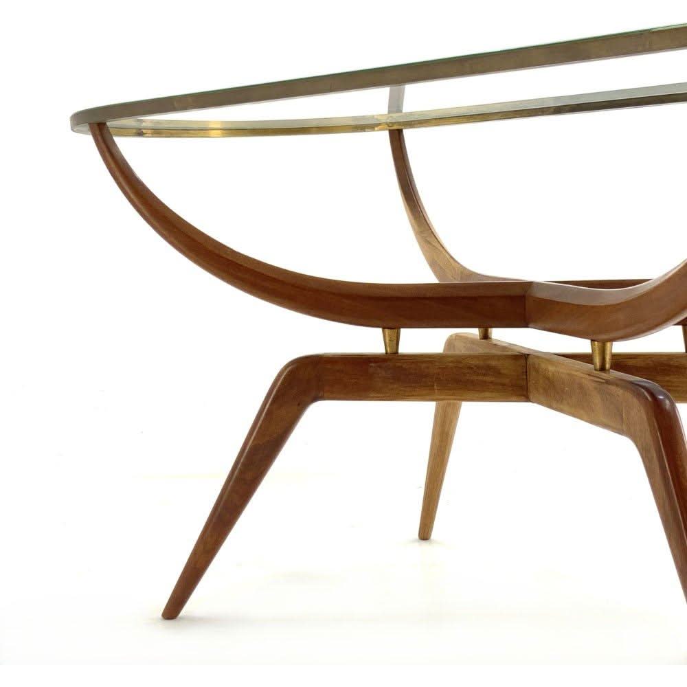Caviuna Wood, Brass and Glass Coffee Table by Giuseppe Scapinelli, Eternity Collections