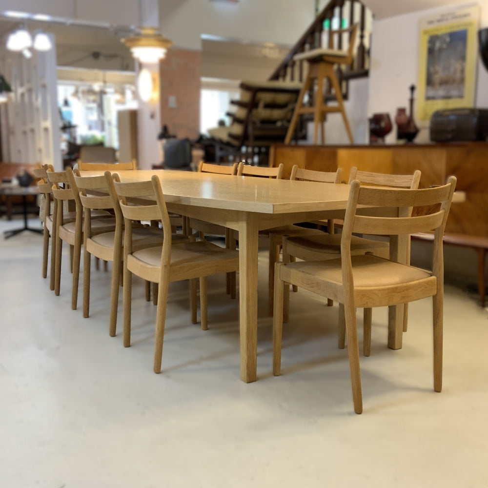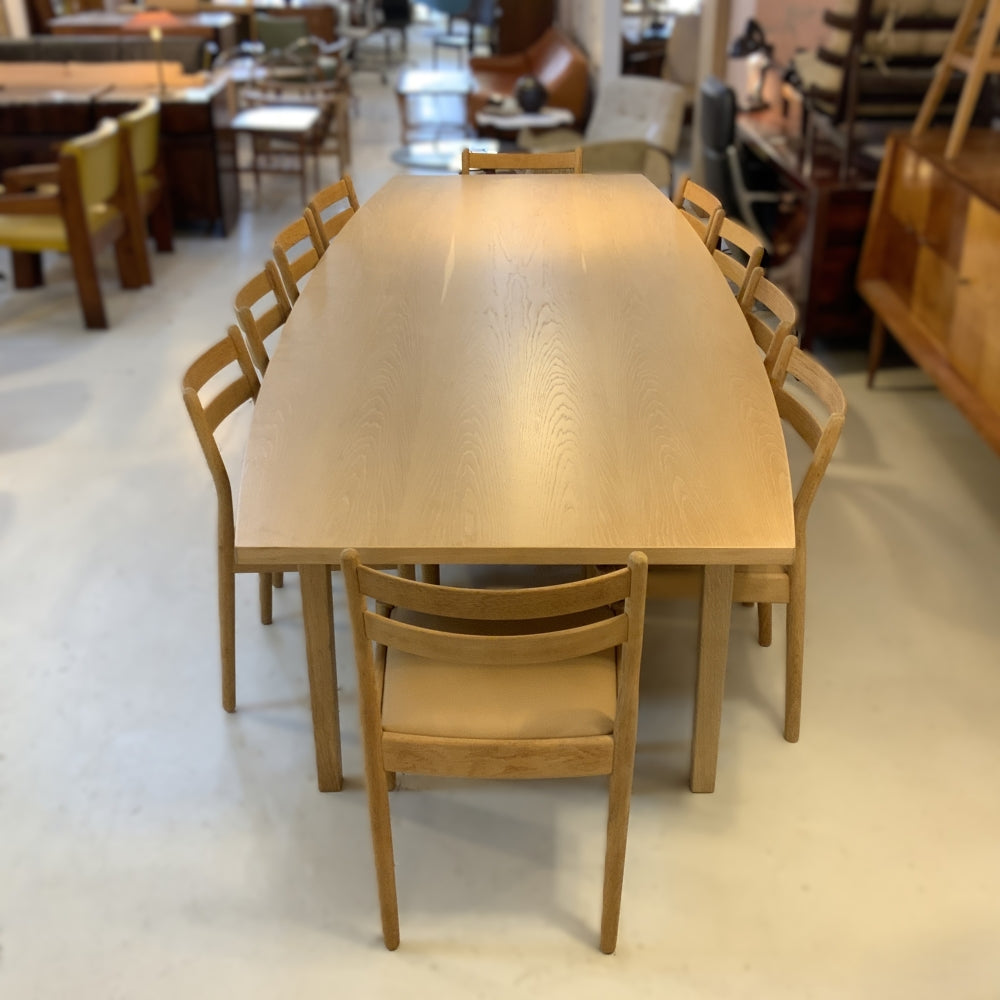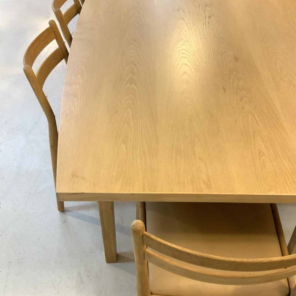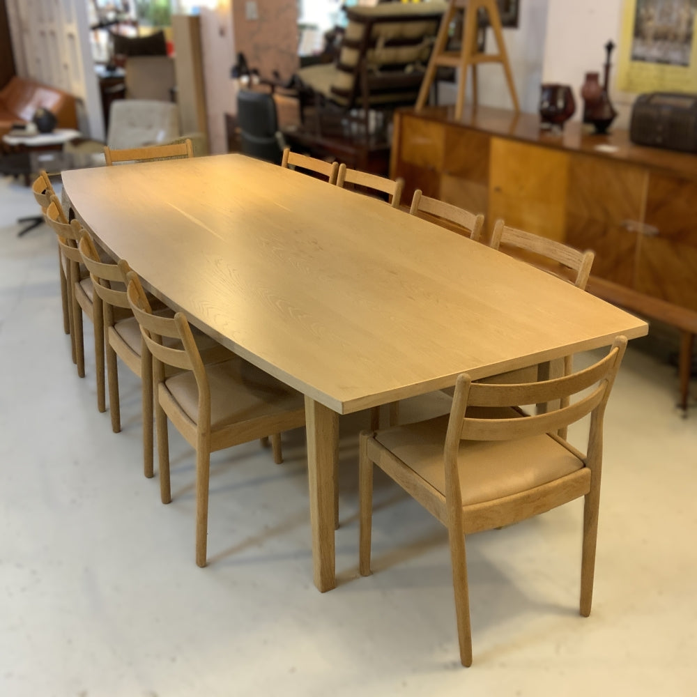 Danish Oak Dining Table. Boat shaped with a water based lacquer finish. Poul Volther Oak Dining Chairs available separately.