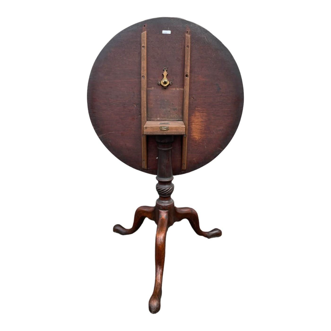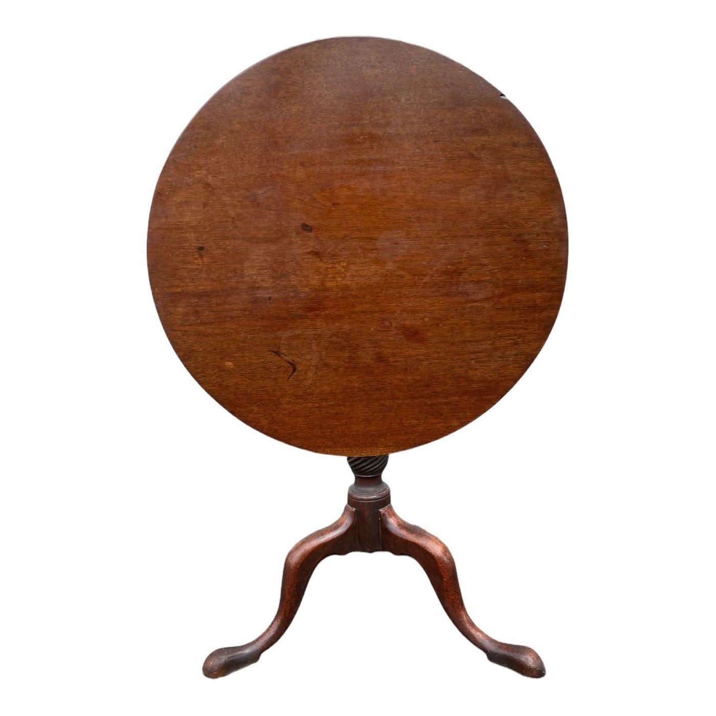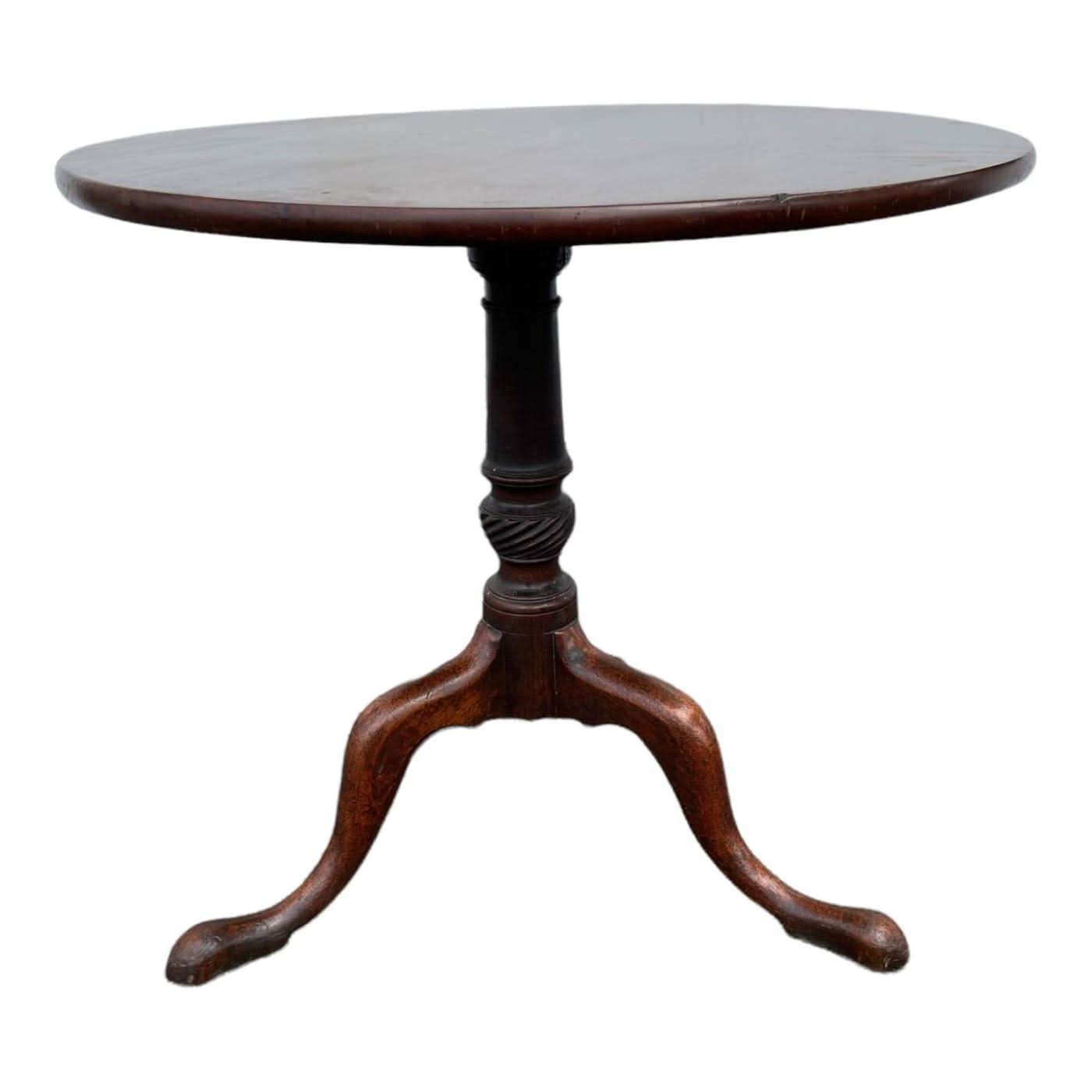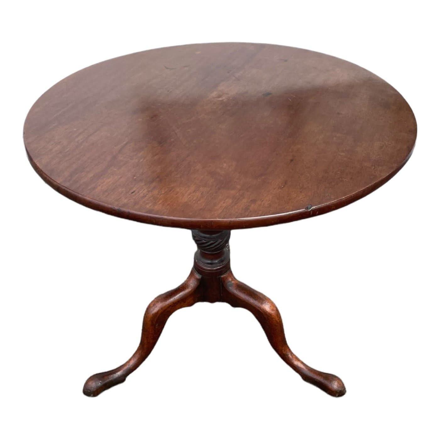Georgian mahogany tilt-top table, the plain top on column turned base with tripod pad-foot legs.