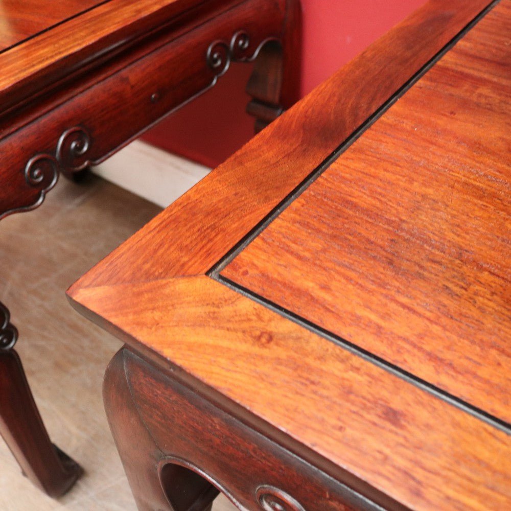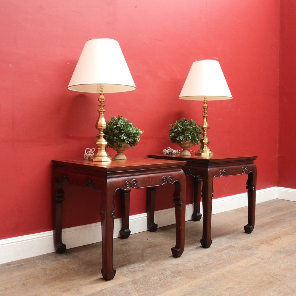 Description:Pair of vintage Chinese-style table lamps crafted from solid hardwood with a simple and elegant apron design. Sturdy and well-made, with warm timber tones and traditional form. Beautiful as a matching pair of lamps, and when placed together, they would make an excellent-sized coffee table.